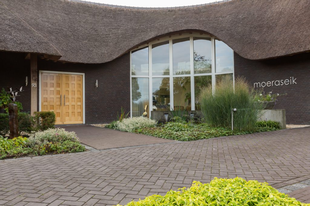 Verzorgde voortuin met groenborders, vijver, royale oprit voor meerdere auto’s en overdekte entree. U kunt vanuit de oprit het woonhuis, de carport, de kantoorruimte en de ondergrondse (afsluitbare) garage en souterrain bereiken. De hellingbaan is verwarmd, dit zorgt voor veel comfort indien het bijvoorbeeld gesneeuwd / gevroren heeft.