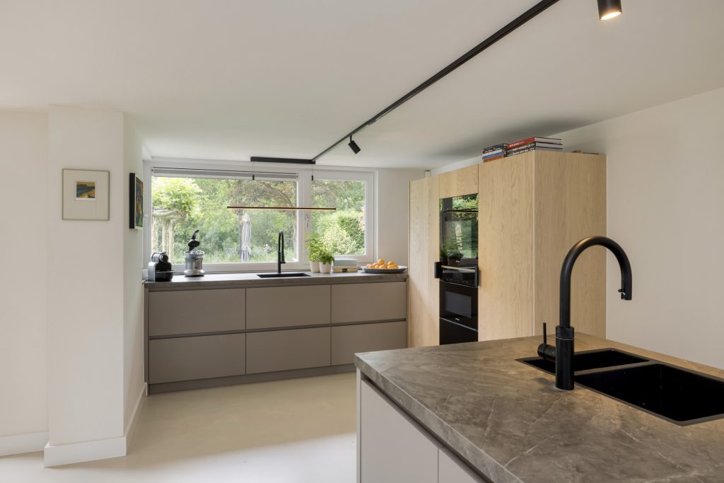 De keuken is recent vernieuwd en voorzien van hoogwaardige inbouwapparatuur. Dankzij ramen aan voor- en achterzijde is er zicht op zowel het Eikenven als de tuin langs de Achterste Stroom. Een tweede kamer grenzend aan de keuken is multifunctioneel inzetbaar als eetkamer, speelkamer of werkruimte.