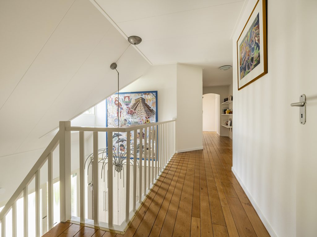 Aan de overloop met lichte vide grenzen maar liefst vier slaapkamers, waarmee het totaal op vijf komt. In alle slaapkamers ligt, net als op de overloop, een parketvloer en het geheel maakt een zeer goede indruk.