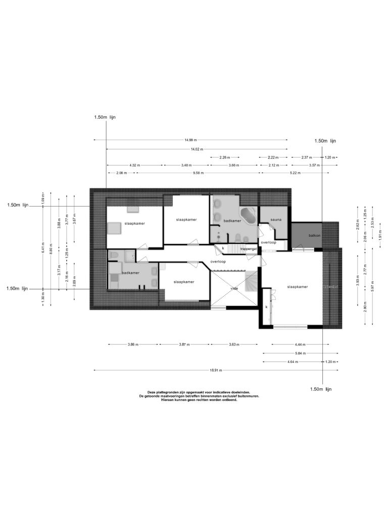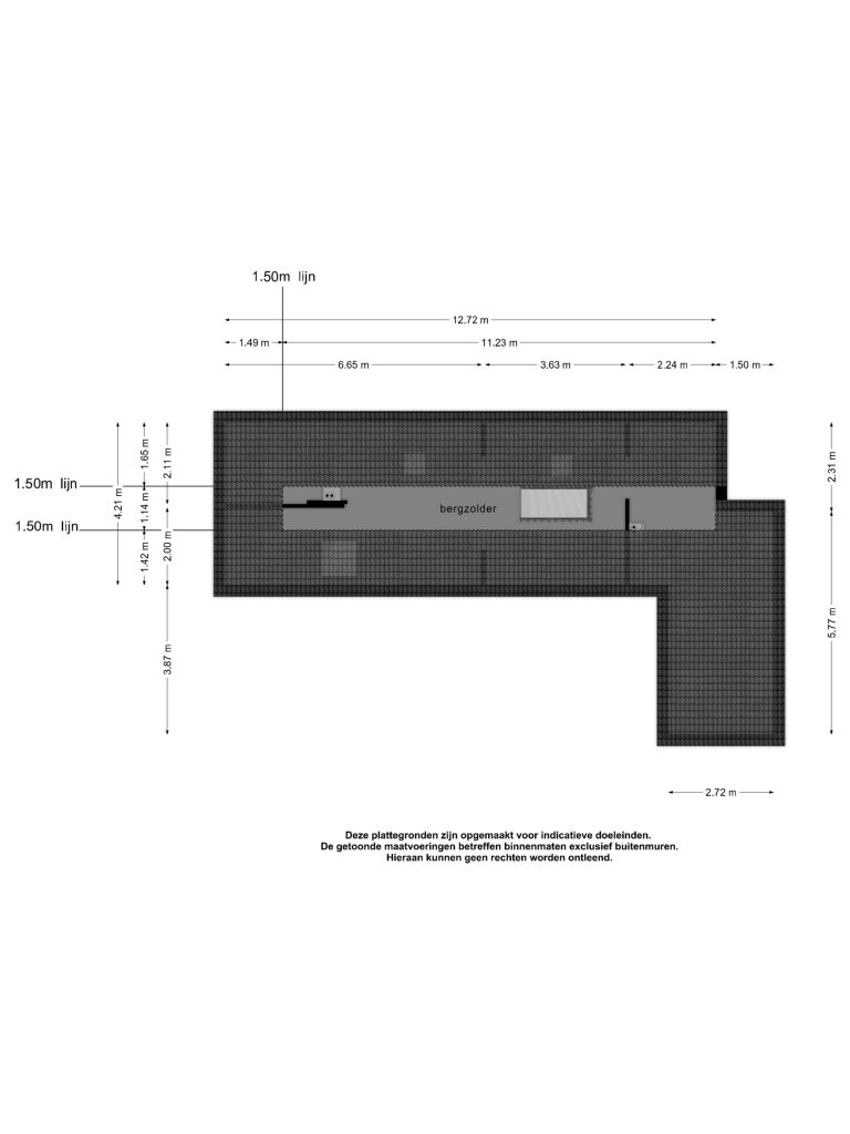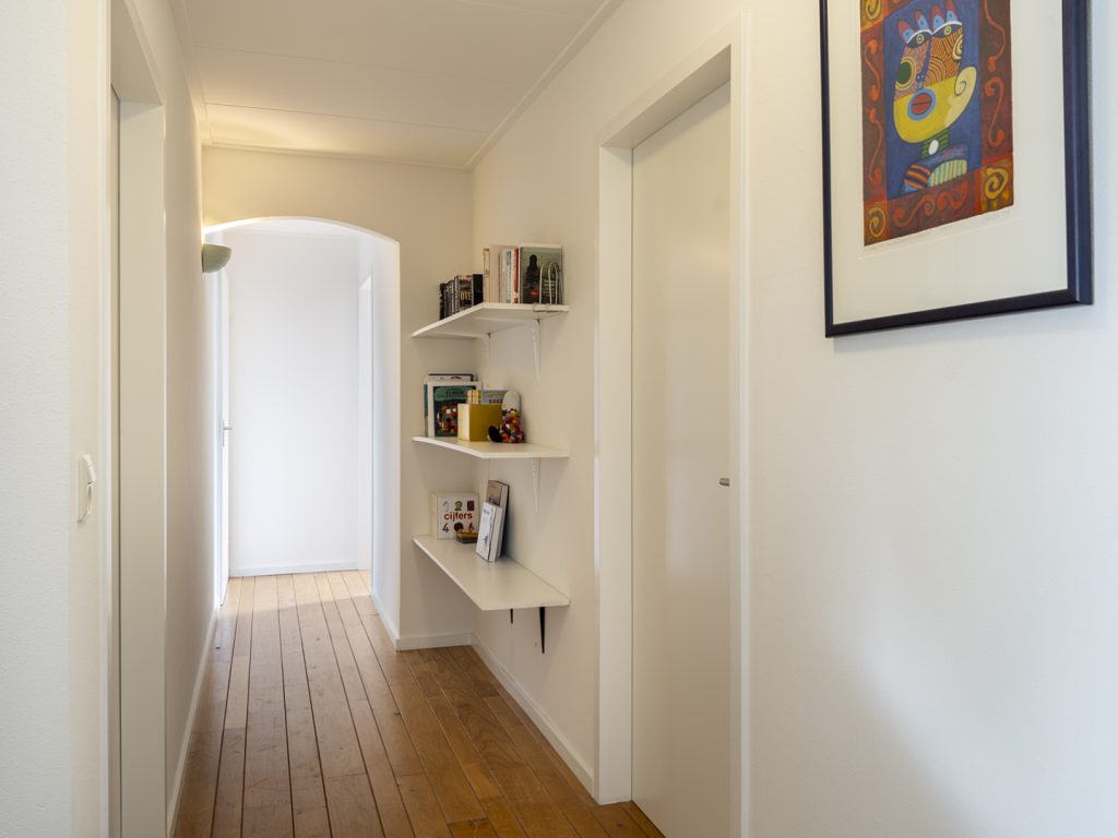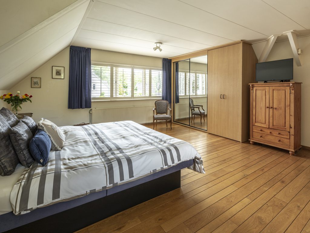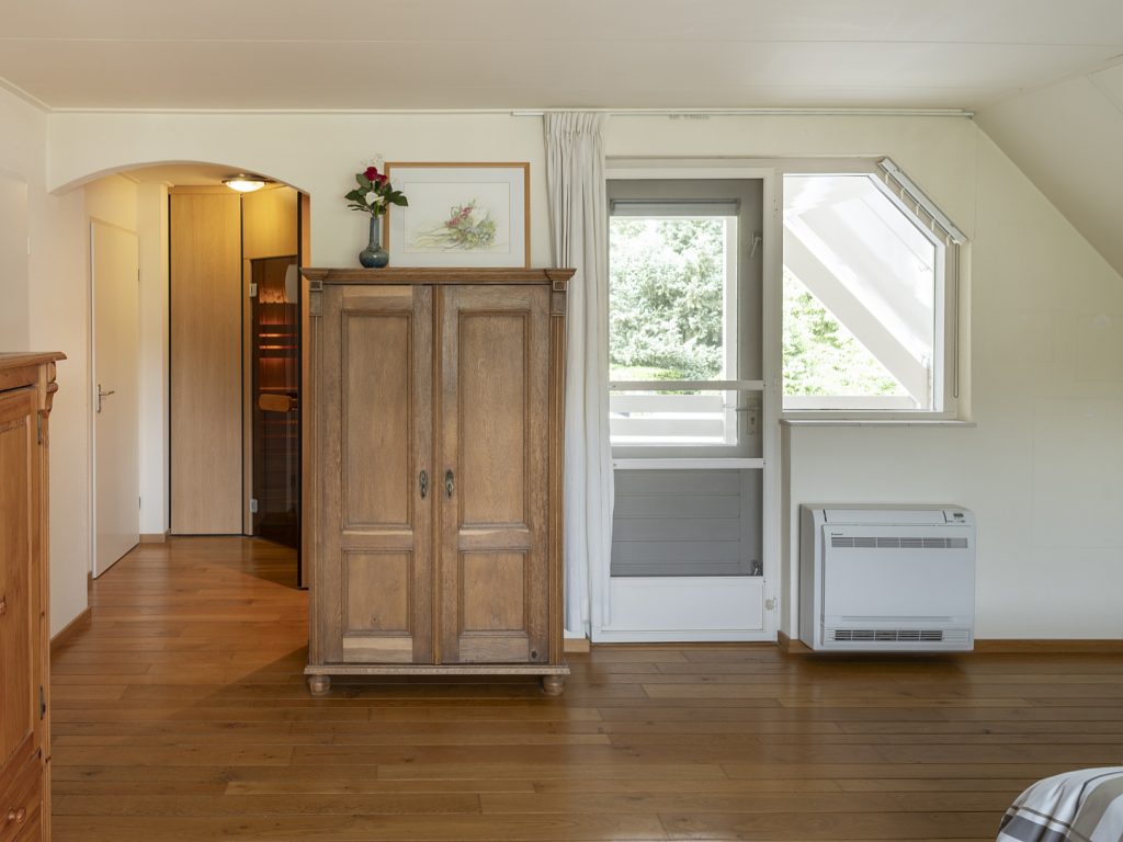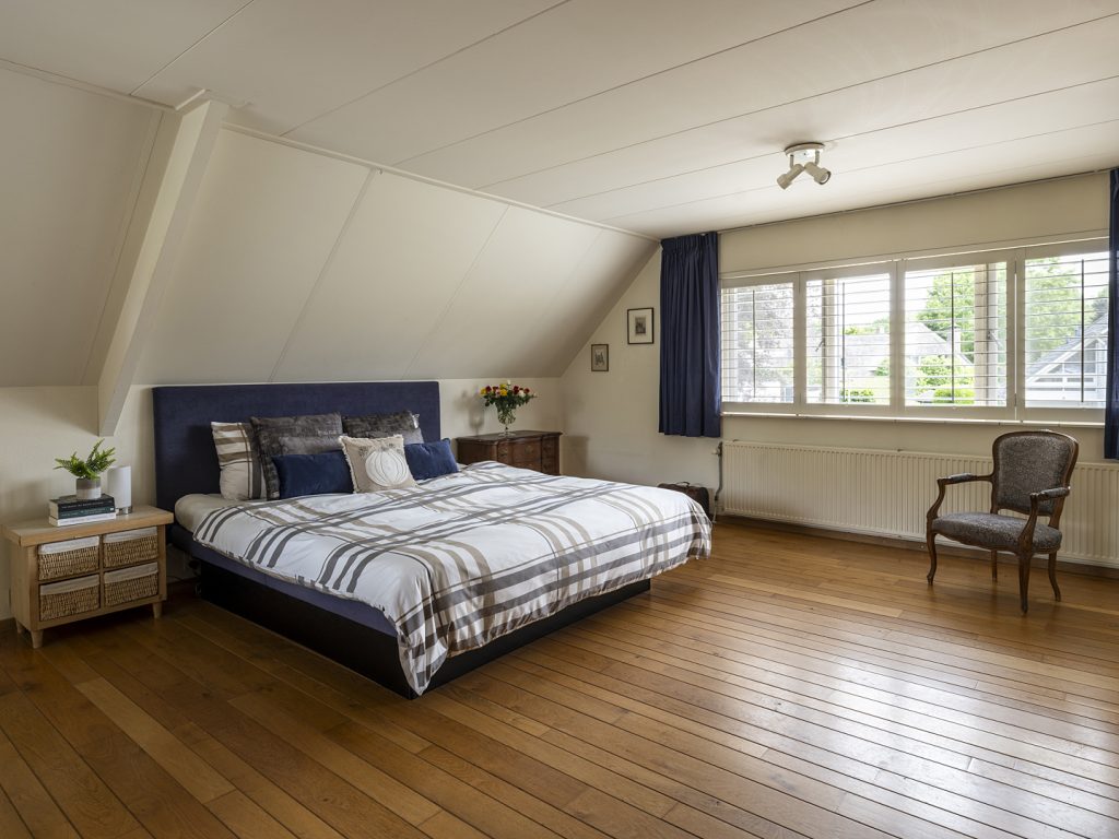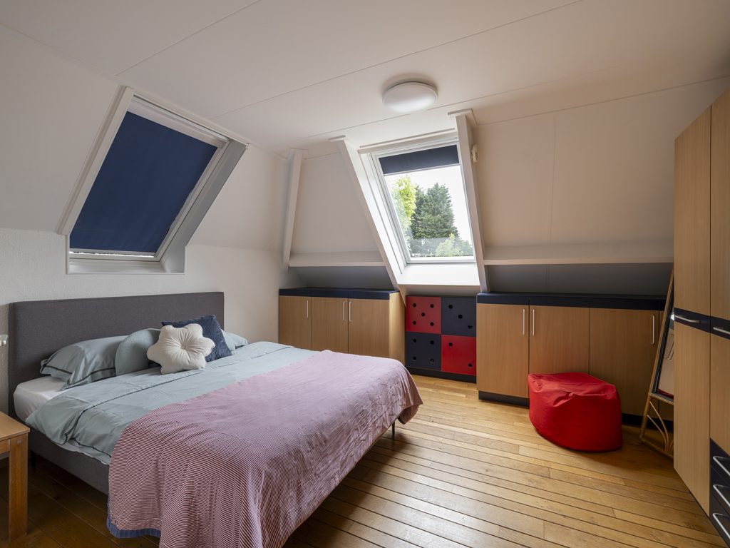 Achter een van de deuren op de overloop is een vaste trap naar de bergzolder.