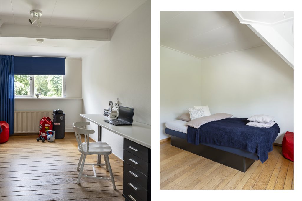 Verder zijn er twee badkamers op deze verdieping, perfect voor een gezin. De badkamer aan de achterzijde is ingedeeld met een hoekbad, inloopdouche, twee wastafels, een toilet en bidet. Naast deze badkamer is de sauna, waar de dagelijkse hectiek al snel wordt vergeten. Aan de voorzijde is een badkamer met een douche, toilet, twee wastafels, de opstelling van de wasapparatuur en meerdere inbouwkasten.