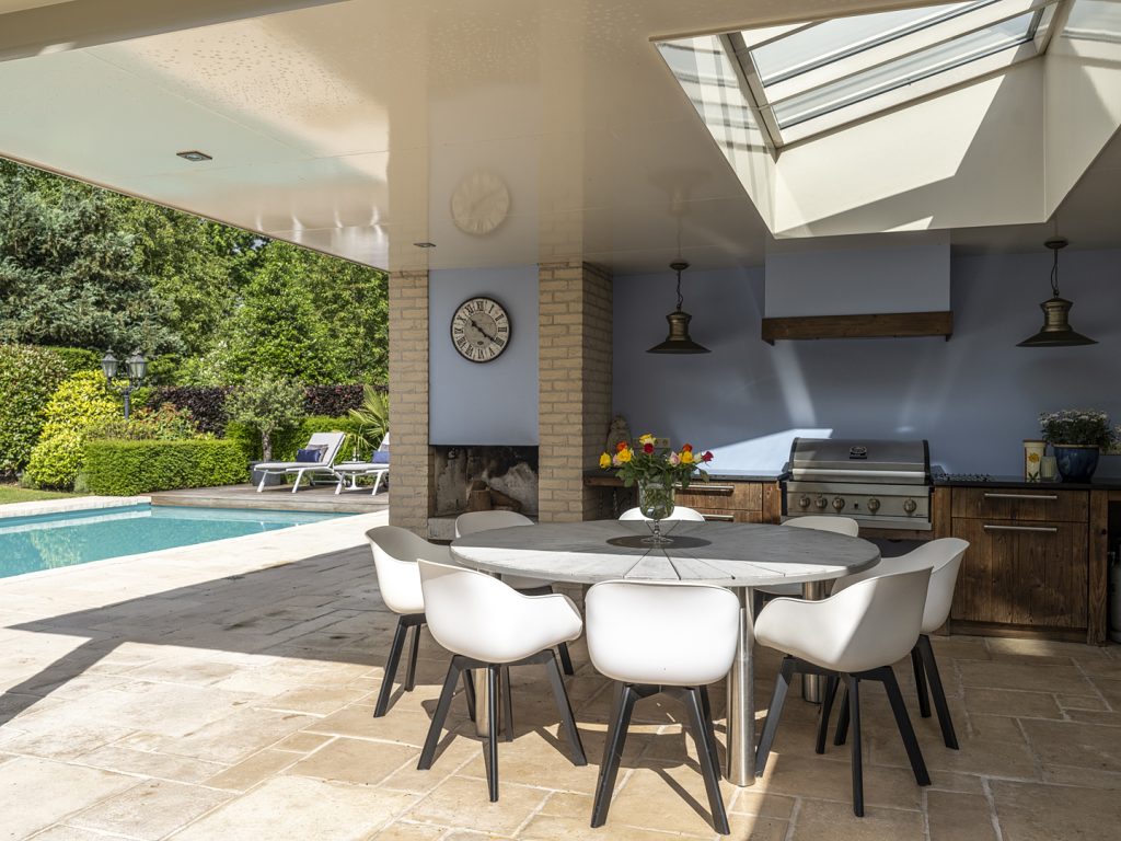 Deze fantastische villa, perfect voor een gezin en om gelijkvloers te wonen, staat op een perceel van 1.420 m². De achtertuin met verwarmd buitenzwembad is gesitueerd op het zuidwesten en biedt, dankzij hoge bomen op aangrenzende percelen, veel privacy. Favoriete plekken bij de bewoners zijn het zwembad met zonneterras en het overdekte terras met open haard en buitenkeuken. Een bijzondere plek aan de linkerzijde van de tuin is het prieeltje. Naast dit prieeltje staat een prachtige pruimenboom, die in het voorjaar bedekt is met bloesem. Hier staat een charmant mozaïek tafeltje met twee stoelen, de perfecte plek om ‘s avonds gezellig te genieten van een glaasje wijn. Het leven is goed in Venray …