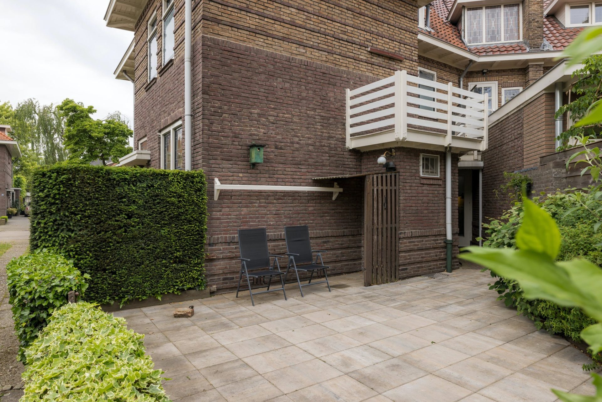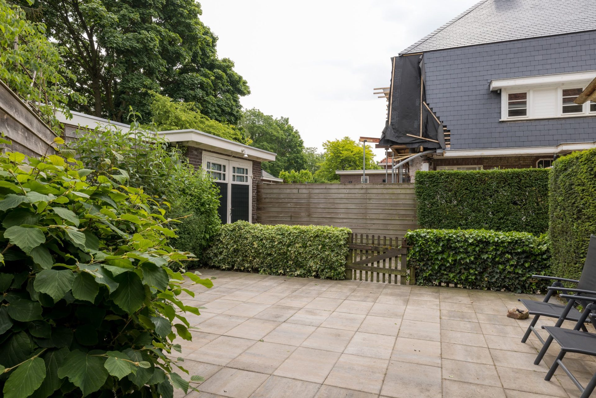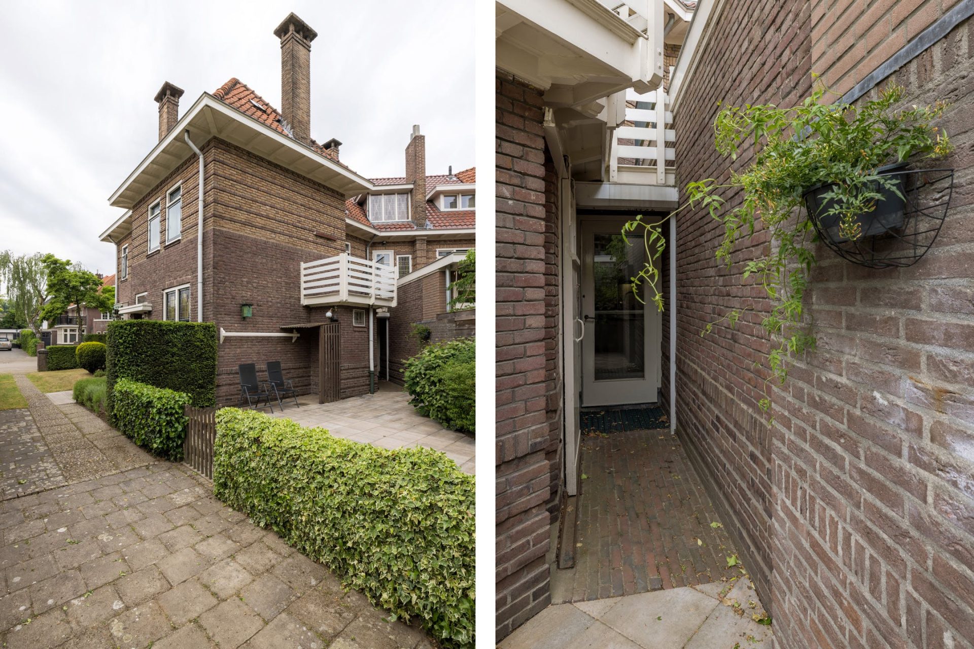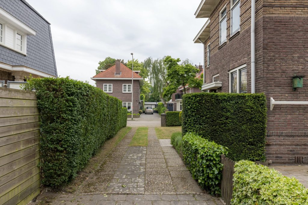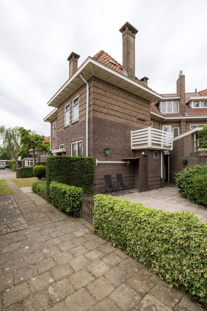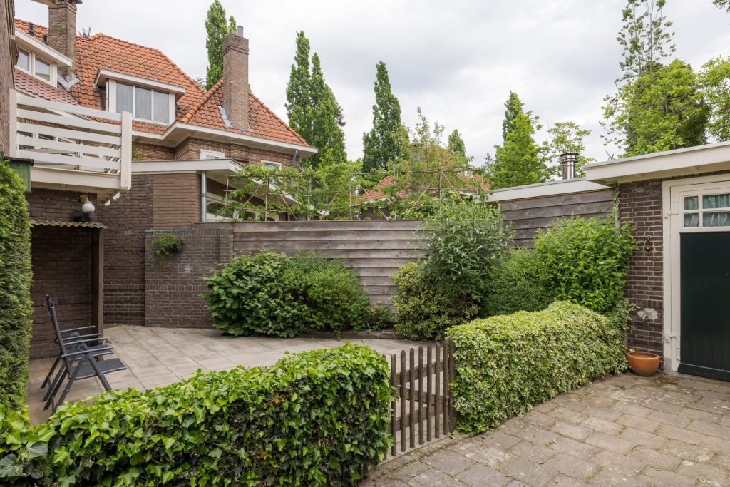 De stadsvilla staat op een perceel van 310m2, verdeeld in een brede voortuin, oprit met garage en een besloten achtertuin. Op de diepe oprit kunnen meerdere auto’s staan en de garage met openslaande deuren is een uitstekende plek voor de fietsen een auto en tuingereedschap. De onderhoudsvriendelijke achtertuin heeft veel privacy en de fraai aangelegde voortuin met tweede terras geeft de villa een fraaie uitstraling.