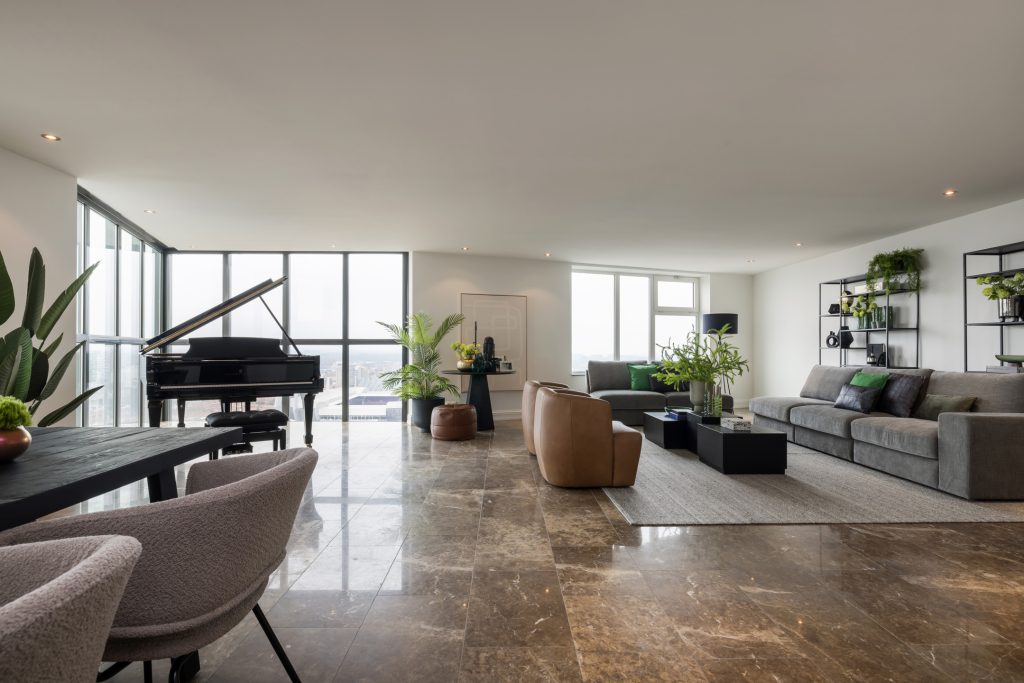 Welkom op de 26ste verdieping, waar slechts twee exclusieve appartementen zijn. Als u vanuit de lift stapt, is het maar een paar stappen naar de entree van dit ruim 230 m² grote, gelijkvloerse appartement.