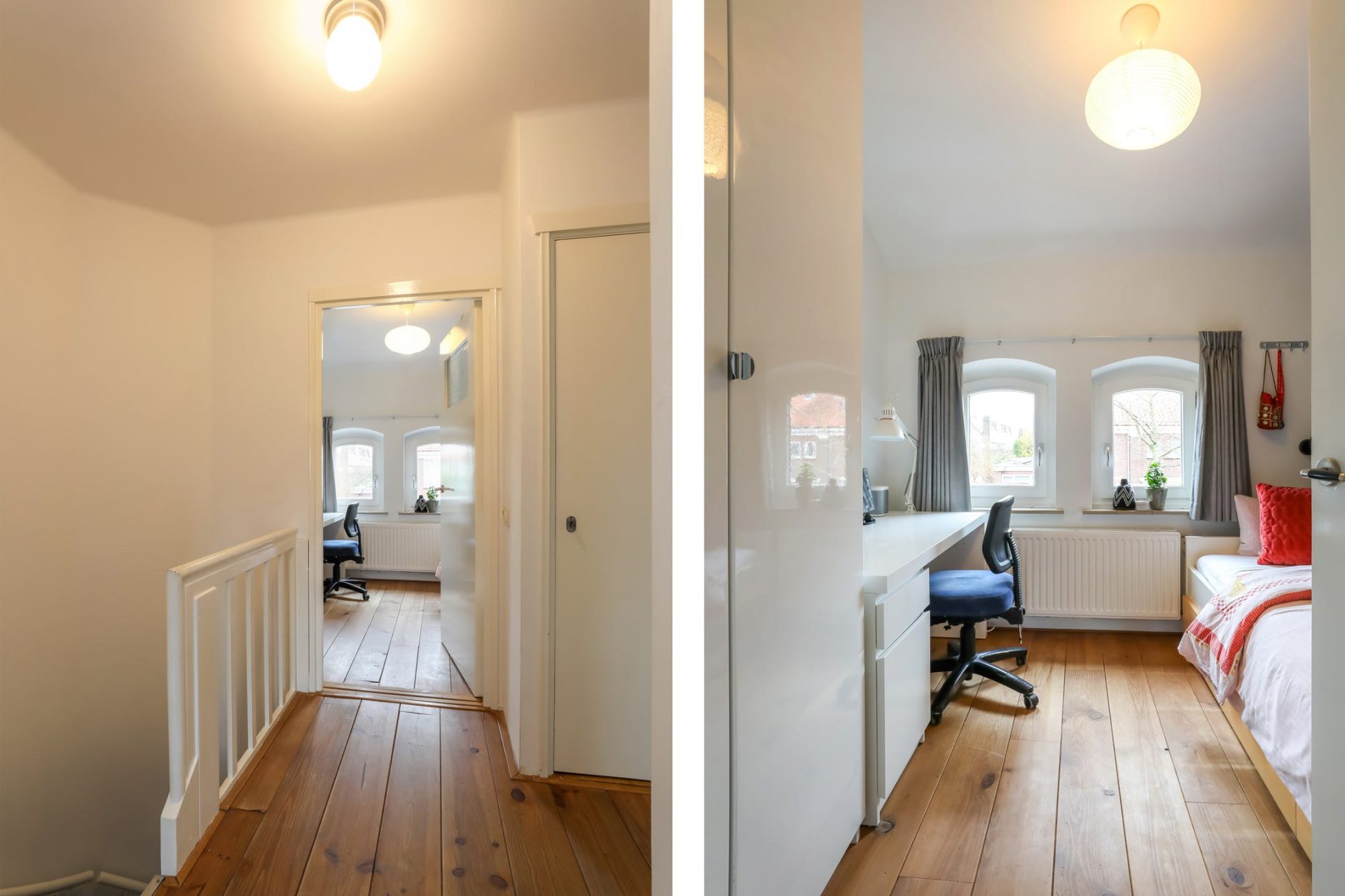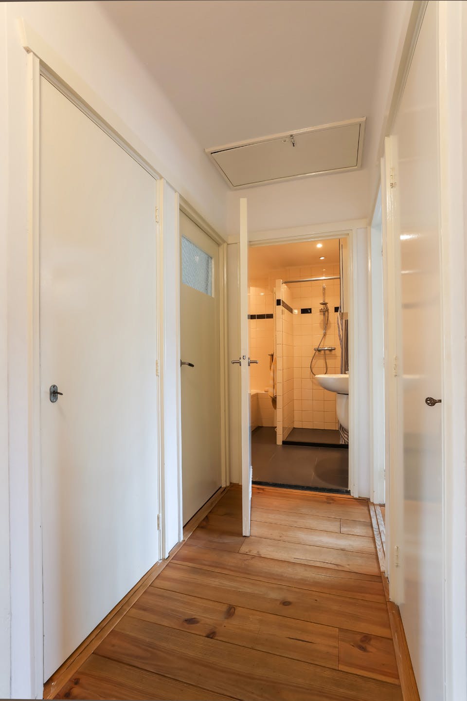 Middels overloop met een tweetal inbouwkasten.
