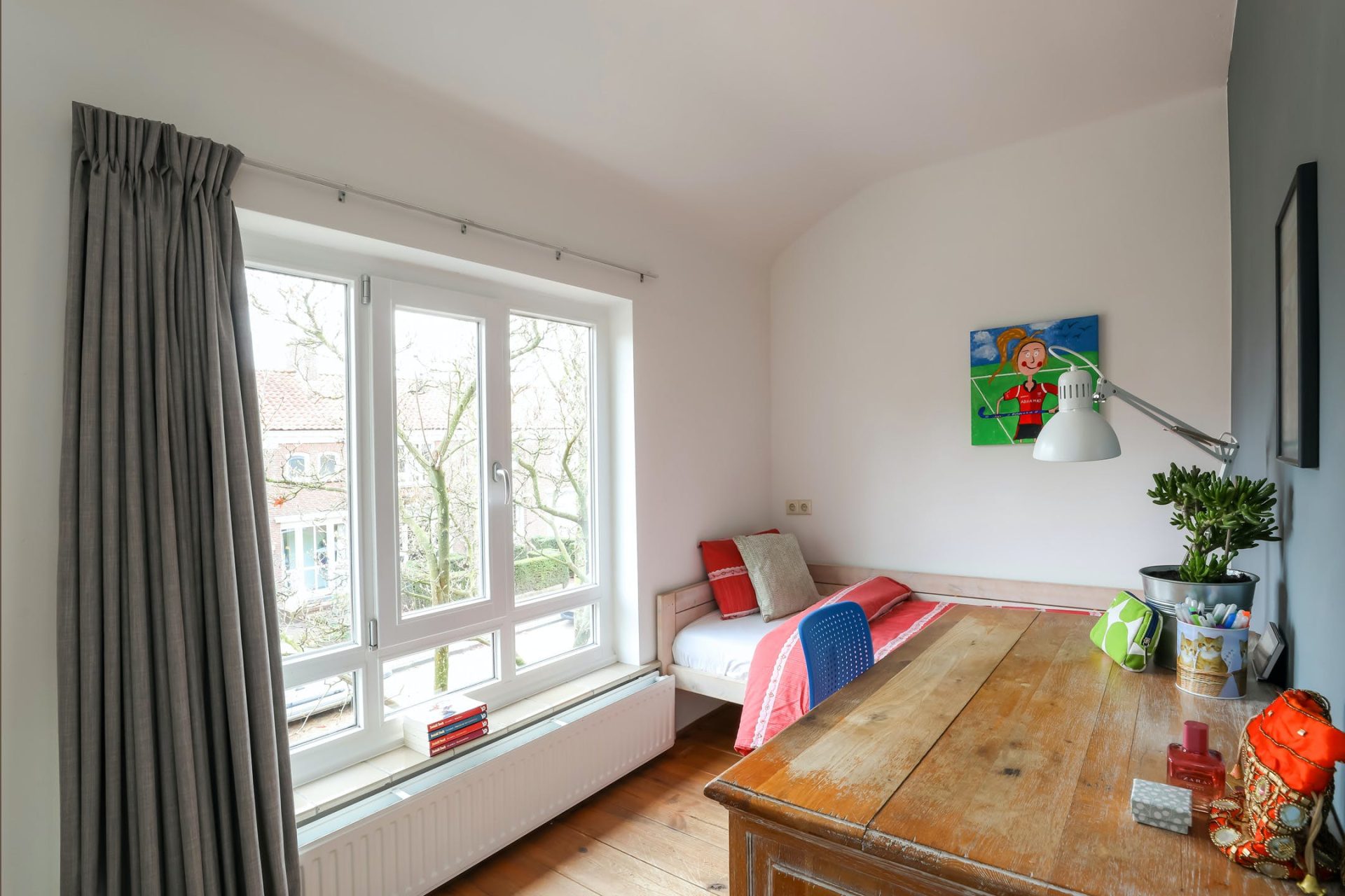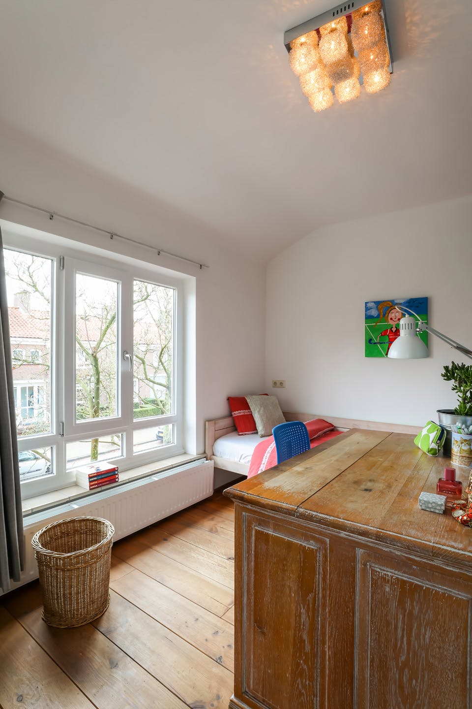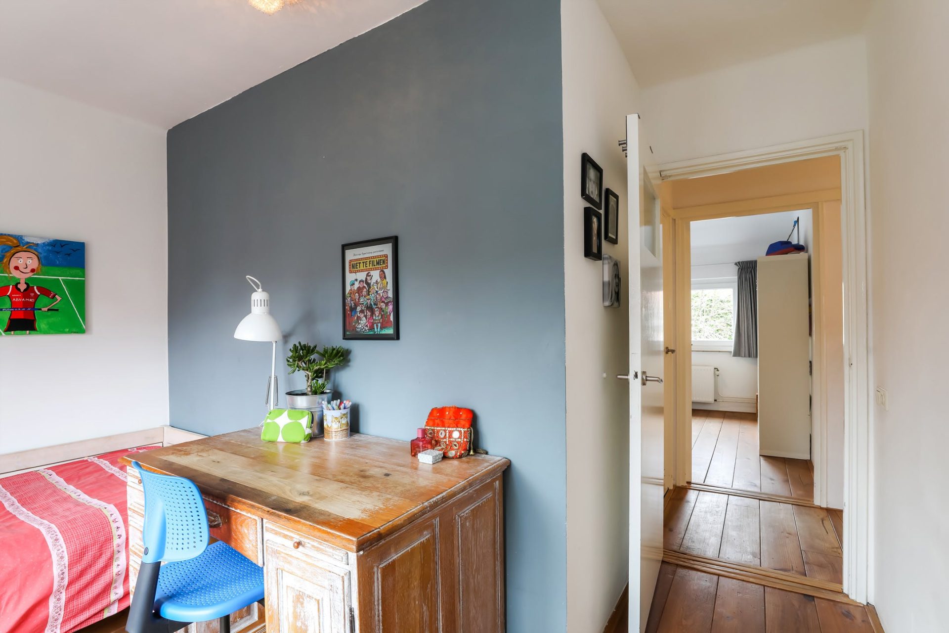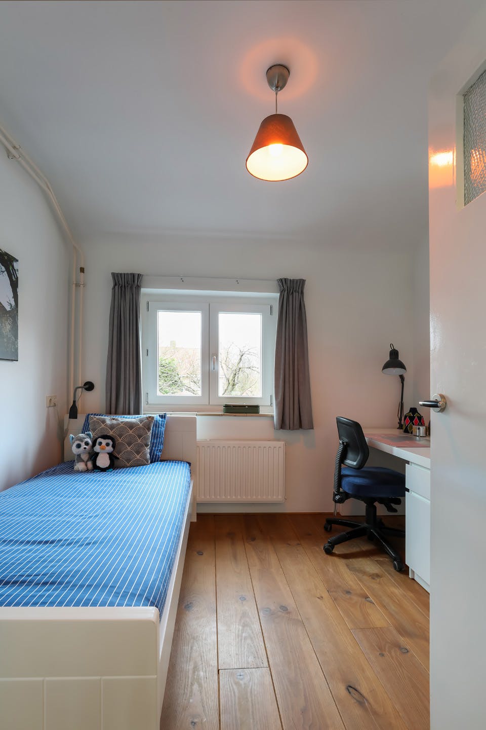 Deze extra ruimte op de begane grond is voor vele doeleinden geschikt. Momenteel is deze ingericht als slaapkamer en is tevens ideaal geschikt als speelkamer voor de kinderen of als fijne thuiswerkplek.