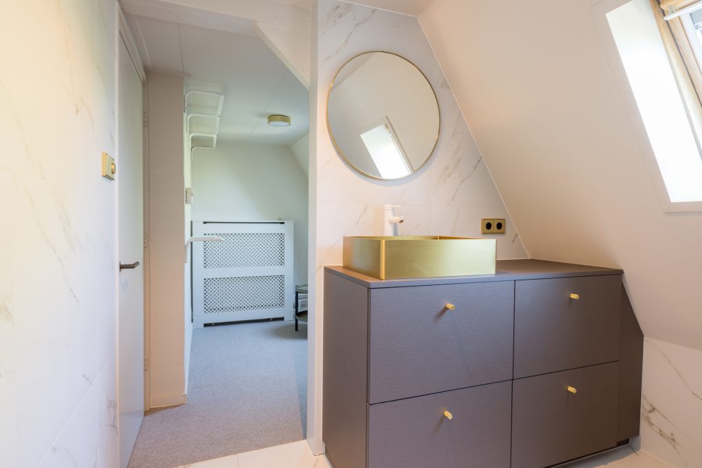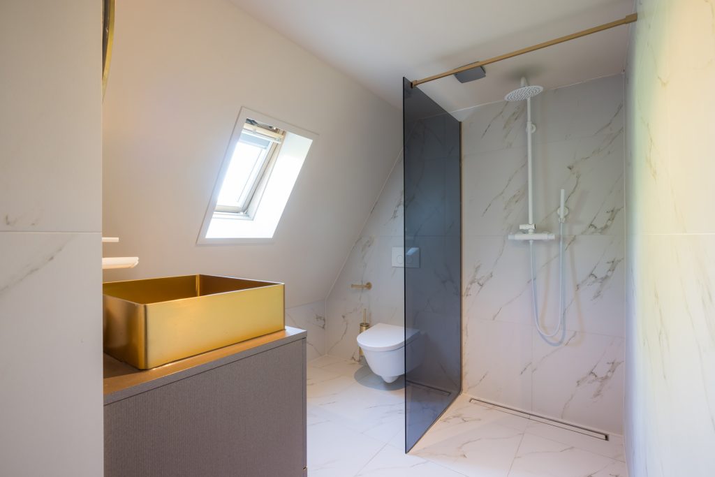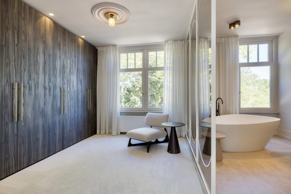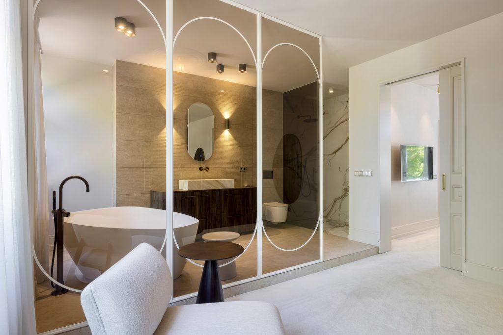 De luxe badkamer op deze verdieping is een ware oase, met een inloopdouche voorzien van een regen- en hangende sproeier, een hangend toilet en een op maat gemaakt wastafelmeubel met een gouden wasbak en een spiegel met geïntegreerde afzuiging. Aansluitend bevindt zich een en-suite kleedkamer, een droom voor iedere modeliefhebber.