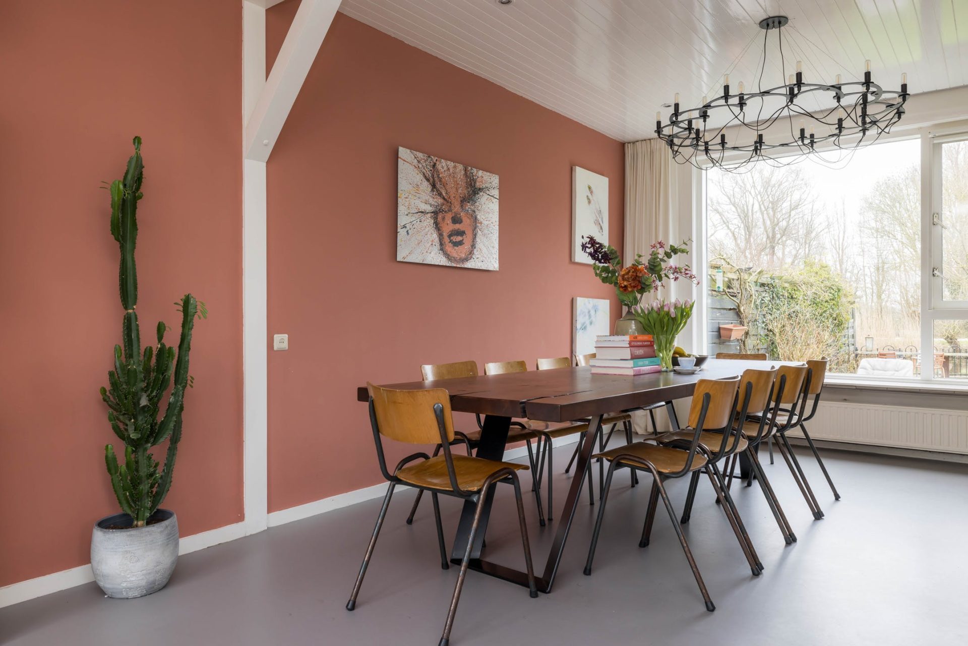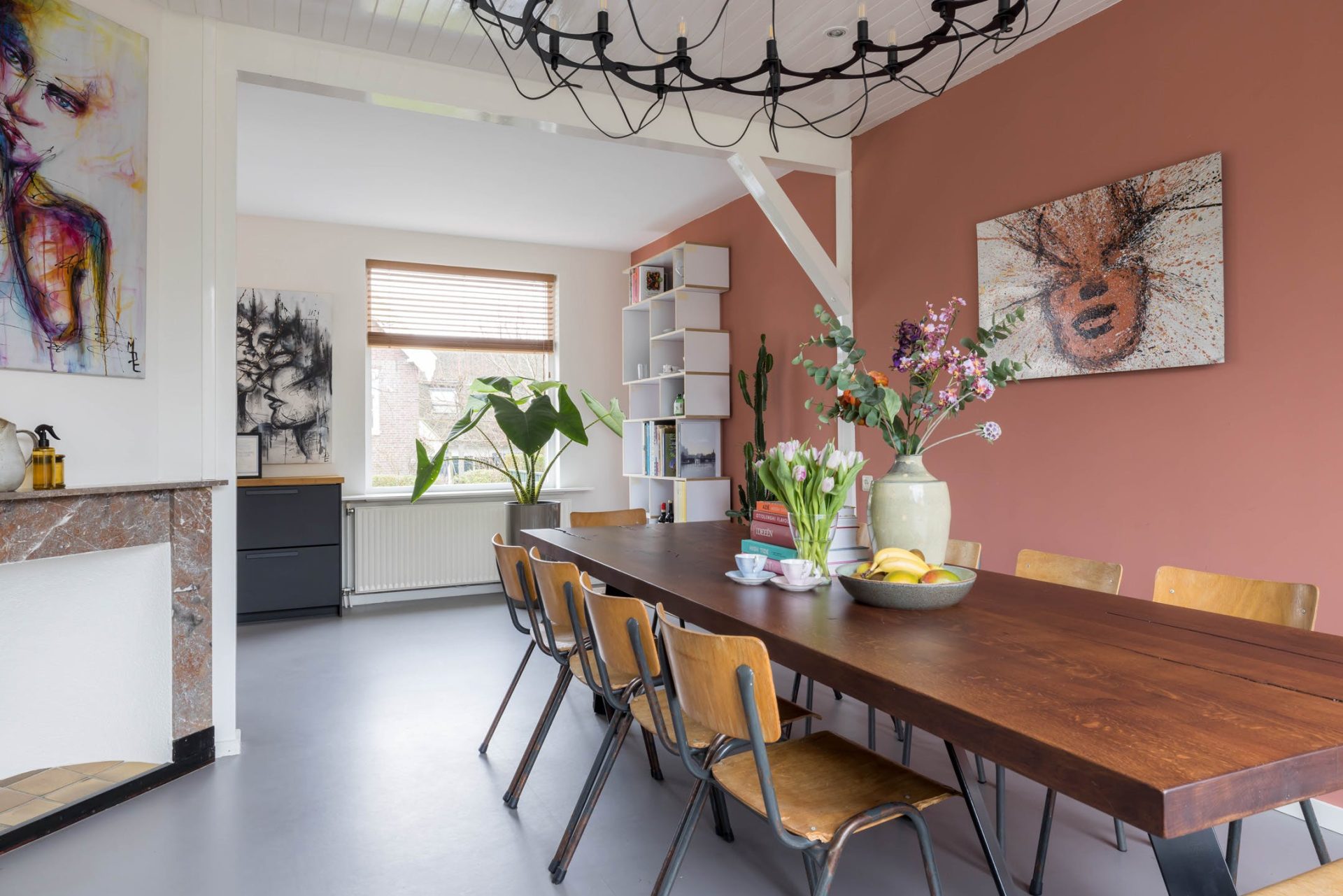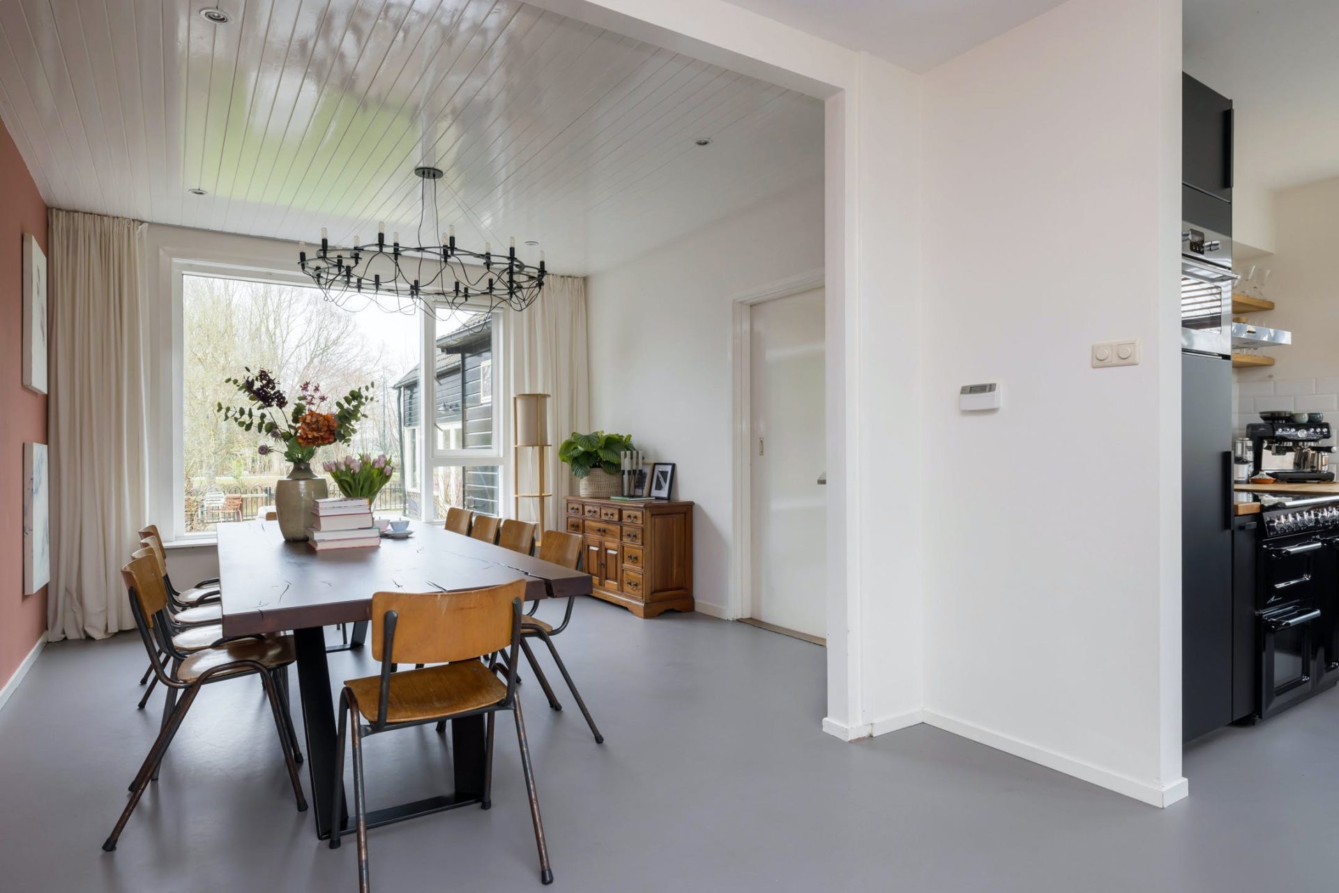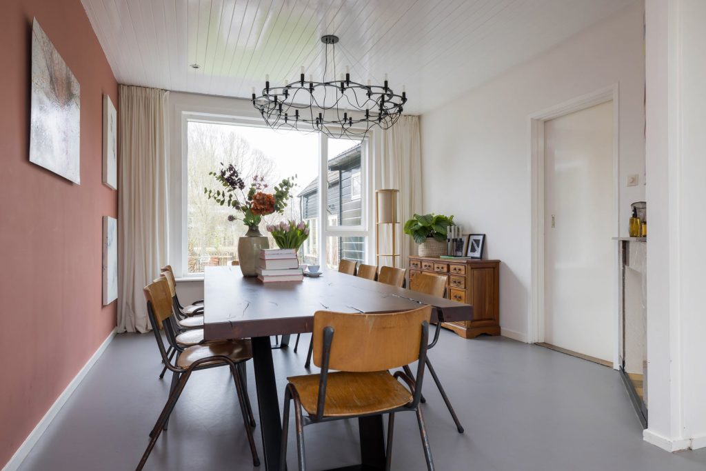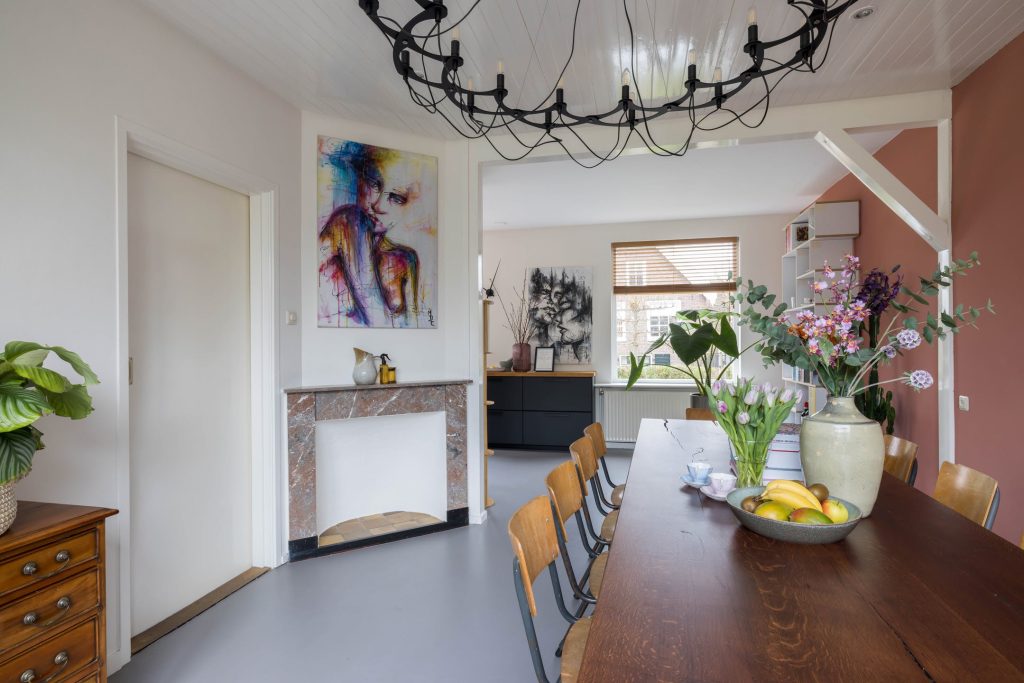 De woning is verdeeld in een voor- en een achterhuis waardoor er veel meer ruimte is dan de buitenzijde doet vermoeden. Vanuit de zeer ruime hal is de prachtige woonkeuken te bereiken met grote ramen aan de voor- en achterzijde. Voorheen was dit de woonkamer maar nu is dit de plek om bezoek te ontvangen, te koken en samen te eten.