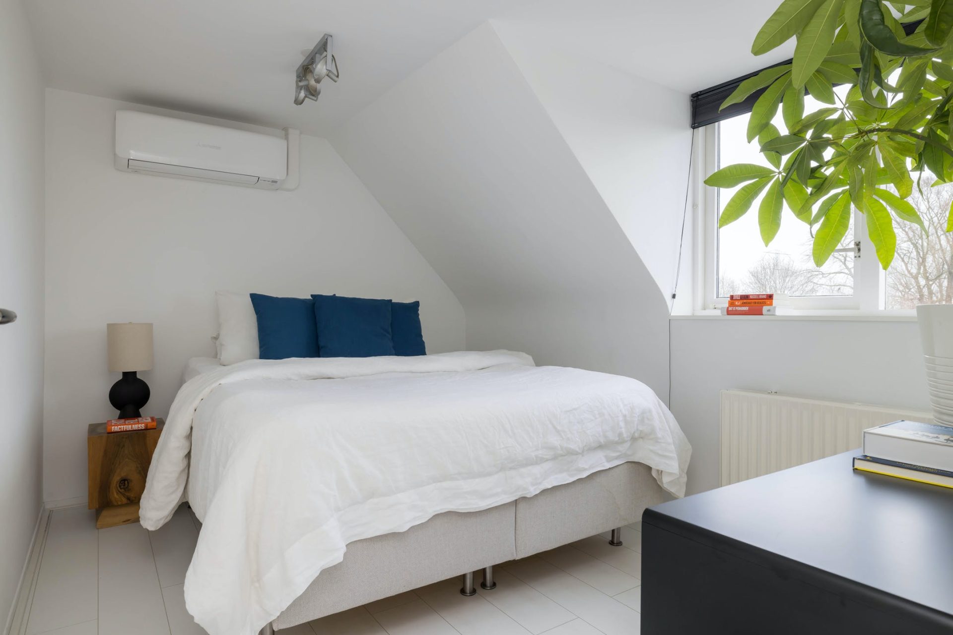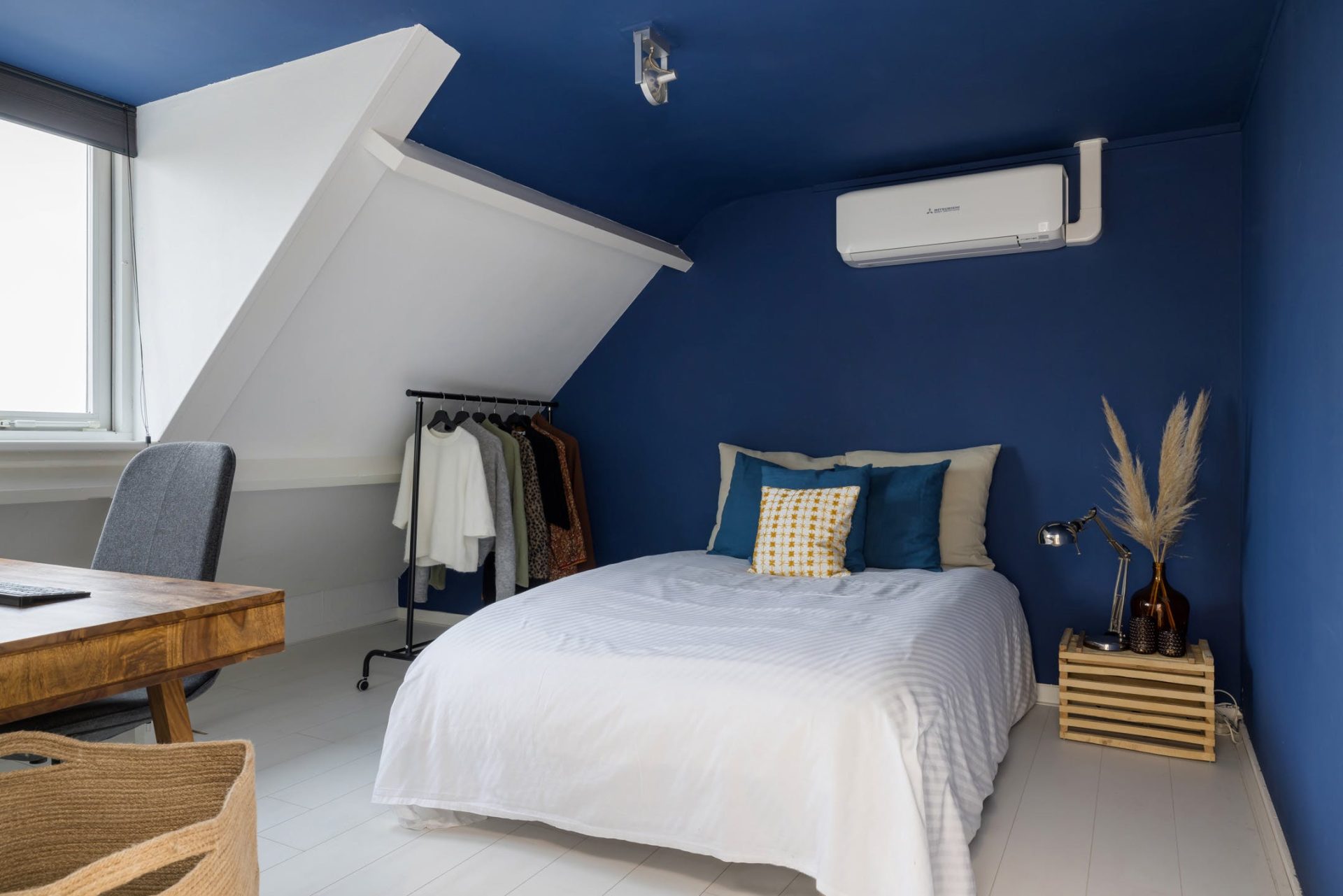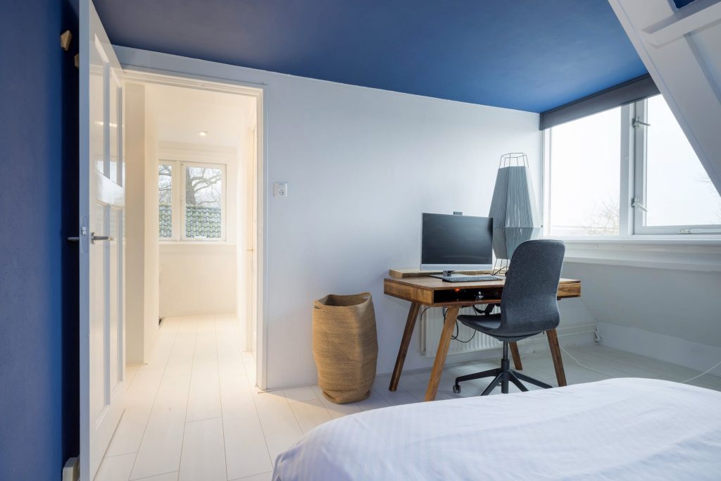 In het voorhuis, te bereiken via de trap in de hal, zijn drie slaapkamers en de badkamer gesitueerd. Dankzij de dakkapellen bieden de slaapkamers en de badkamer genoeg ruimte. De badkamer is ingedeeld met een douche, toilet en een wastafelmeubel. Deze twee slaap-/werkkamers zijn voorzien van een airconditioning (2021)