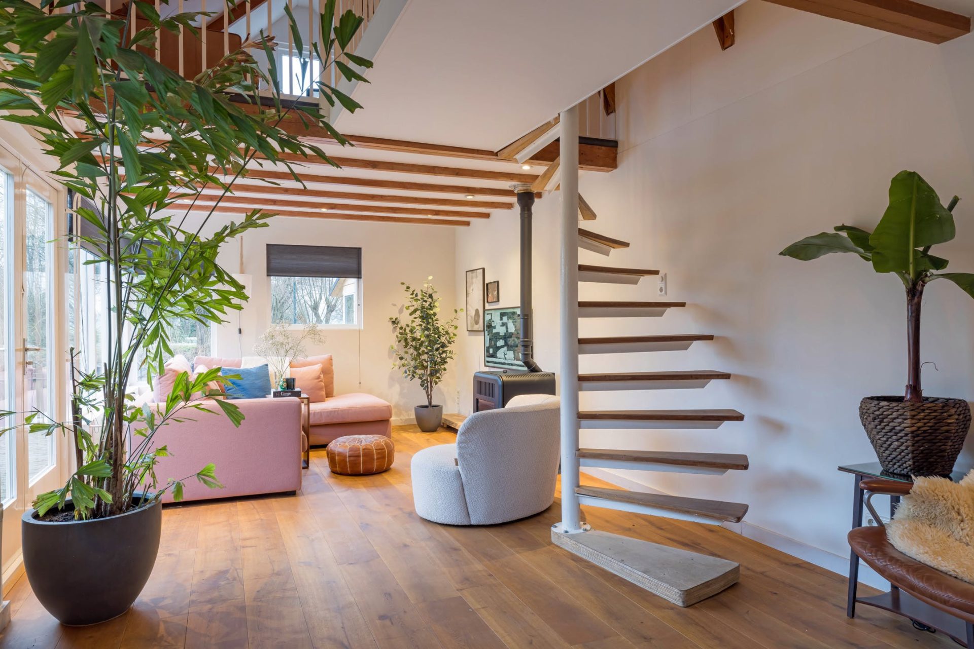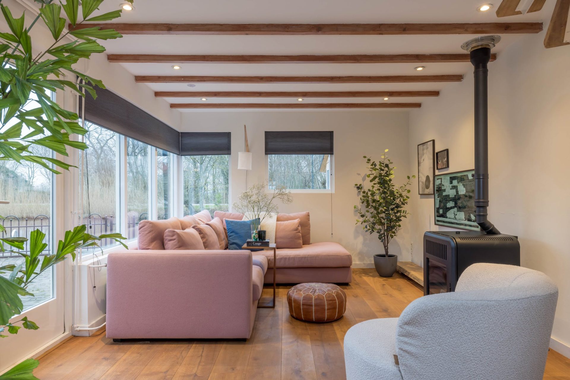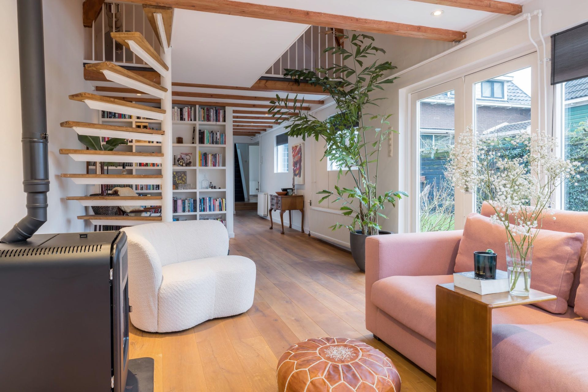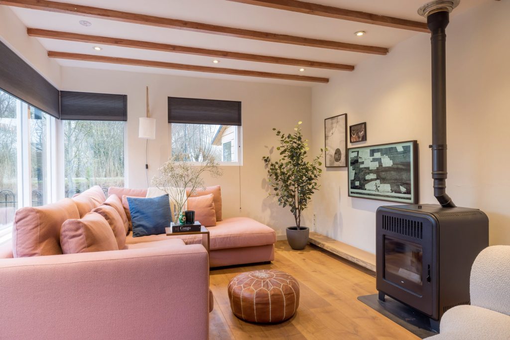In het achterhuis zijn de ruime bijkeuken/berging en de zitkamer gesitueerd. De bijkeuken heeft een eigen entree en de opstelling van de pellet cv-ketel en de boiler, die zorgen voor een duurzaam en aangenaam woonklimaat. De zitkamer met grote ramen, openslaande tuindeuren, pellet haard en vide is een adembenemende plek waar sfeer met hoofdletters wordt geschreven.