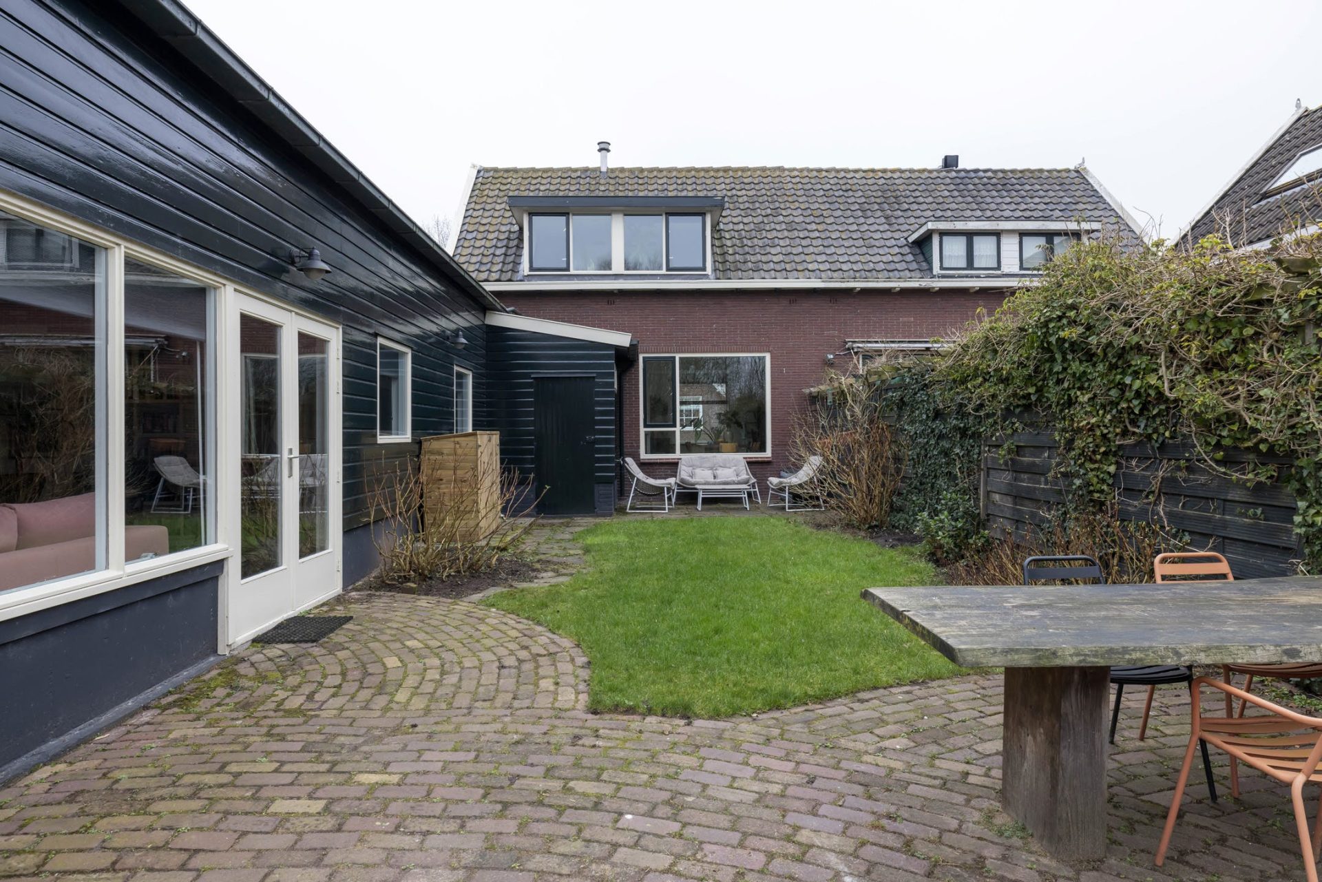 – houten kozijnen, voorzien van dubbel glas (m.u.v. voordeur);