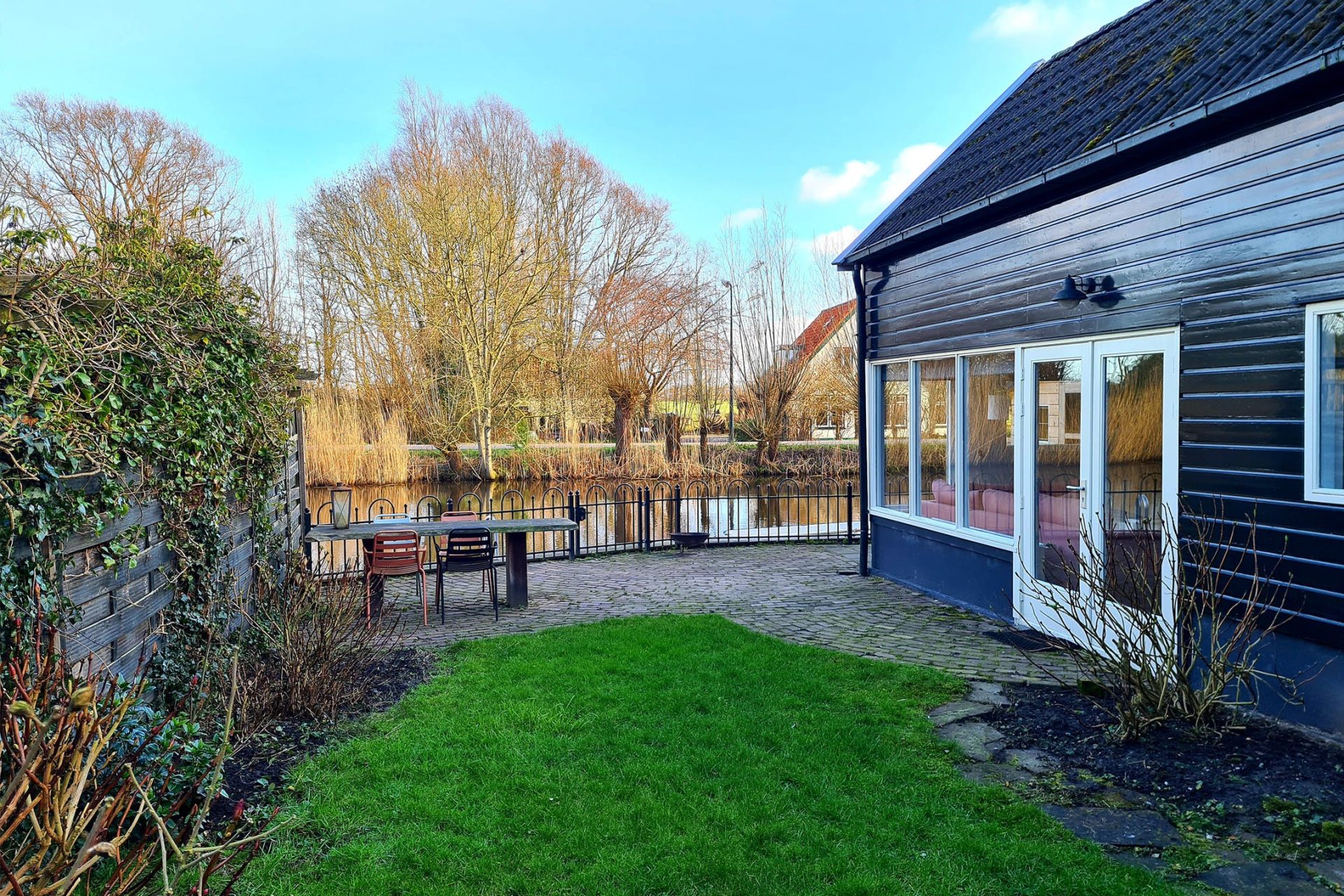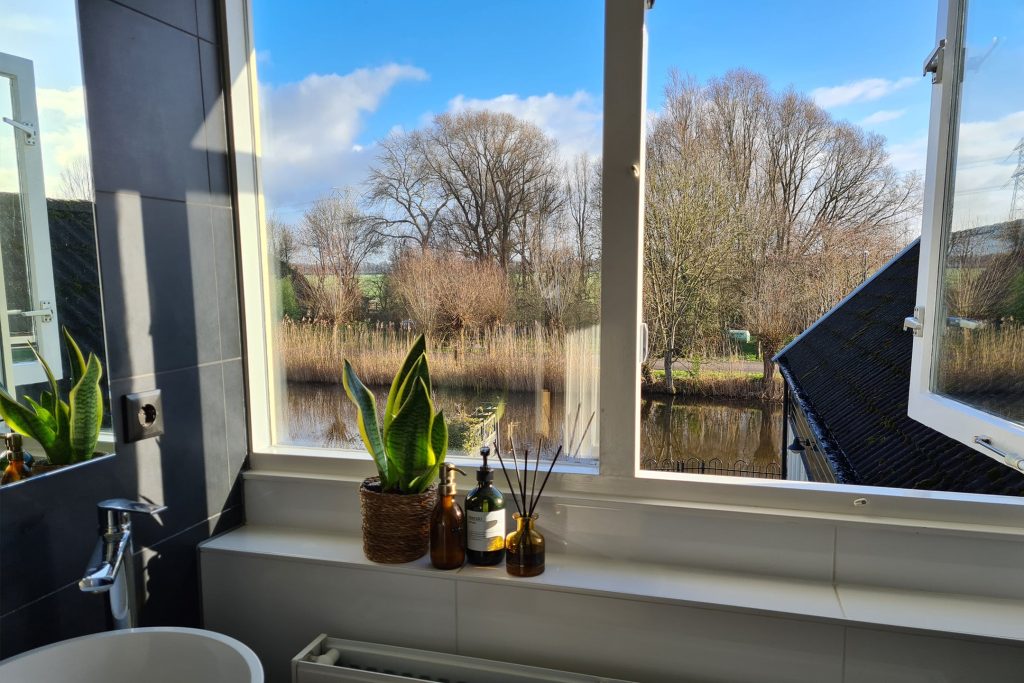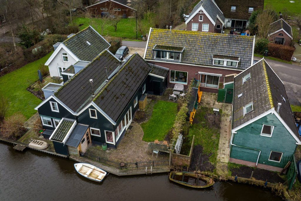 Aan de voorzijde zie je een leuke, goed onderhouden tuin en de diepe oprit waar drie auto’s kunnen staan. De zonnige achtertuin ligt aan het idyllische vaarwater van ’t Gein en heeft een houten hek uit oogpunt van veiligheid. Op het grote terras aan het water geniet je volop van deze bijzondere plek en kun je ook heerlijk gebruik maken van je eigen sauna. Je hebt de beschikking over een eigen ligplaats voor een kleine boot of een sloep.