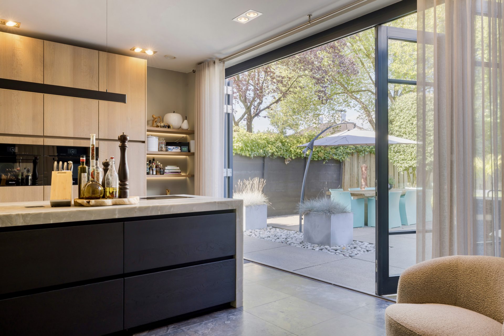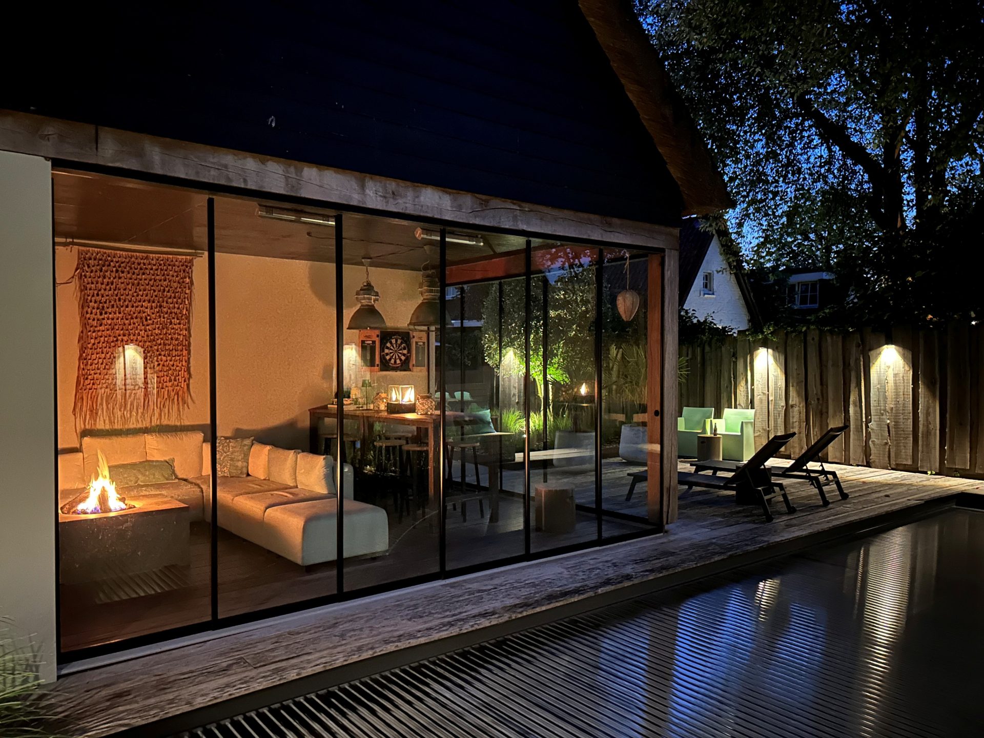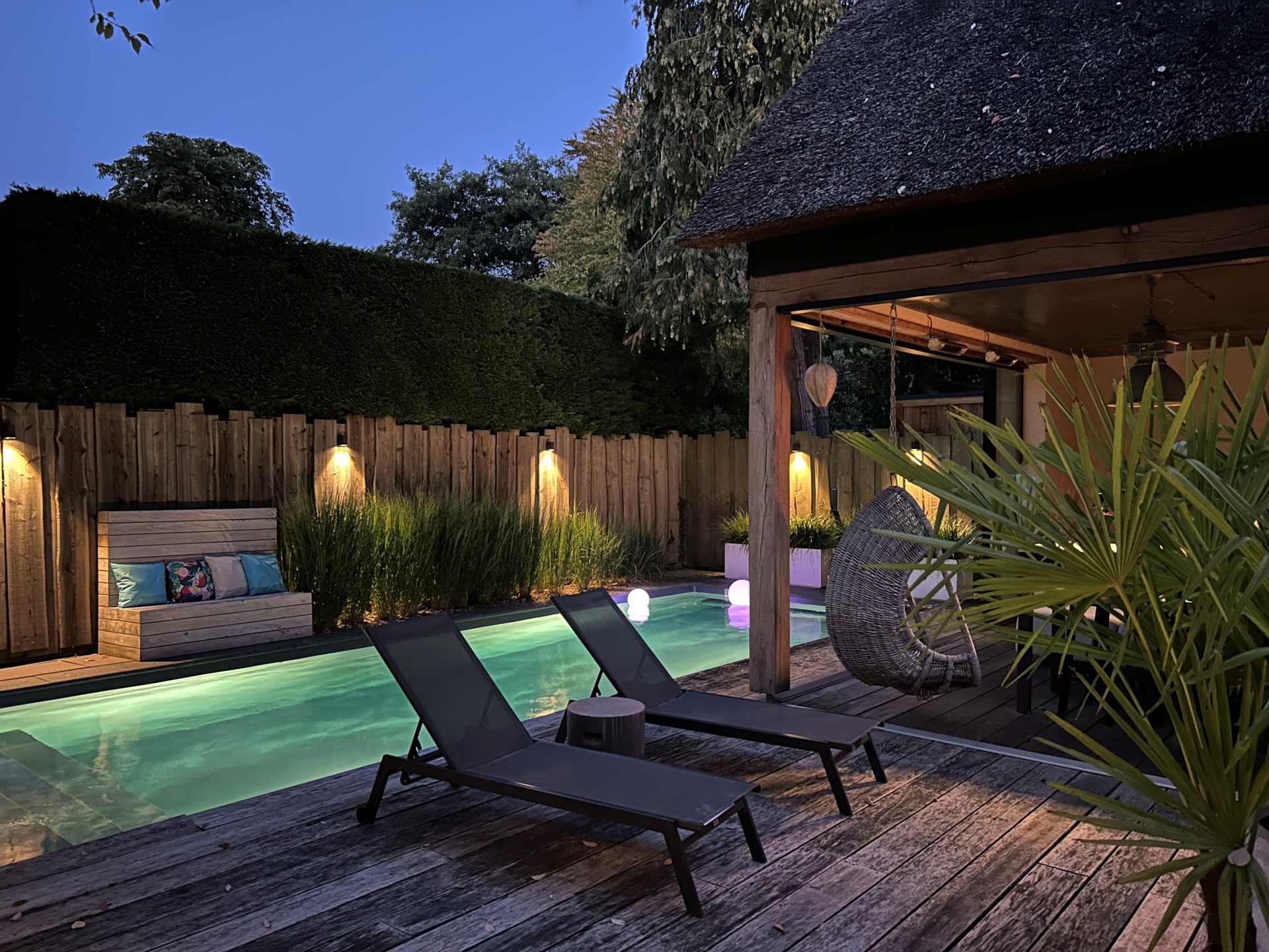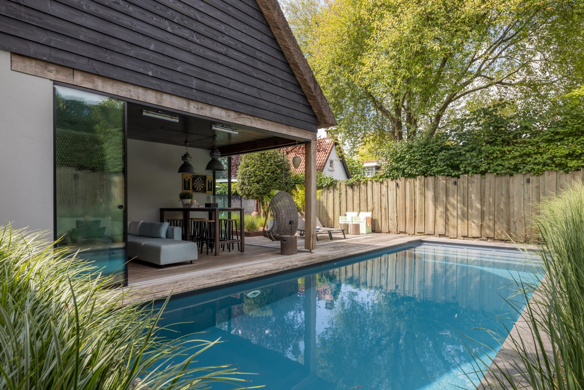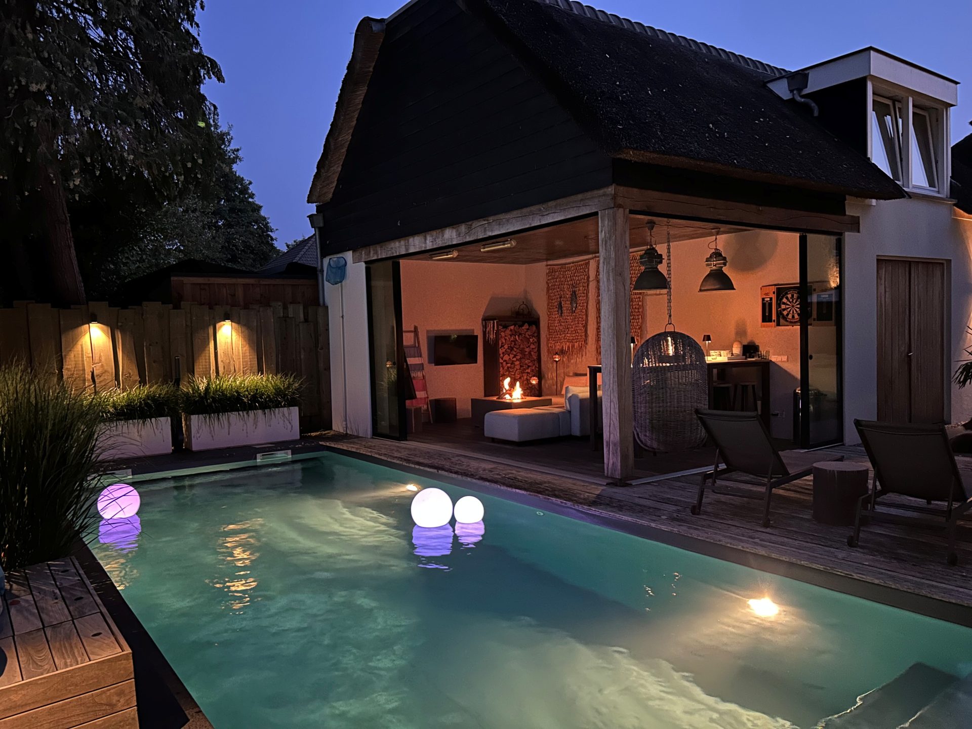 Achter de charmante gevel van deze rietgedekte woning uit ca. 1920 – verscholen tussen het groen en met niets dan rust om zich heen – schuilt een paradijs dat zó fotogeniek is, dat je zou geloven op een tropisch eiland te zijn beland. En toch ben je gewoon in Oisterwijk.