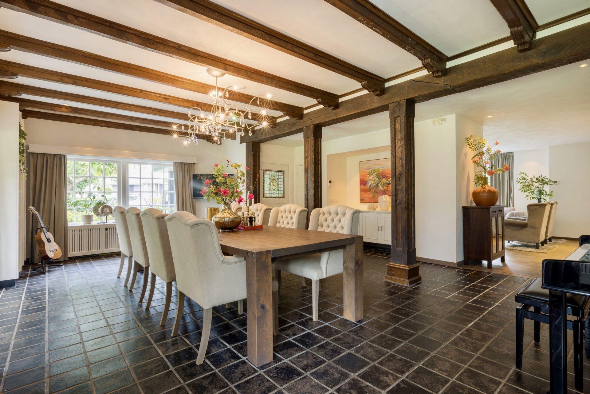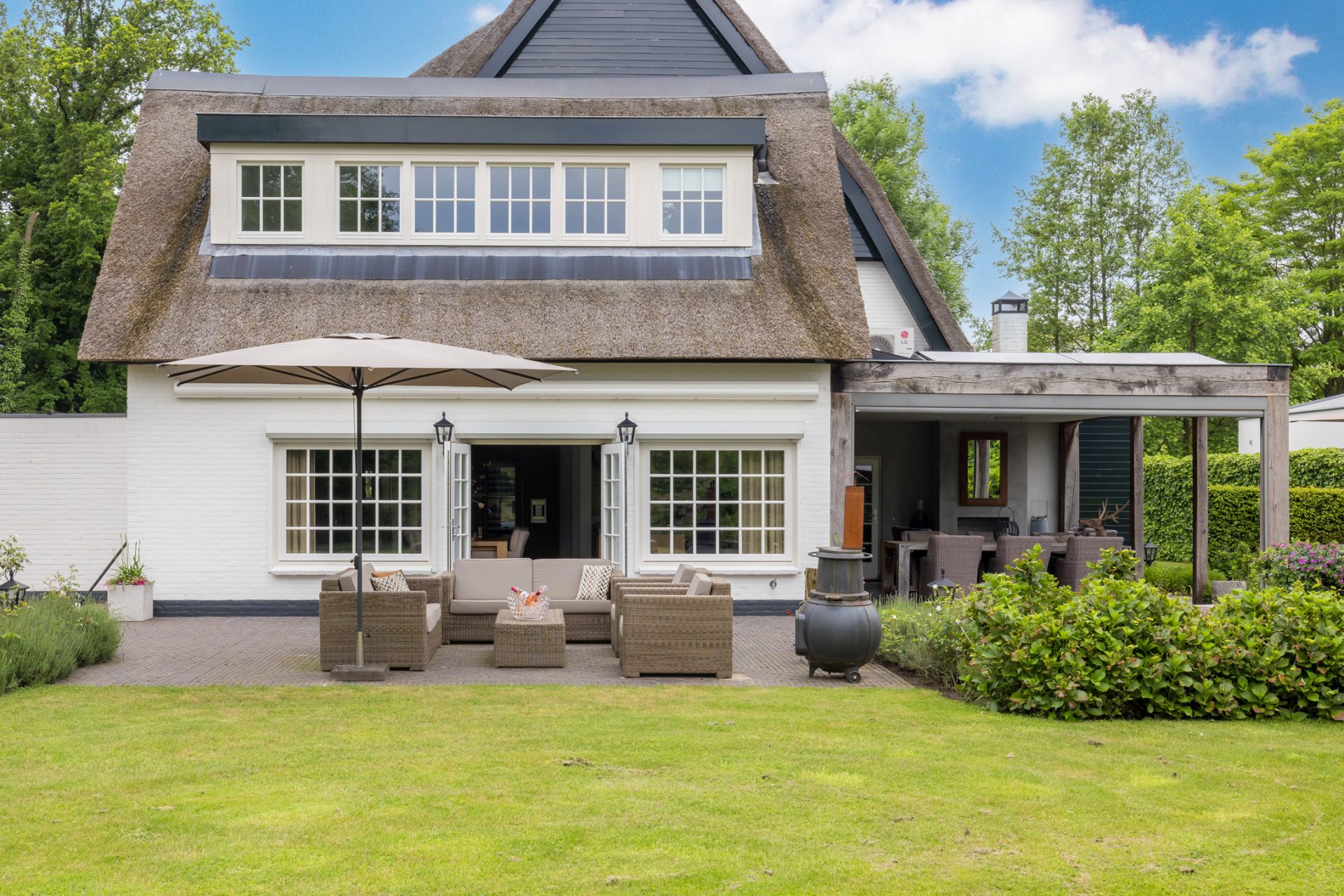 Deze schitterende, rietgedekte villa is een bekend gezicht in Oisterwijk en staat bekend om haar rijke geschiedenis. ‘De Gulle Ark’ heeft ondermeer jarenlang dienstgedaan als restaurant en kookstudio en fungeert nu als een heerlijk familiehuis. Deze unieke villa combineert klassieke charme met moderne luxe, en biedt alles wat een gezin zich kan wensen.