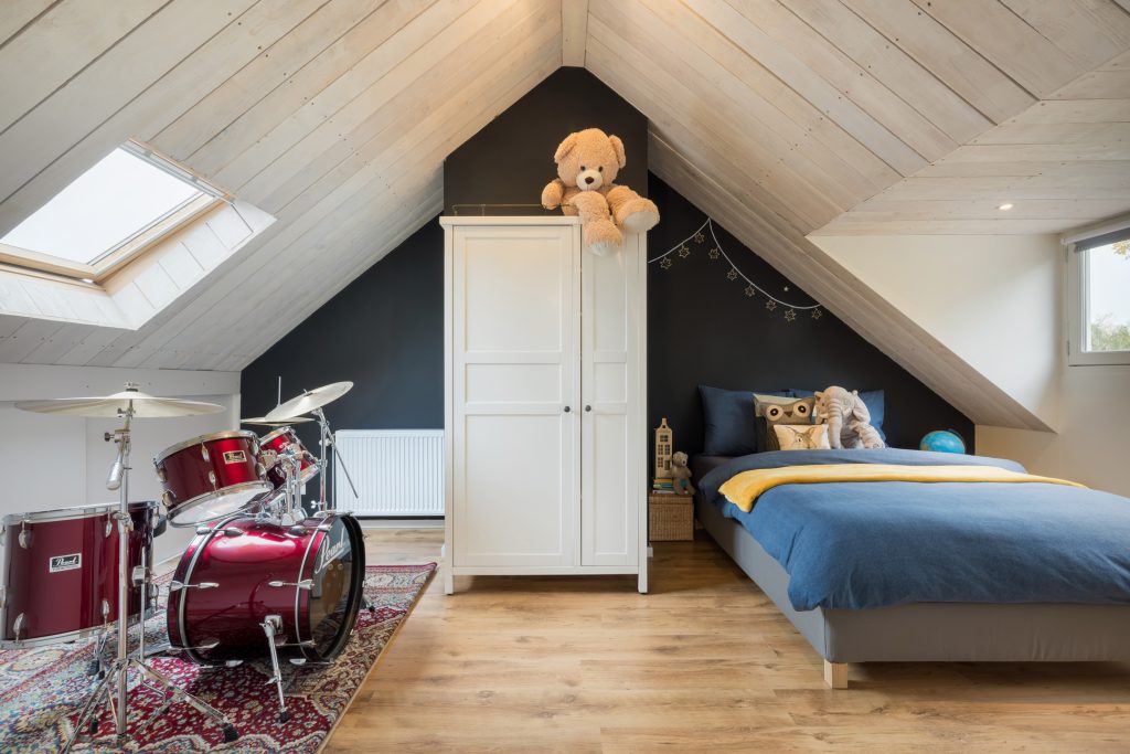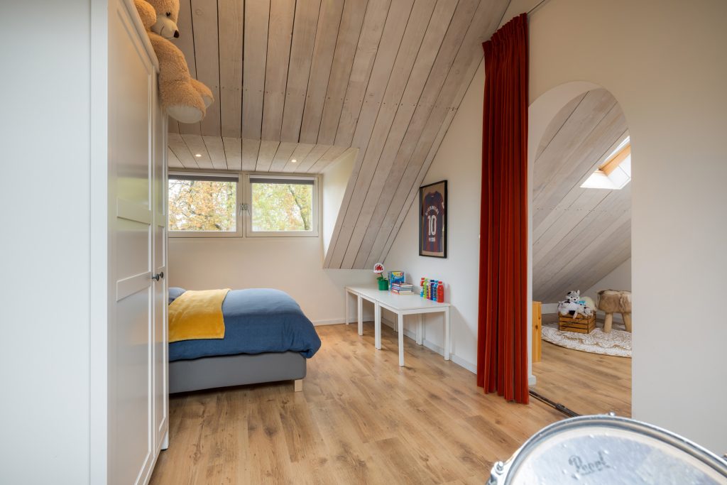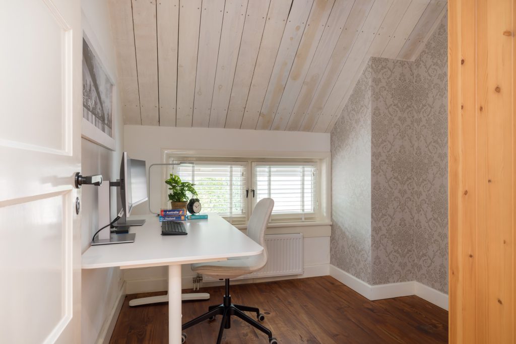 De vaste trap leidt naar de tweede verdieping, waar een lichte voorzolder en een vierde slaapkamer met dakkapel zijn gesitueerd. Deze verdieping biedt veel licht en ruimte, ideaal als logeerkamer, hobbyruimte of kantoor.