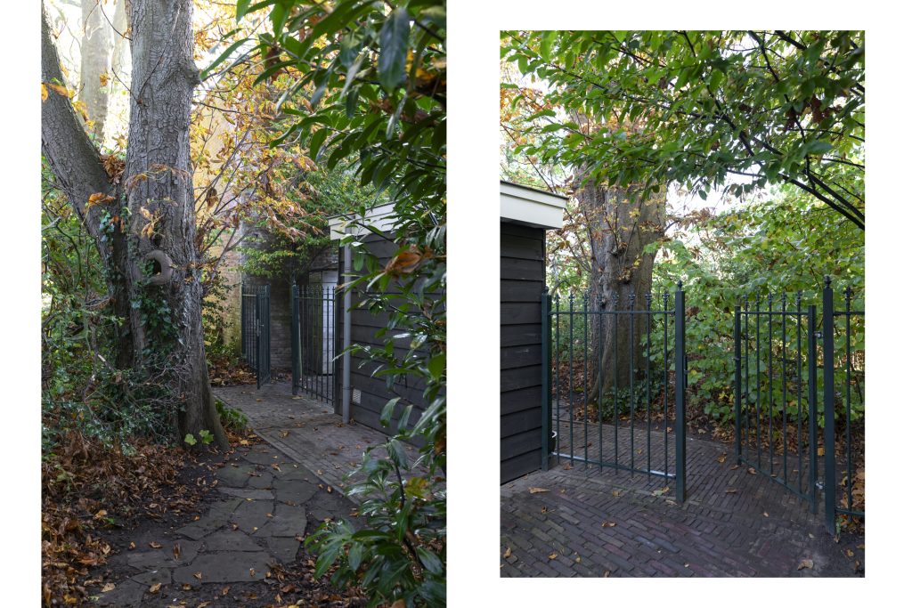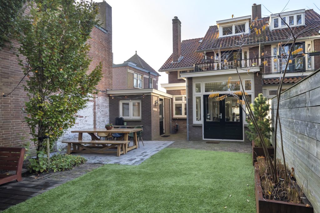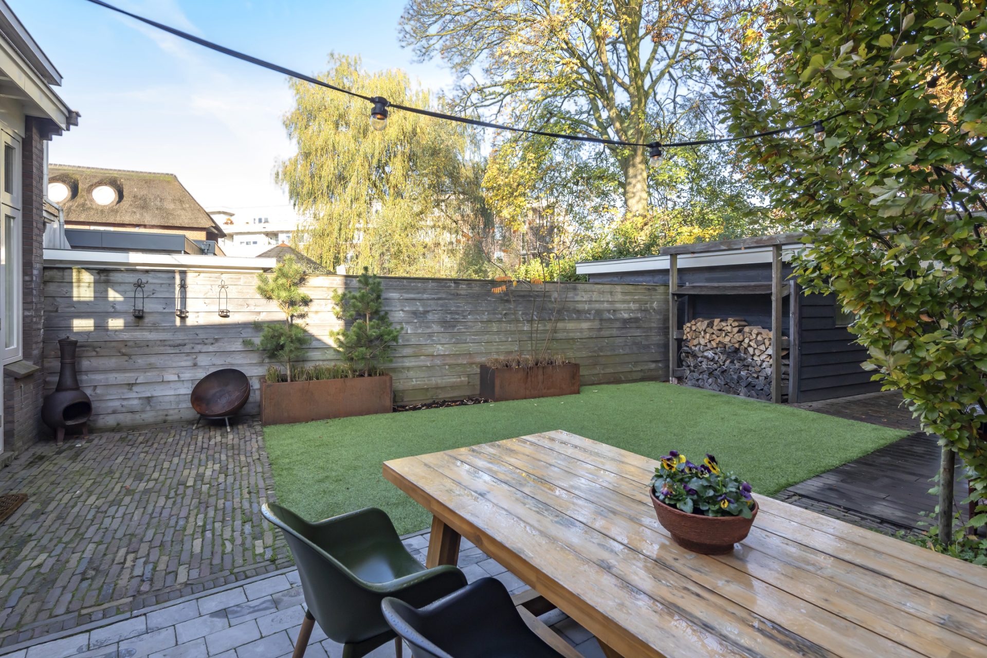 De achtertuin is geheel omsloten en biedt veel privacy, met een eigen achterom die leidt naar een charmant wandelgebied. Deze groene oase heeft meerdere gezellige zitplekjes en een vrijstaande houten berging voor opslag en tuingereedschap. De oprit naast de woning biedt ruimte voor parkeren op eigen terrein, wat bijdraagt aan het comfort van dit fijne familiehuis.