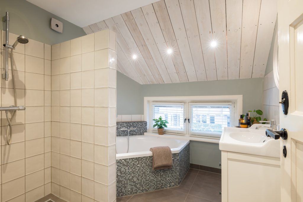 Op de eerste verdieping bevinden zich drie ruime slaapkamers, een separaat toilet en een luxueuze badkamer met een inloopdouche, hoekligbad en wastafelmeubel. De slaapkamers zijn ruim van opzet en bieden uitzicht op de groene omgeving.