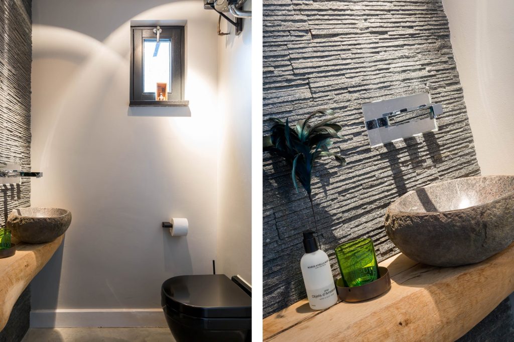 Vanuit en mooie werkkamer en vanuit de hal is het luxe gastentoilet te bereiken.