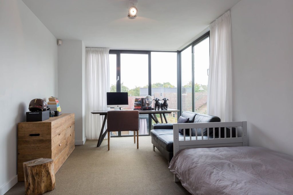 Niet alleen op de begane grond maar ook op de eerste verdieping is de woning tijdens de renovatie in 2014 fors vergroot. Vanaf een centrale overloop, waar grote ramen voor veel lichtinval zorgen zijn alle ruimtes op deze verdieping te bereiken.