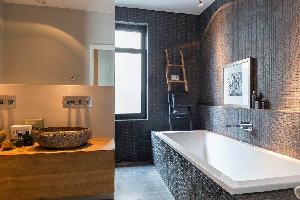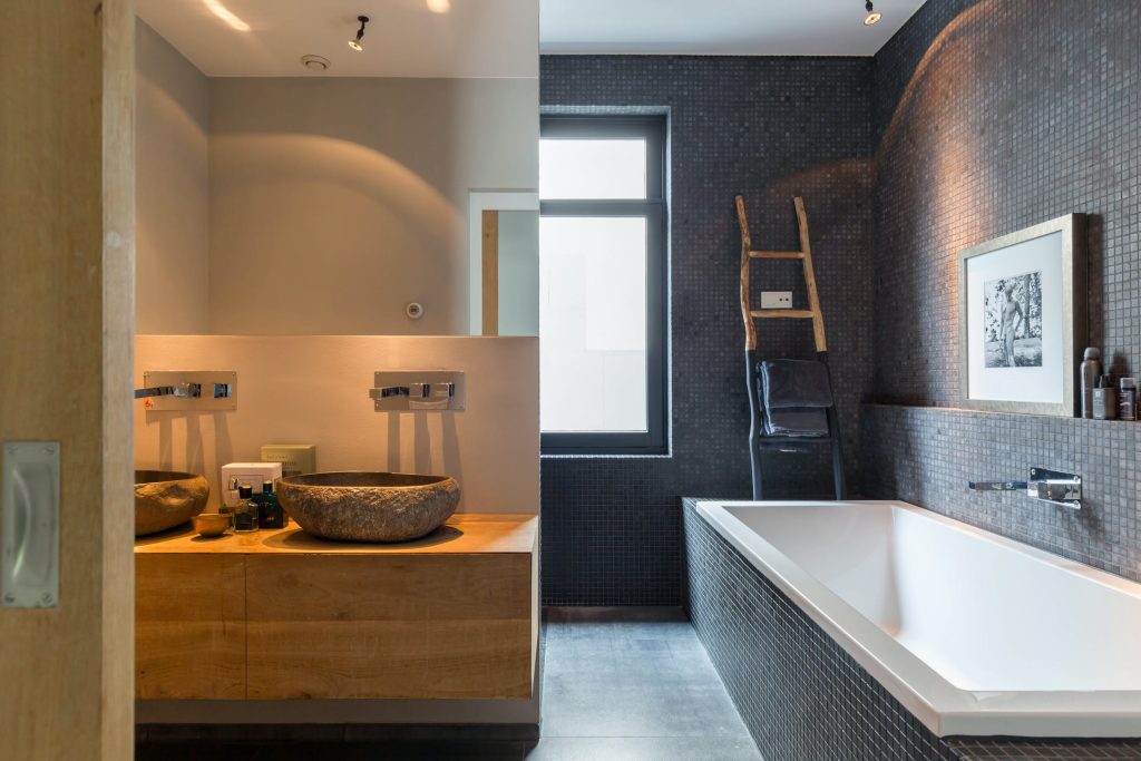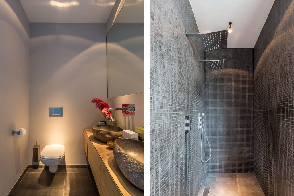 Op de overloop bevinden zich verder nog een wasruimte en een badkamer. In de badkamer is gekozen voor ongekend veel luxe. De waskommen, wandkranen en wastafelmeubel vormen een smaakvol geheel en verder is deze badkamer voorzien van een tweede toilet, diep ligbad en dubbele douche.
