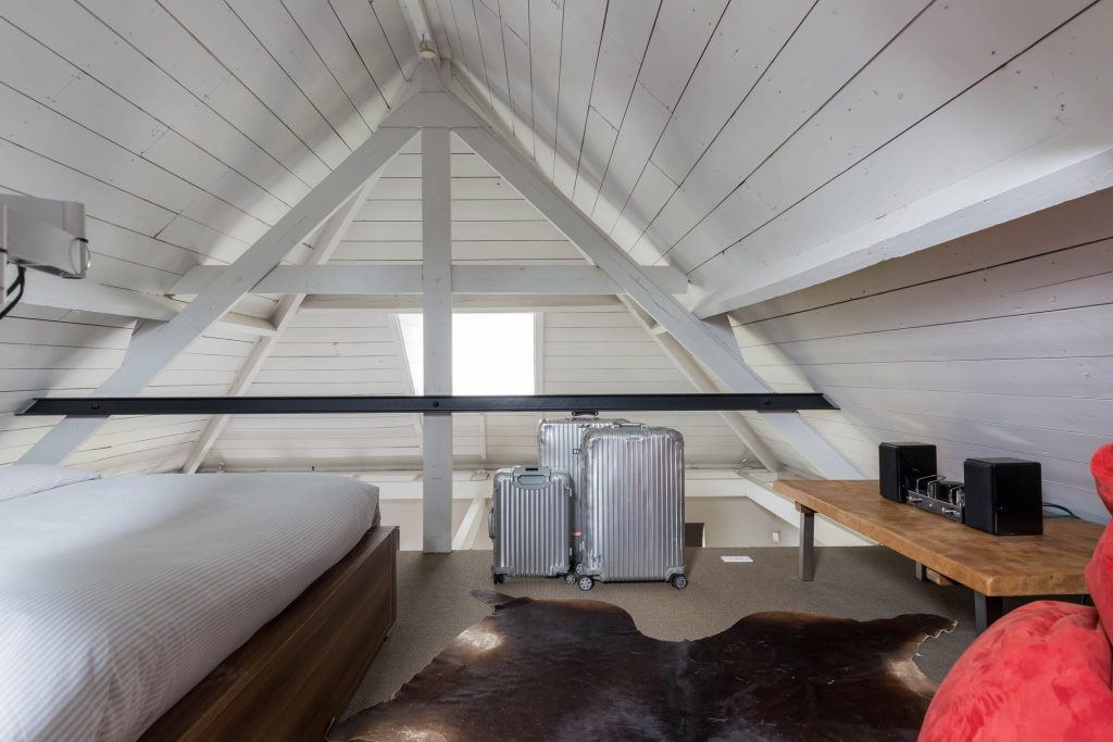 Een vaste trap leidt naar de zolder. Deze is momenteel in gebruik als logeerkamer en bergruimte. Deze ruimte staat momenteel nog via een balustrade in open verbinding met de master-bedroom maar dit kan op eenvoudige wijze worden afgescheiden zodat er een vierde slaapkamer ontstaat. De fraaie houten kapconstructie, de hoge nok en de grote dakramen zorgen voor een fijne sfeer zodat deze ruimte ook gebruikt kan worden als studeerkamer of atelier.