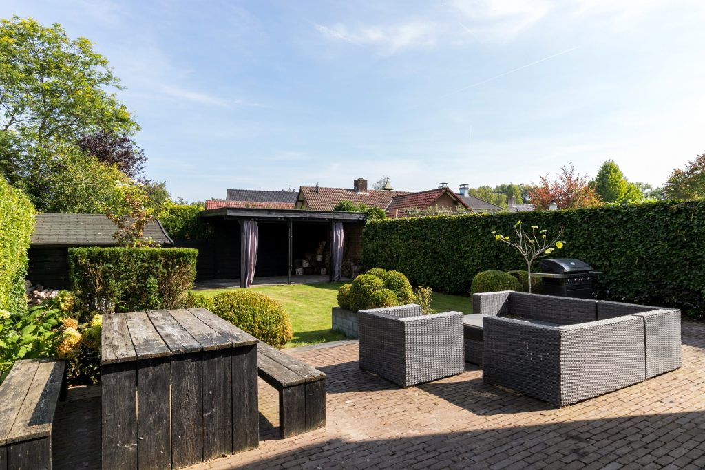 De villa staat op een mooi rechthoekig perceel aan de Gemullehoekenweg. Aan de voorzijde is parkeergelegenheid op eigen terrein voor twee auto’s. Middels de oprit aan de linkerzijkant (recht van overpad) heeft u via een grote poort toegang tot de achtertuin. Zo bereikt u met uw auto de grote carport in de achtertuin. In de achtertuin staat naast de grote carport nog een houten tuinberging voor fietsen en tuingereedschap.