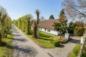 Tussen de voormalige woonboerderij en het bijgebouw ziet u het binnenhof, te bereiken via een brede oprit met een openslaande poort. Aan de straatzijde zie u een tuin die qua stijl uitstekend past bij de 18e eeuwse hoeve. Aan de rechterzijde van Hoeve Genraai is een groot parkeerterrein met buitenverlichting.