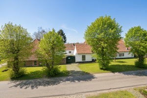 Via het parkeerterrein en de oprit loopt u naar de entree van de voormalige woonboerderij. Vanuit de lange hal over twee niveaus zijn 7 werk-, spreek- en behandelruimtes te bereiken, die op eenvoudige wijze kunnen worden verbouwd tot bijvoorbeeld slaapkamer. Aan de rechterzijde is de zeer ruime woonkamer met een hoog balkenplafond, haardpartij, visgraat houten vloer en eikenhouten gebinten. Deze ruimte is thans ingericht als wachtruimte en heeft veel lichtinval door de grote ramen.
