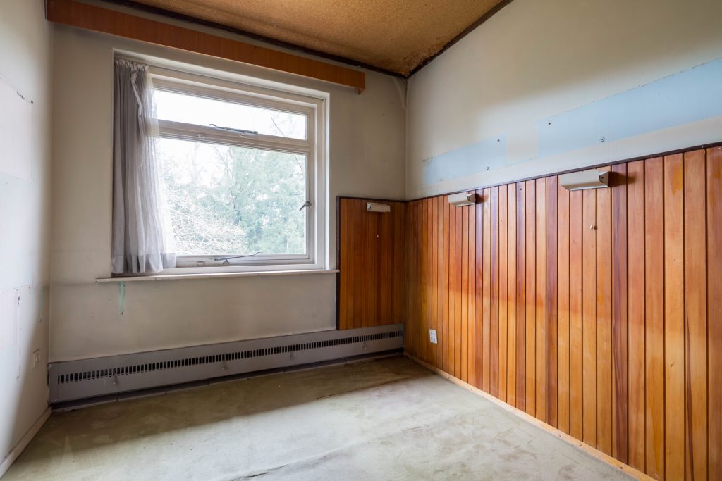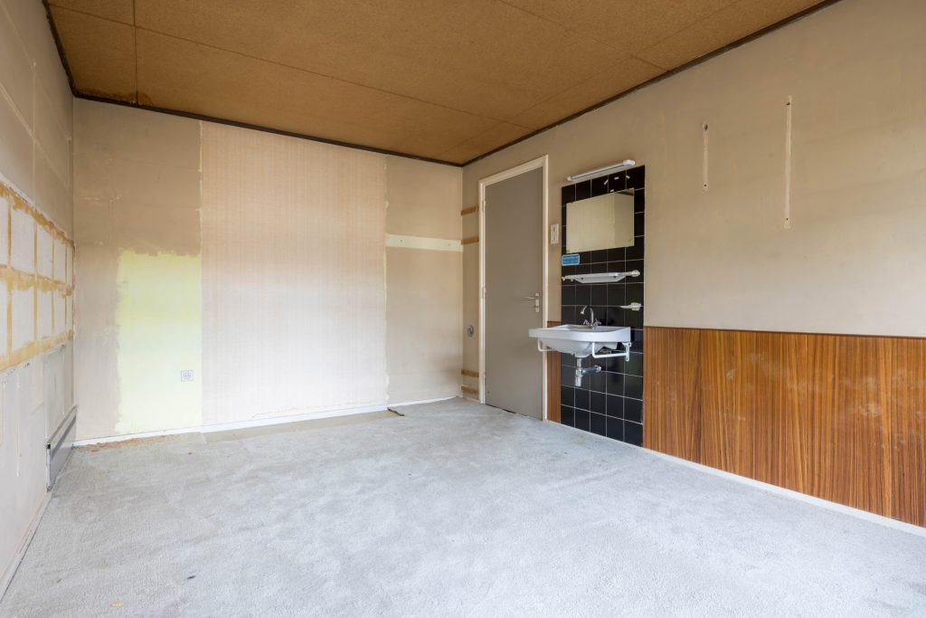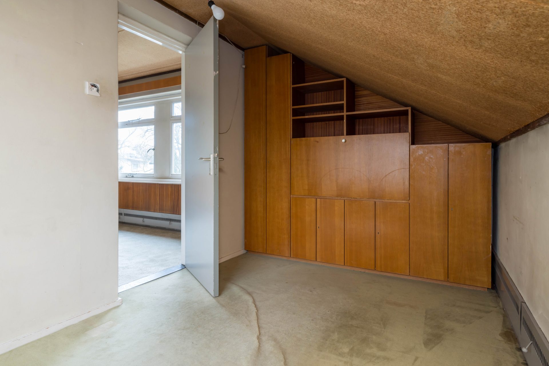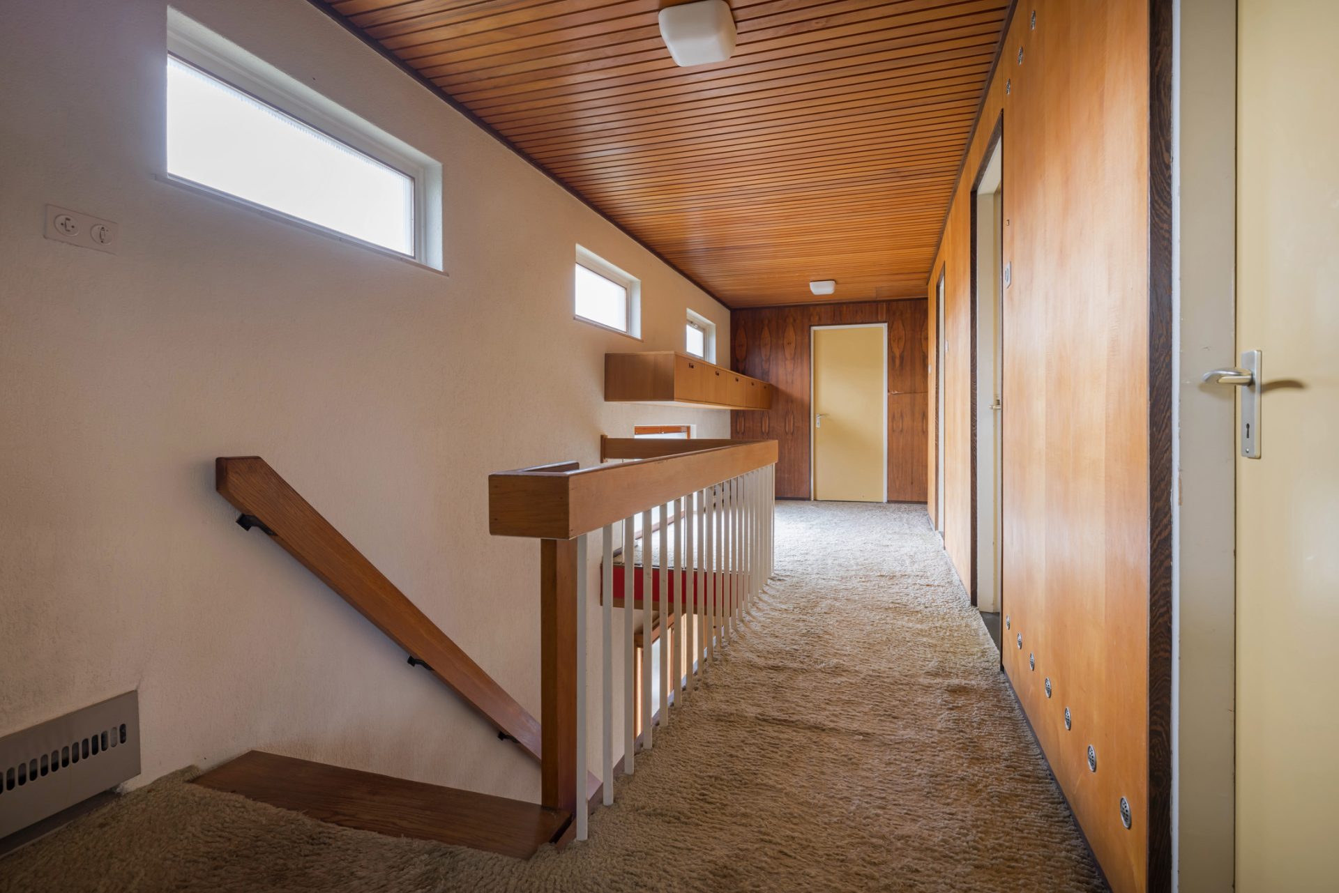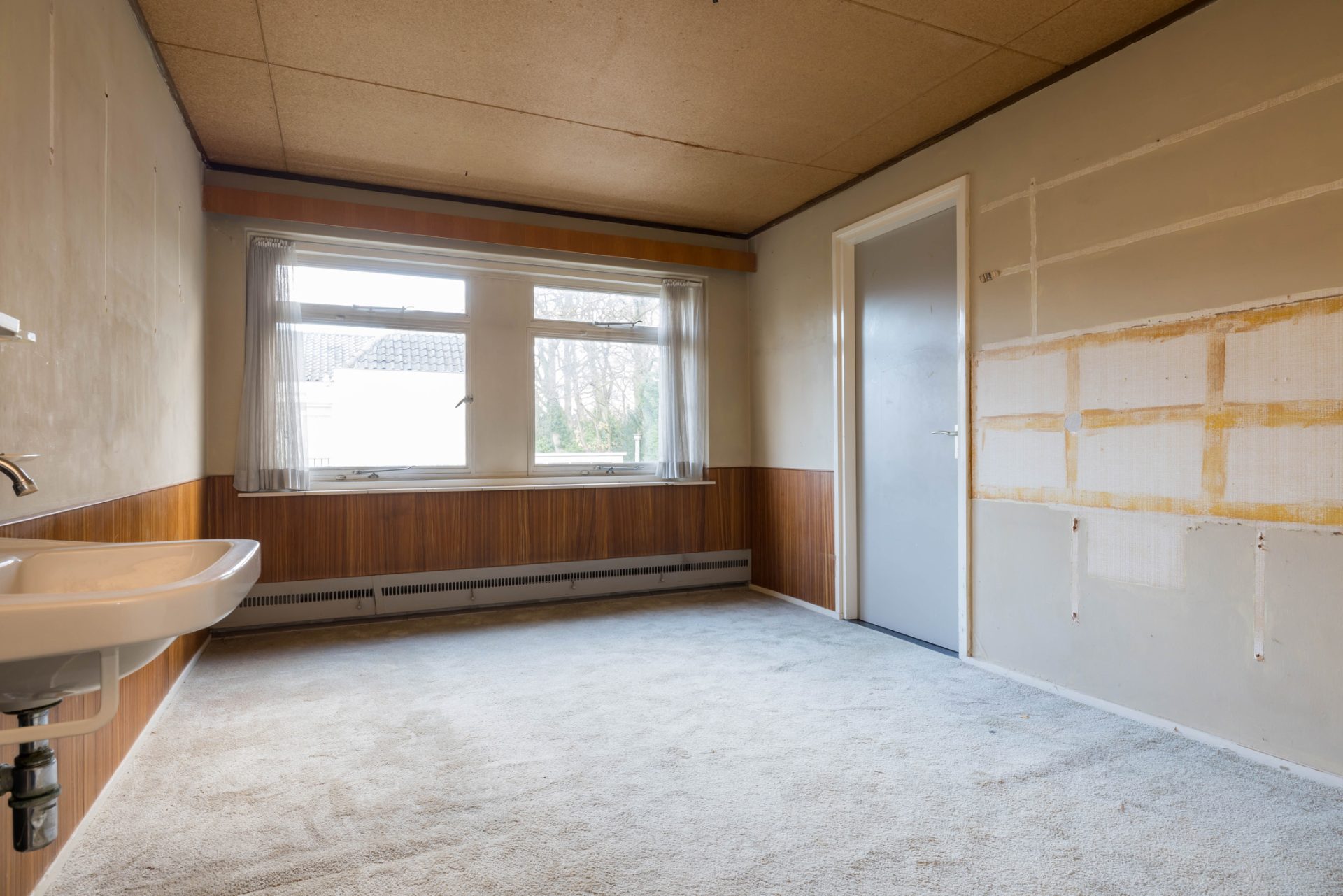 Via het eetgedeelte is de lichte keuken te bereiken, die grenst aan het portaal naar de tuin en een berging/provisieruimte. De jaren ’60 keukenopstelling heeft de kwalificatie ‘retro’, waardoor je de kans hebt om hier een droomkeuken naar eigen smaak te realiseren.