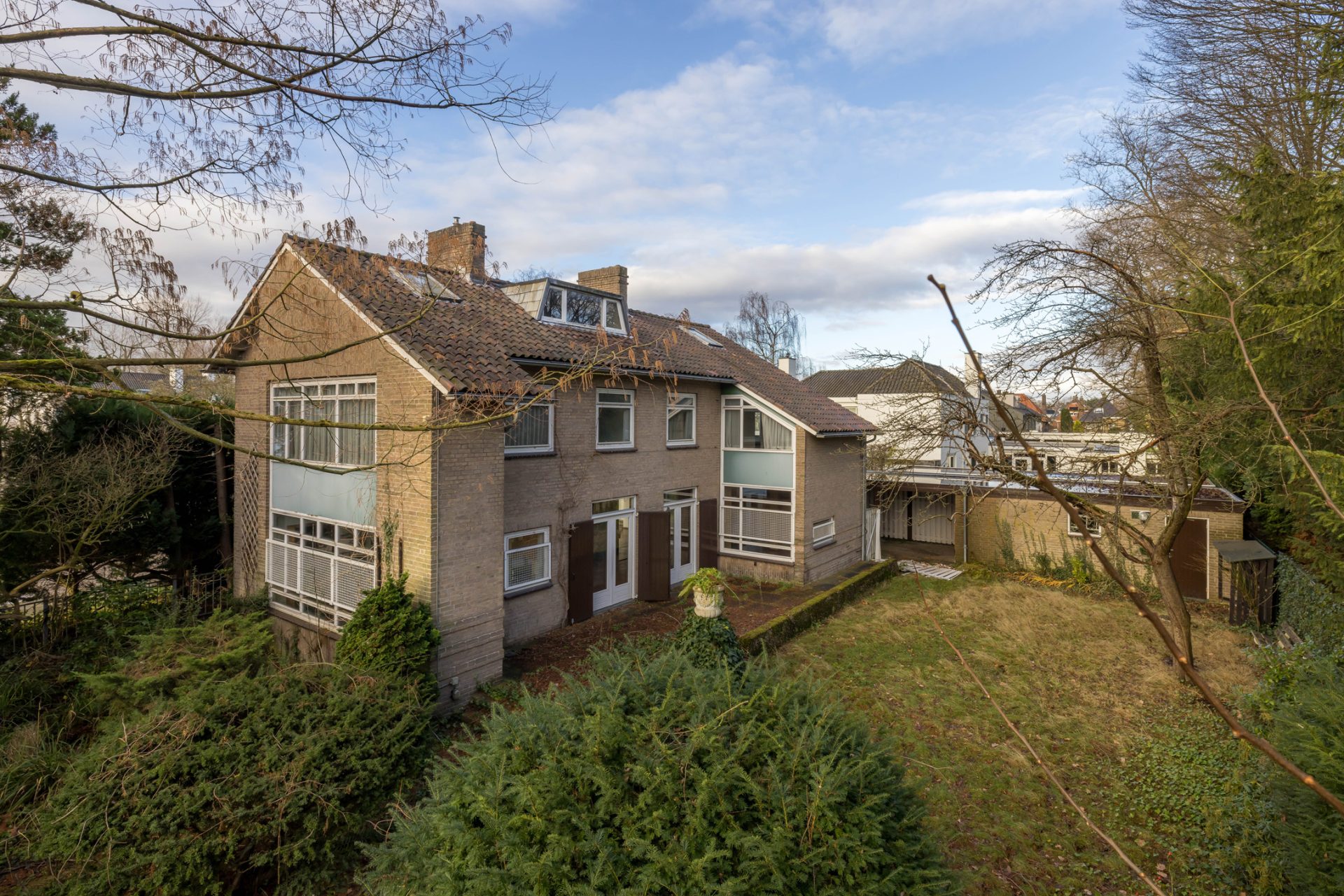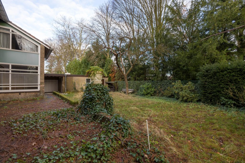 Het woonhuis wordt omringd door een ruime tuin met parkeergelegenheid op eigen terrein en een grote mate van privacy. De achtertuin is gesitueerd op het oosten en aan het einde van de oprit bevindt zich de garage met carport.