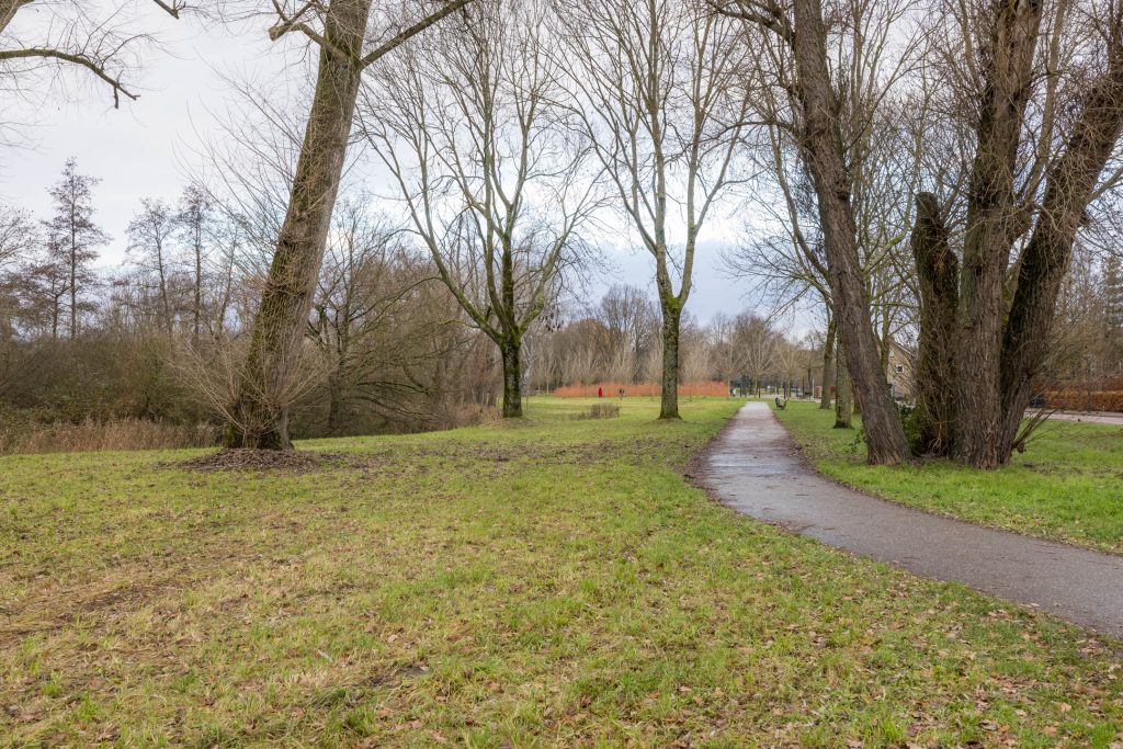 Aan de voorzijde kijk je, via de Spieghelstraat, richting de Genneper Parken en aan de achterzijde grenst het perceel aan een tuin met hoge bomen.