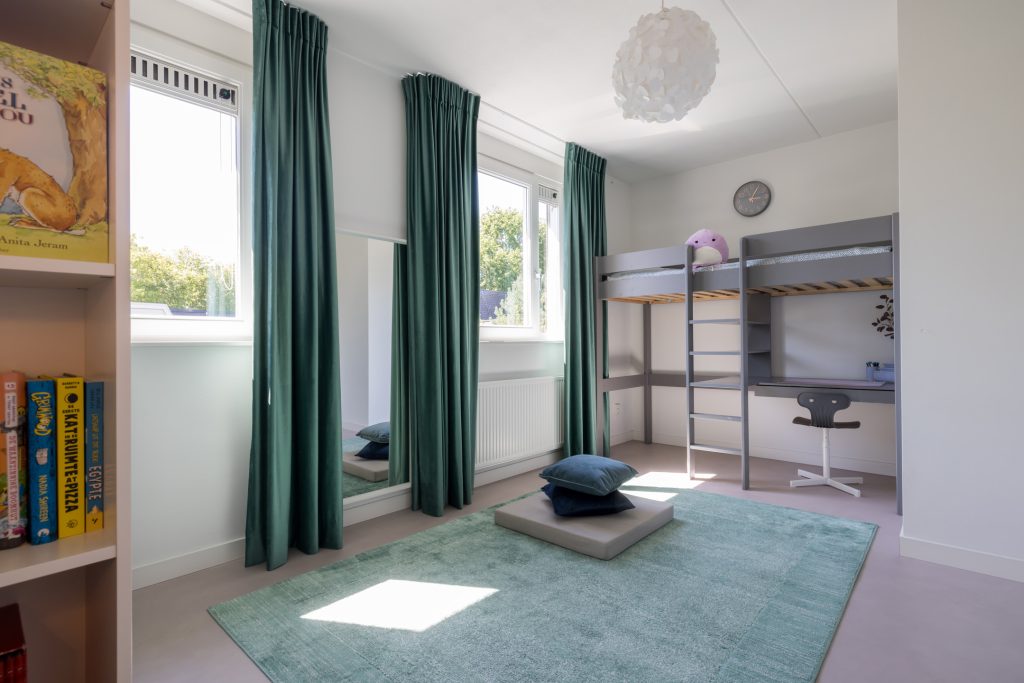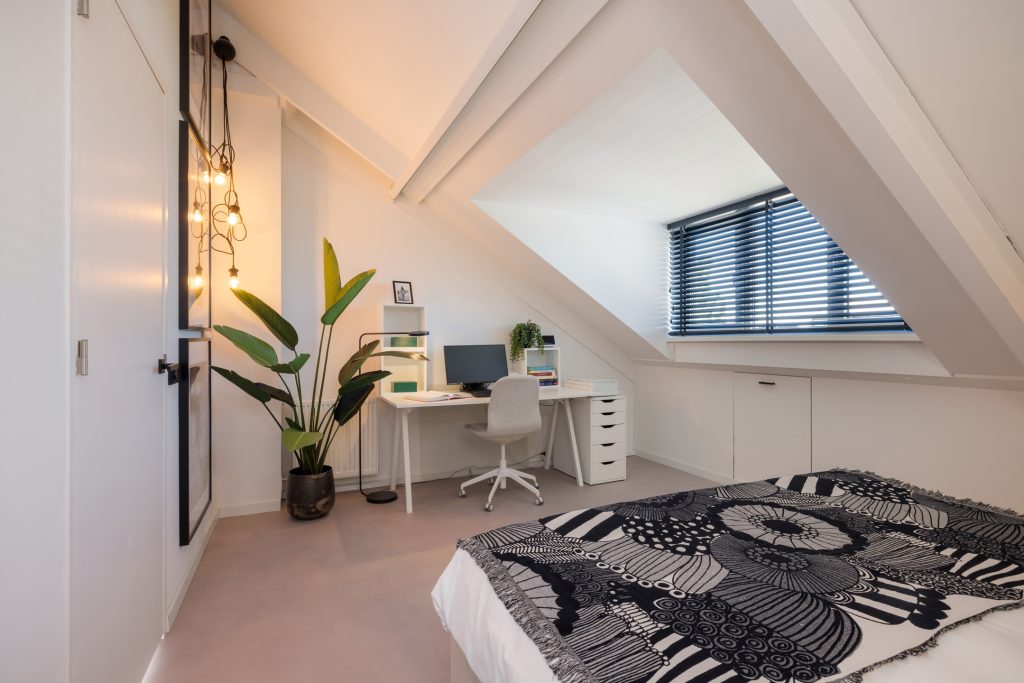 Er zijn drie slaapkamers op deze verdieping; twee aan de voorzijde en een aan de achterzijde. Een van de slaapkamers aan de voorzijde wordt nu als kleedruimte gebruikt, maar is ook heel geschikt als kinderkamer of werkruimte.