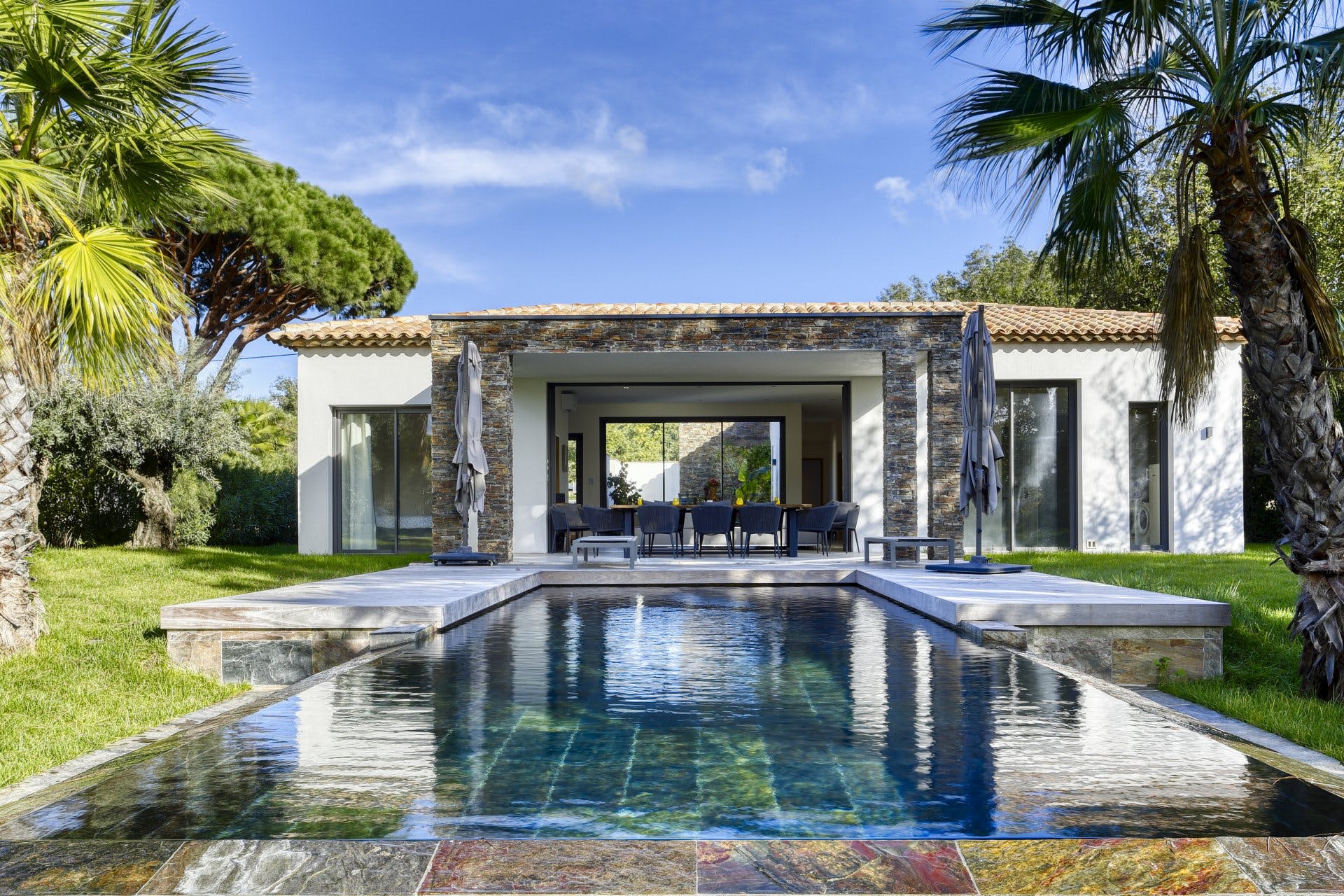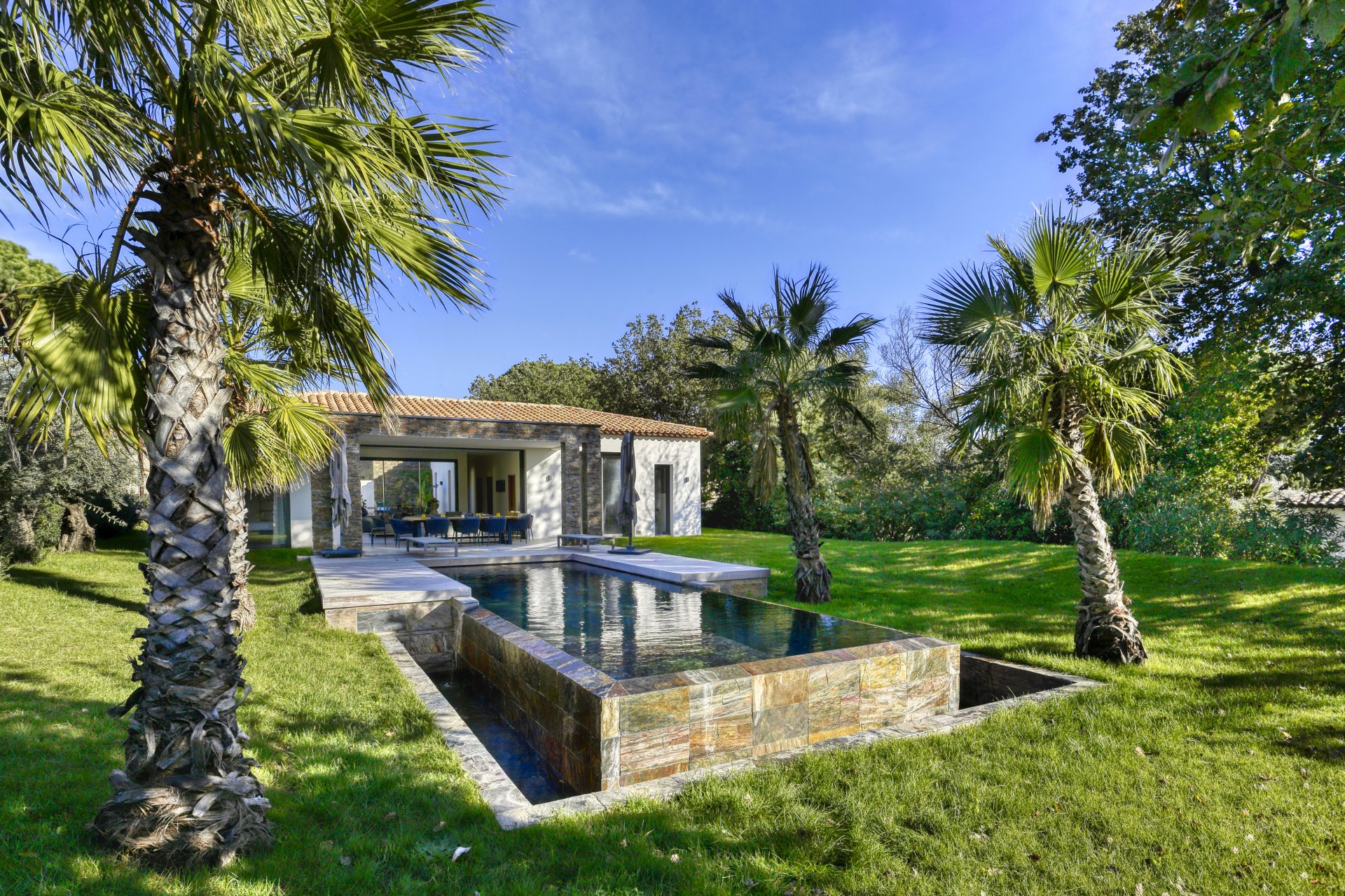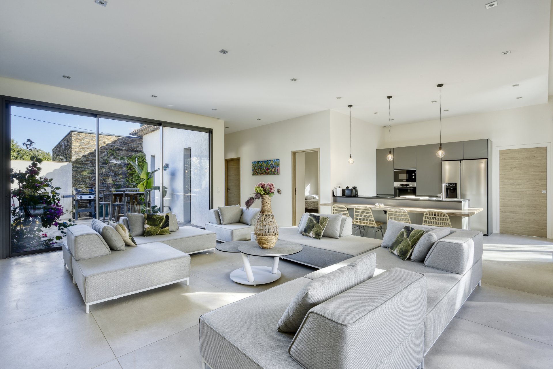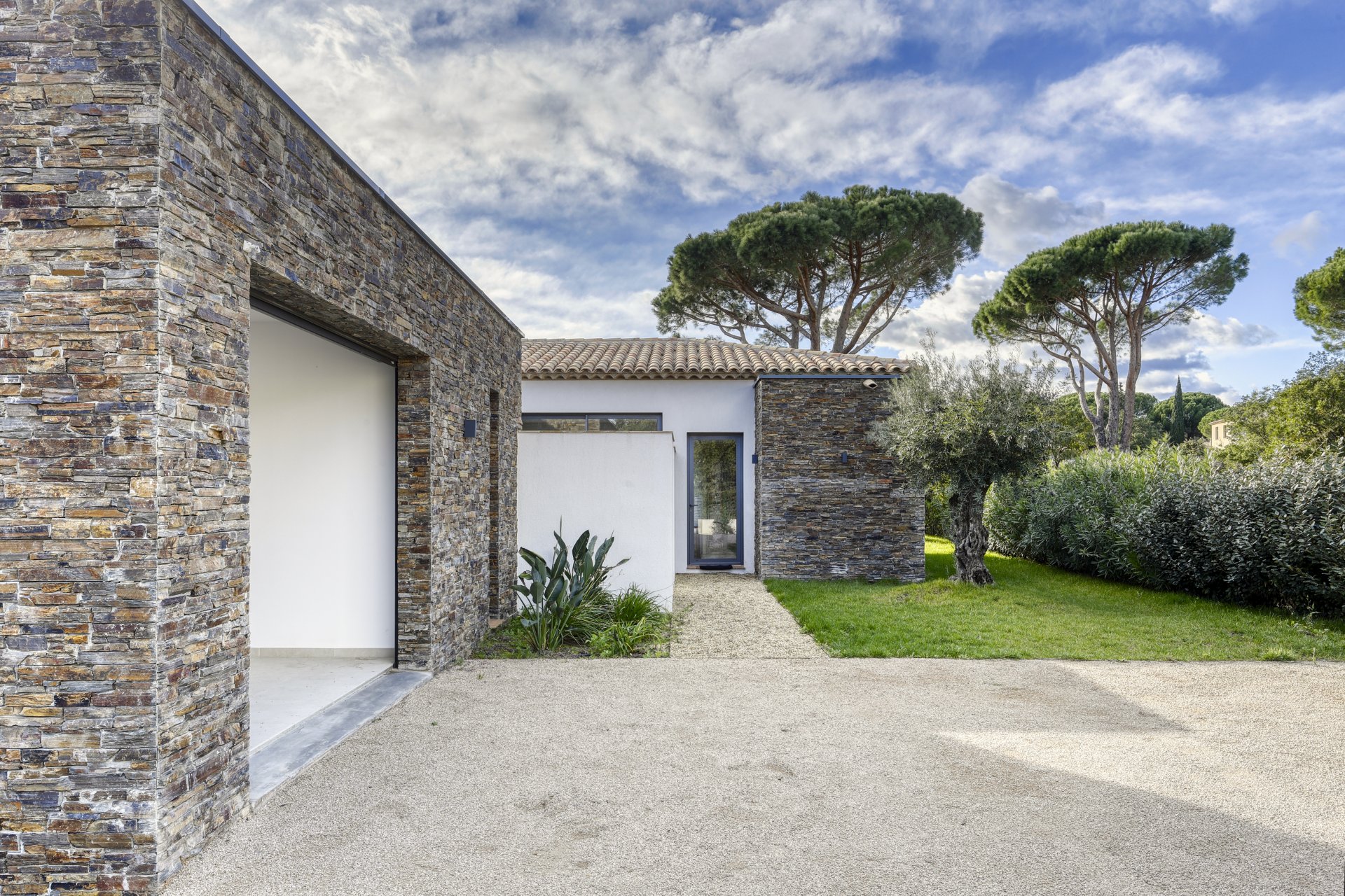 Deze hedendaagse woning gebouwd in 2021 is ideaal gelegen op enkele minuten van de stranden en het dorp Grimaud aan de Golfe de Saint-Topez.