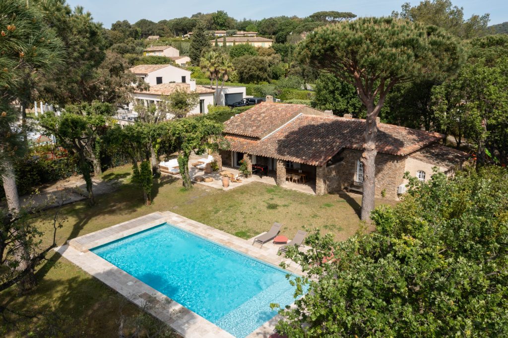 In een beveiligd en luxe domein, gelegen nabij het dorp en de stranden (toegang zonder files!) staat deze prachtig Provençaalse villa, opgetrokken uit natuursteen, van +/- 250 m².