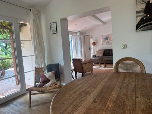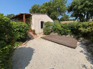 Deze hoekwoning met privé-tuin ligt op een beveiligd domein op enkele passen van het strand én de golf de Beauvallon Grimaud. Het domein beschikt over ruime parkeergelegenheid en een gemeenschappelijk zwembad met zeezicht. De zee ligt op loopafstand. Bewoners van het domein hebben toegang tot een gedeeld privestrand. Hier kunt u heerlijk genieten van de zee.