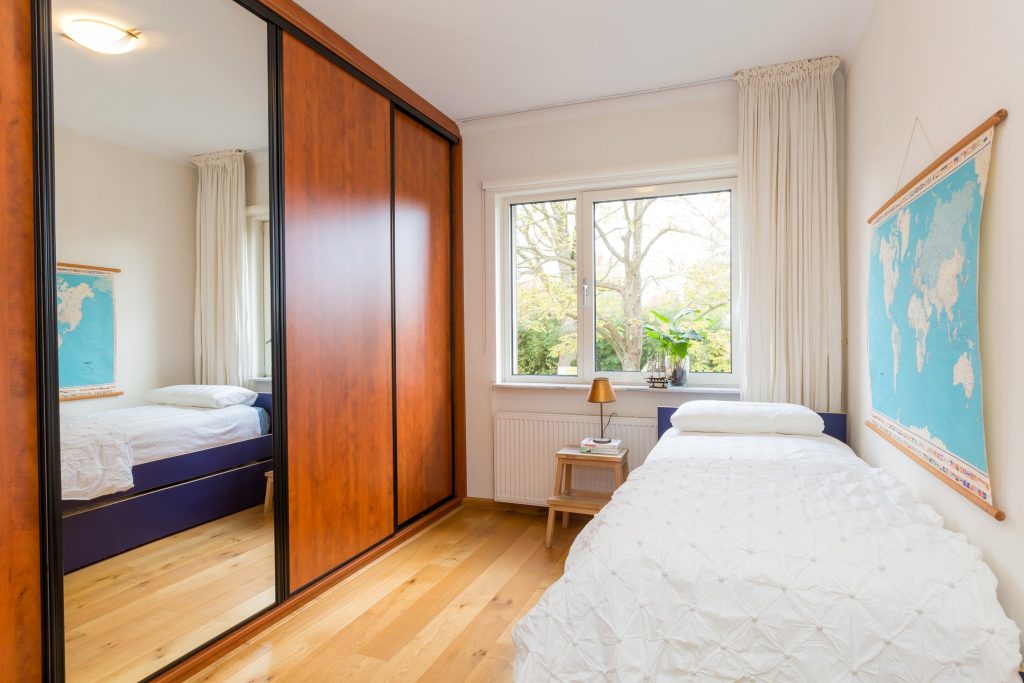 De drie slaapkamers komen uit op de hal. De master-bedroom met balkon heeft een badkamer met ligbad, ruime douche, toilet en dubbele wastafel met onderkasten.