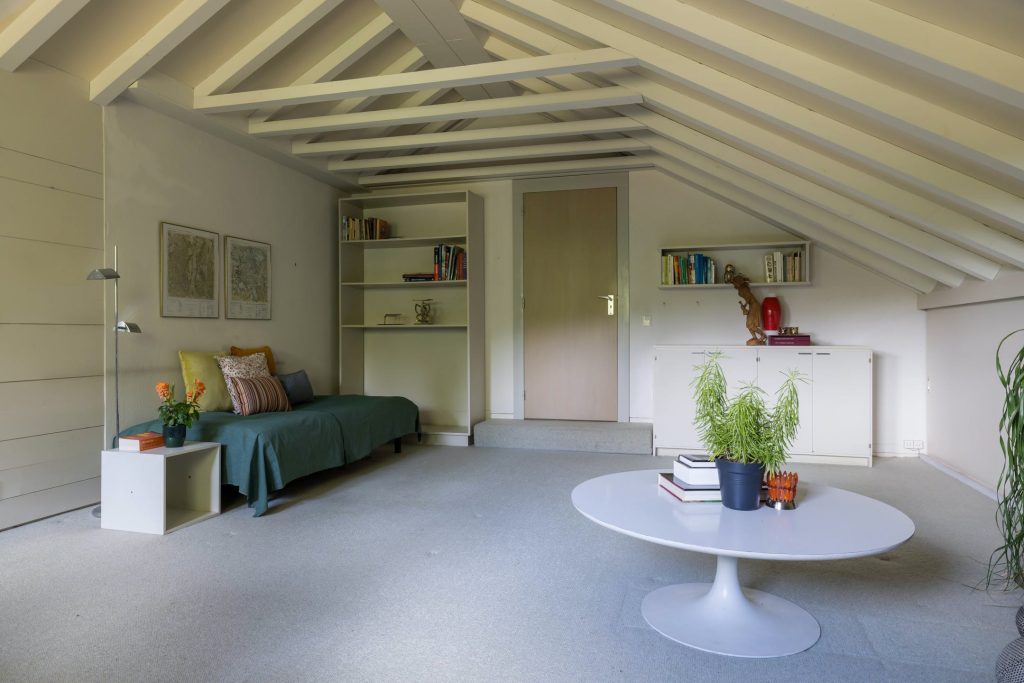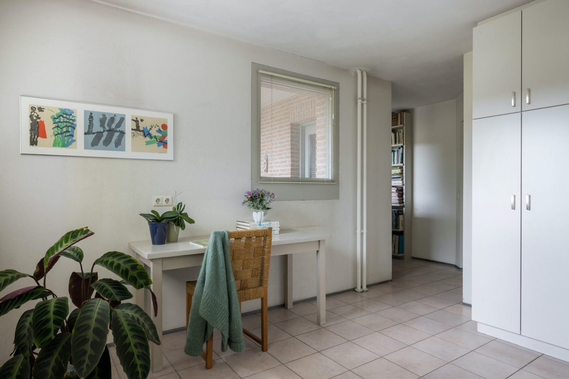 Op de eerste verdieping bevinden zich vier ruime kamers. Drie hiervan zijn in gebruik als slaapkamer, maar zijn net als de grote vierde kamer uitstekend geschikt als comfortabele werkruimte. De grote badkamer grenst aan de slaapkamer en is voorzien van een inloopdouche, twee wastafels en een toilet.