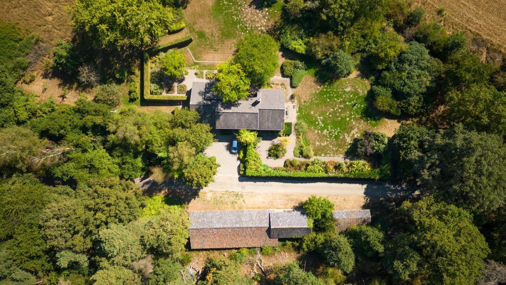 Dieses große Nebengebäude hat eine Grundfläche von fast 230 m², von denen über 170 m² als offene Scheune für die Lagerung von Holz und die Unterbringung eines Traktors genutzt werden. Der zweite Teil ist eine fast 10 Meter breite geschlossene Scheune.