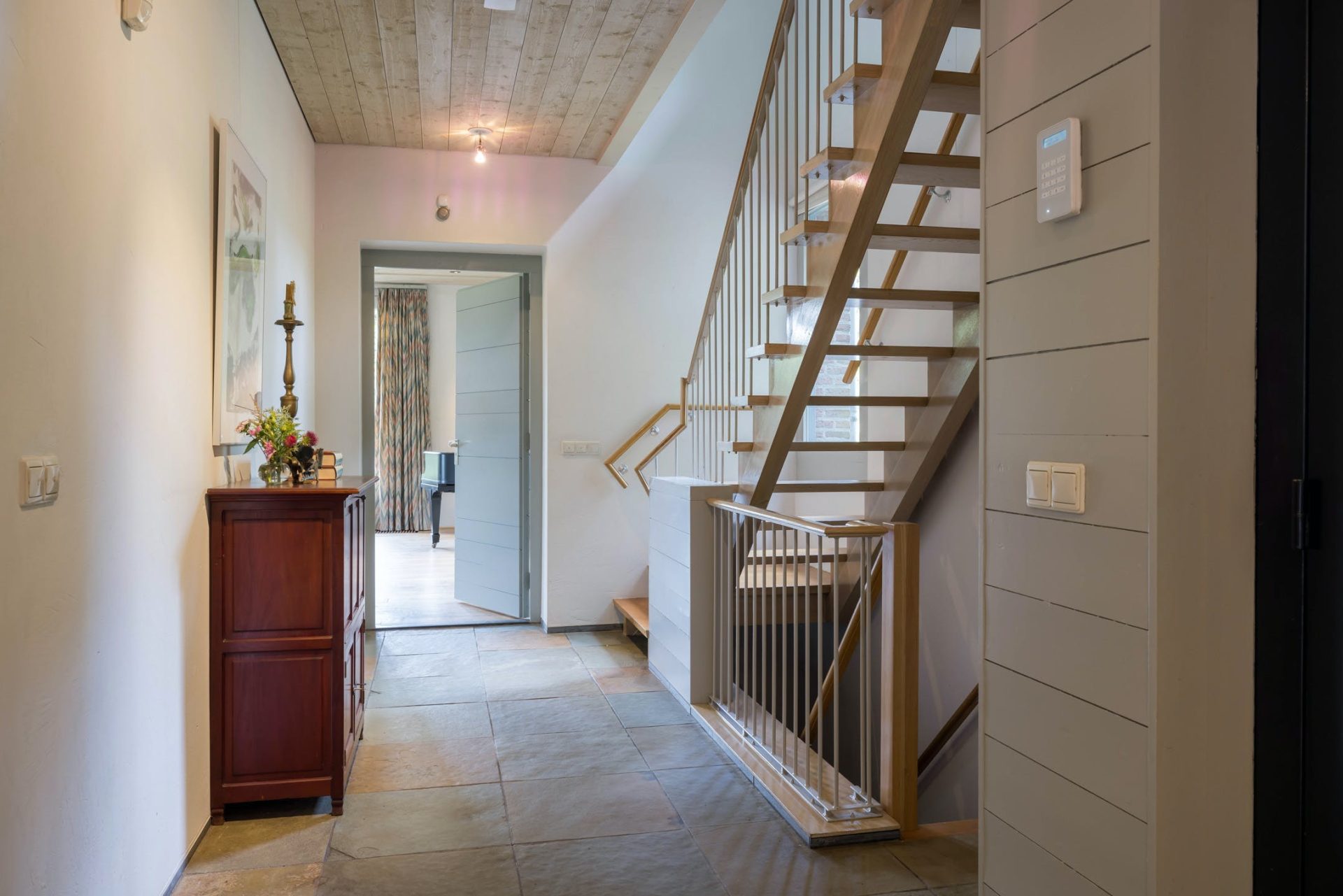 Het landhuis staat enigszins verlegen verscholen achter het groen. Echter zodra u in de hal staat, ziet u de prachtige materialen in warme kleuren die zorgen voor een unieke sfeer. Het trappenhuis verbindt de begane grond met de wijn-/provisiekelder en met de slaapverdieping.