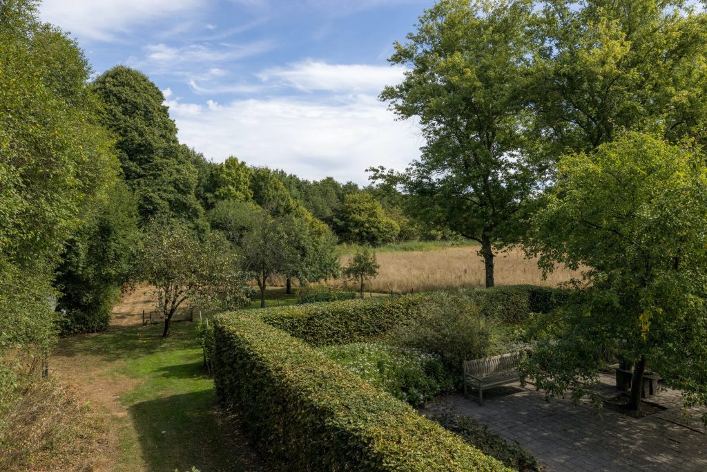 Rondom het landhuis ligt een mooi aangelegde siertuin met rijkbloeiende borders en vijvers, die is ontworpen en aangelegd door de tuinarchitecte Mien Ruys. Er zijn diverse terrassen met elk een eigen sfeer en uitzicht, waar u zich afhankelijk uw stemming of het weer kunt terugtrekken. Hoge hagen en een oude muur bieden veel beschutting, door de vrije ligging is privacy hier vanzelfsprekend.De tuin loopt over in een boomgaard met appel- en pruimenbomen en bessenstruiken, een uitgelezen plek om een grote moestuin aan te leggen.En of u zich nu terugtrekt met een drankje, een boek of met vrienden onder het overdekte terras, de pergola of het schaduwrijke terras onder de bomen, overal geniet u hier van het fabelachtige uitzicht over uw eigen landgoed. Waar u ook zit, u realiseert zich dat dit een unieke en bevoorrechte plek is die in Nederland zeer zeldzaam is.