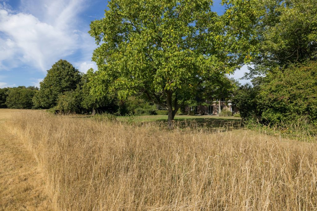 Der Garten geht in einen Obstgarten mit Apfel- und Pflaumenbäumen und Beerensträuchern über, ein idealer Ort, um einen großen Gemüsegarten anzulegen.
