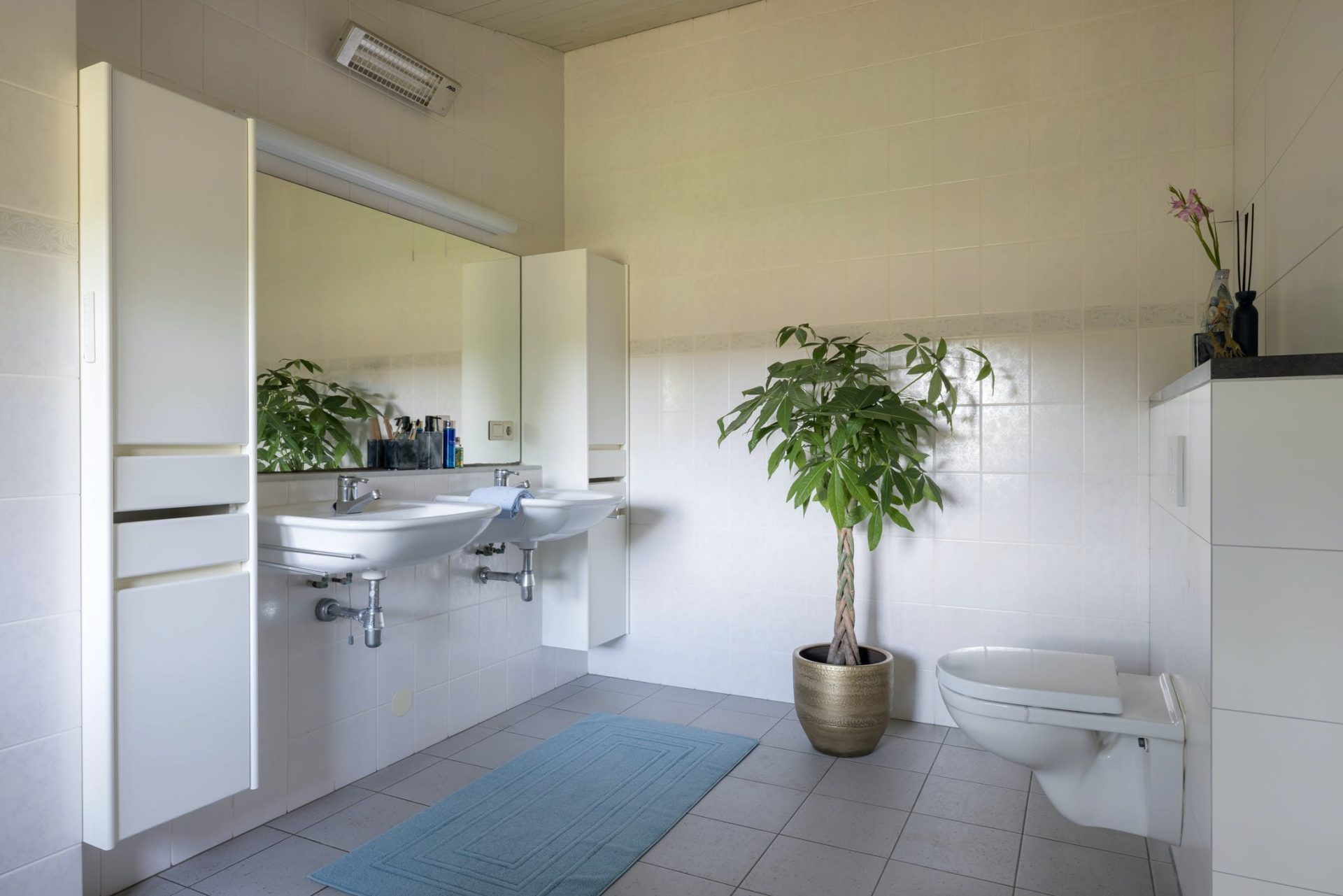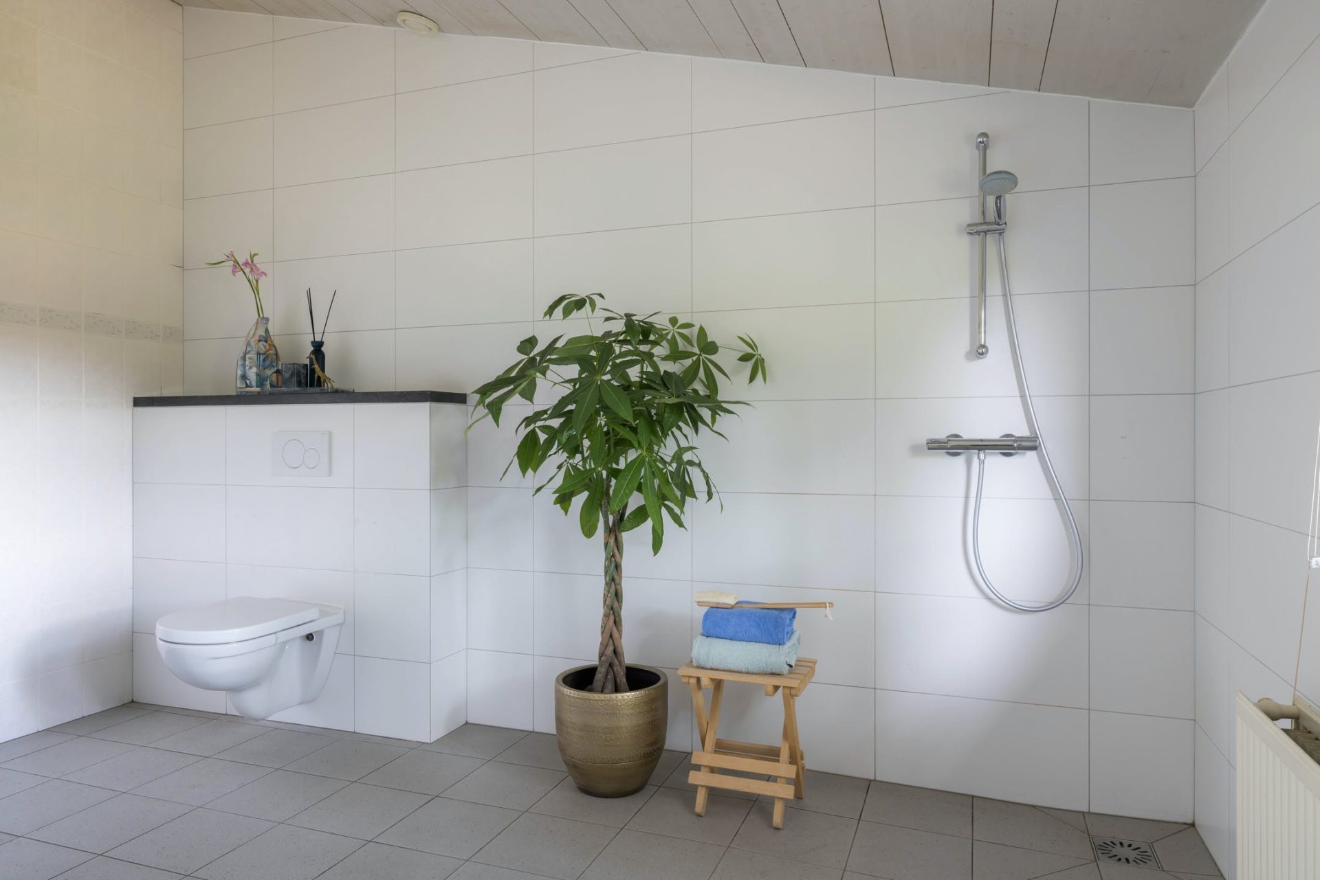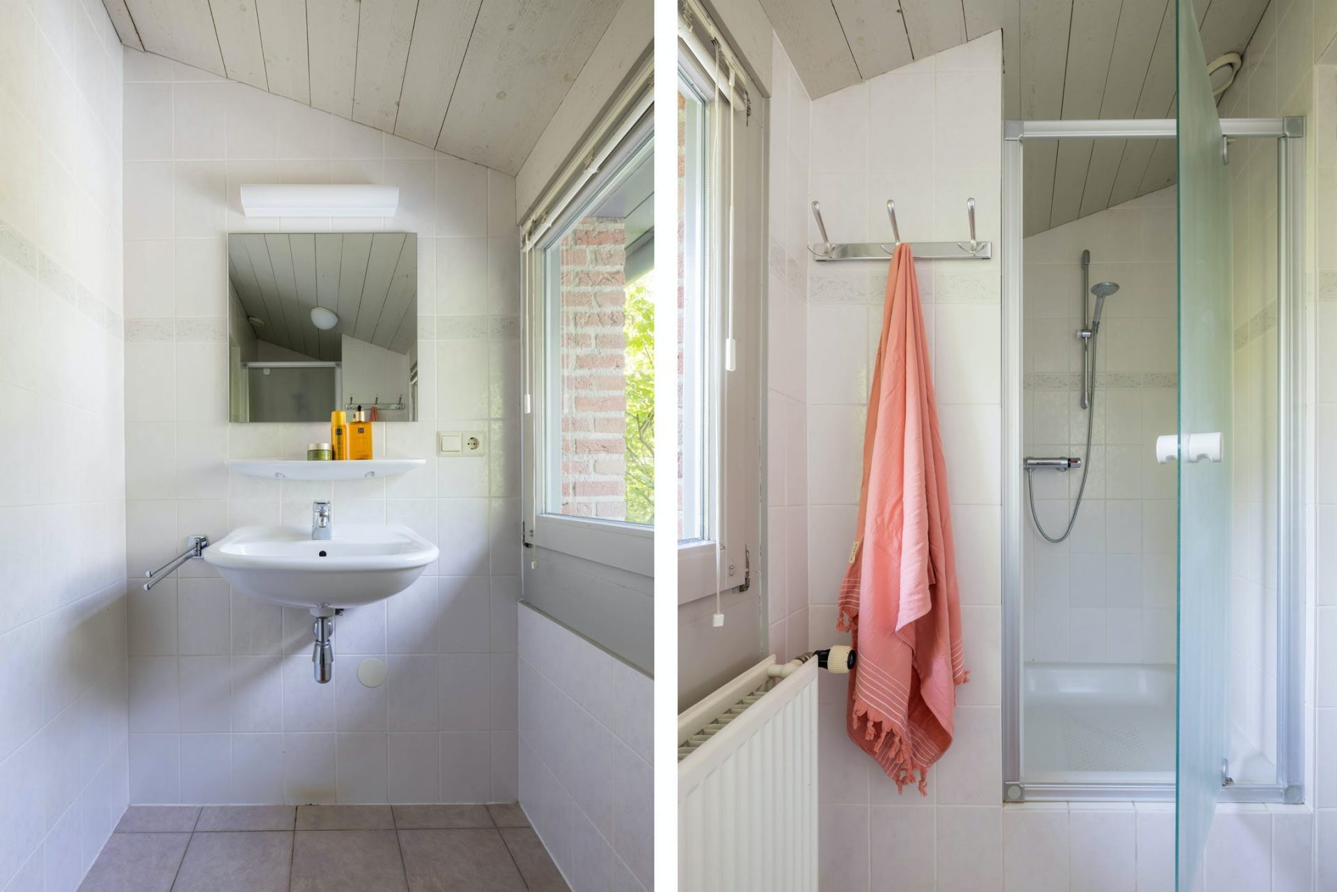 De tweede badkamer is voorzien van een douche en een wastafel. Verder zijn er op deze verdieping een aparte toiletruimte en twee ruime bergingen.