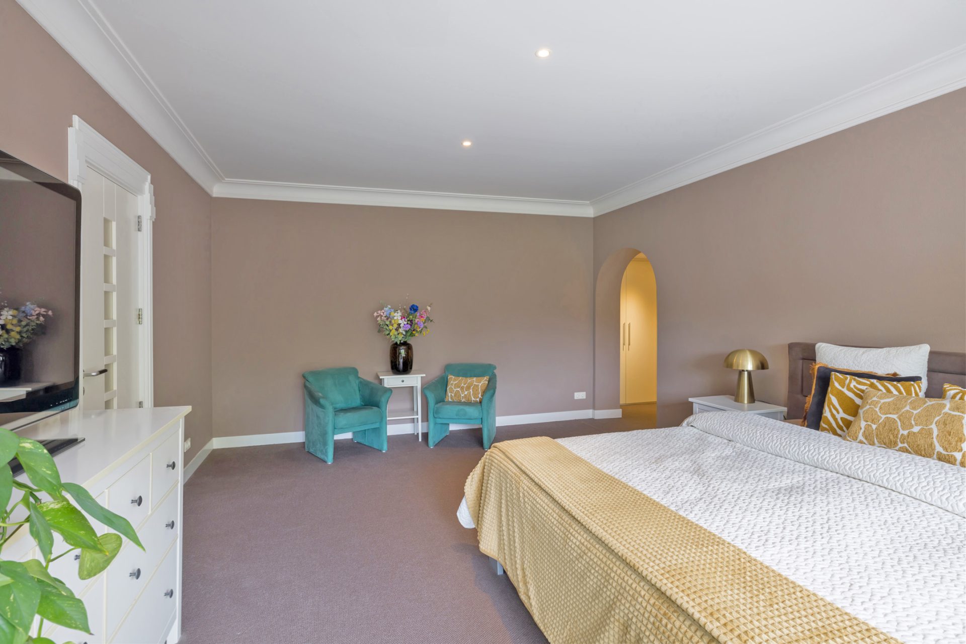 Volg de prachtige trap naar de overloop, waaraan vier royale slaapkamers grenzen. Aan de linker achterzijde is de master bedroom met een balkon en een inloopkast, waar u aan drie kanten wordt omringd door op maat gemaakte kasten.
