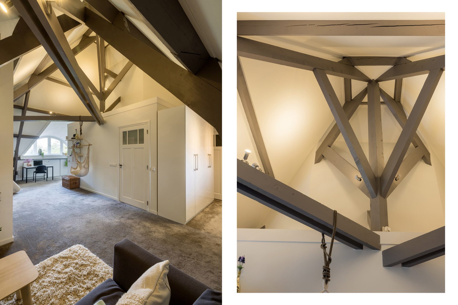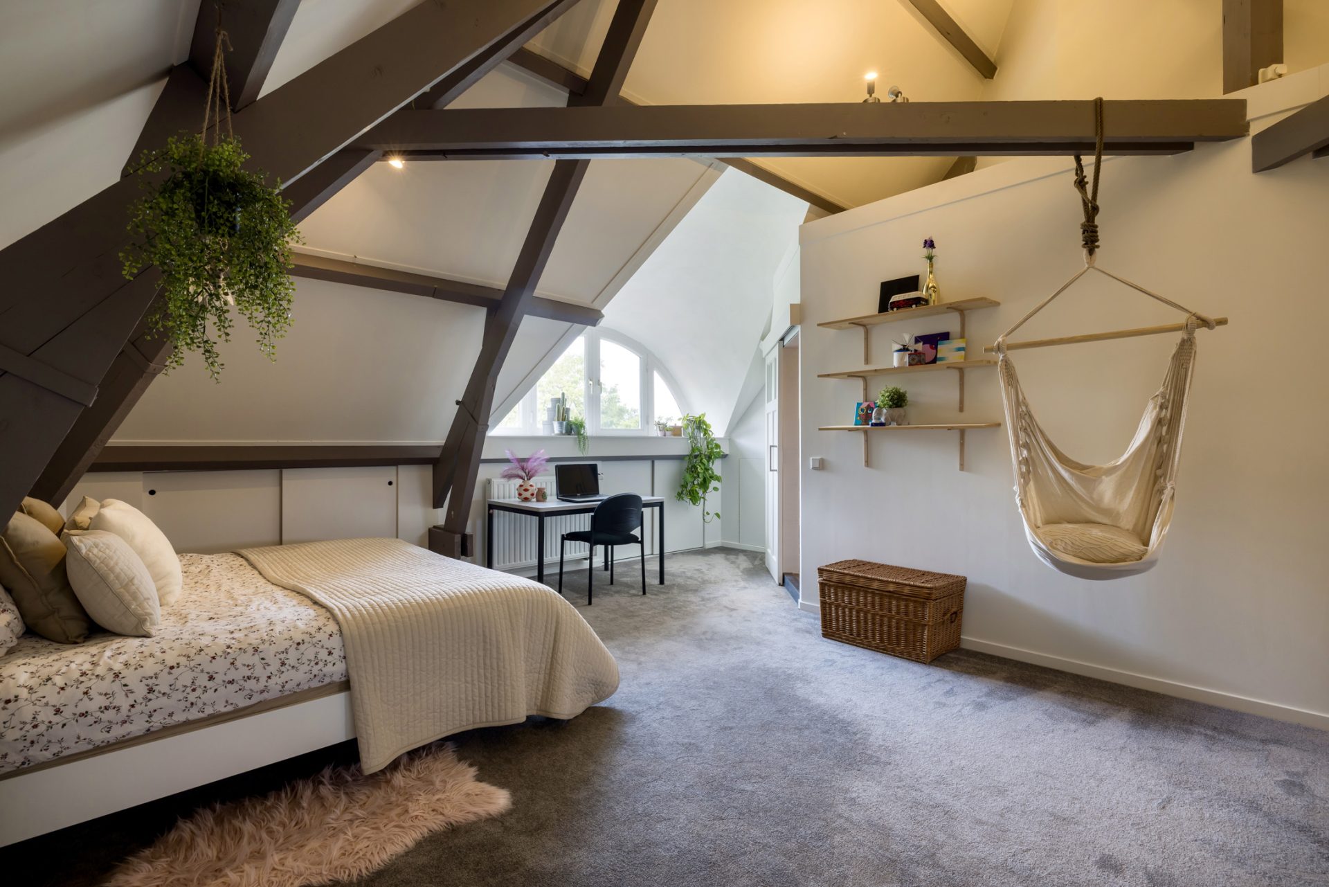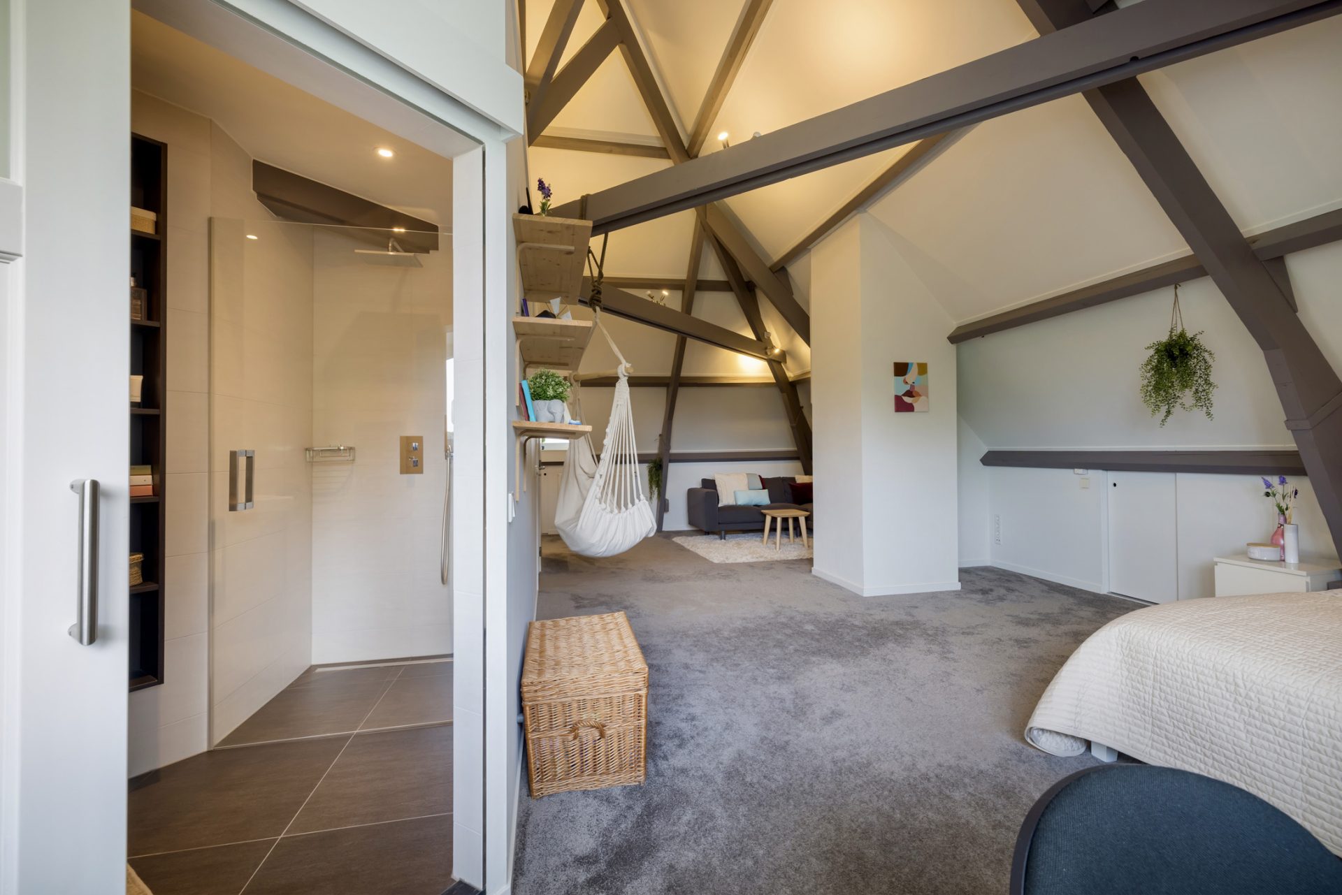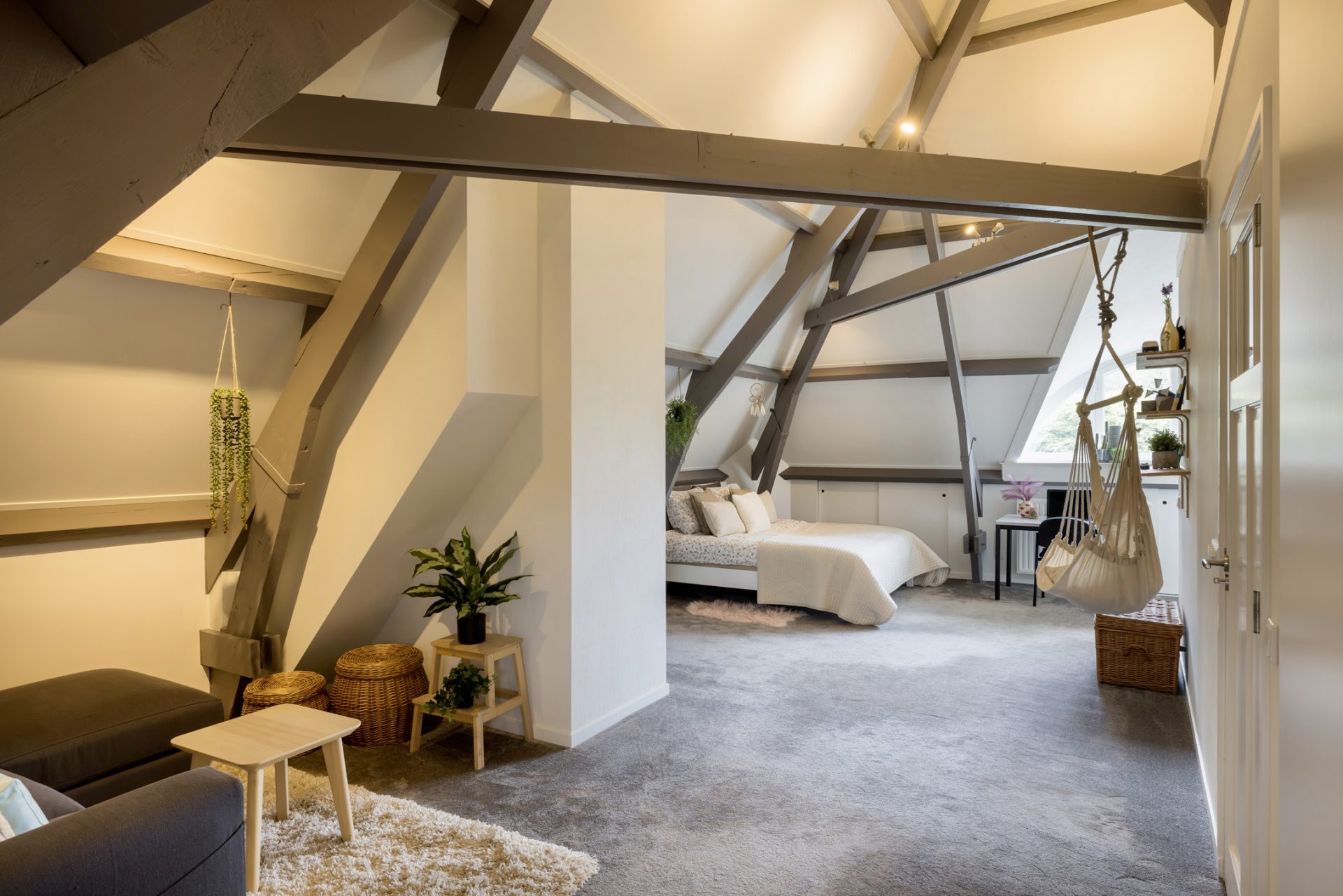 Onder het enorme, schuine dak zijn nog twee riante woon/slaapkamers met vides en twee badkamers. Deze etage is perfect voor thuiswonende kinderen of voor familie of vrienden, die bij u op bezoek komen en graag meerdere dagen willen genieten van villa ‘De Roskam’.