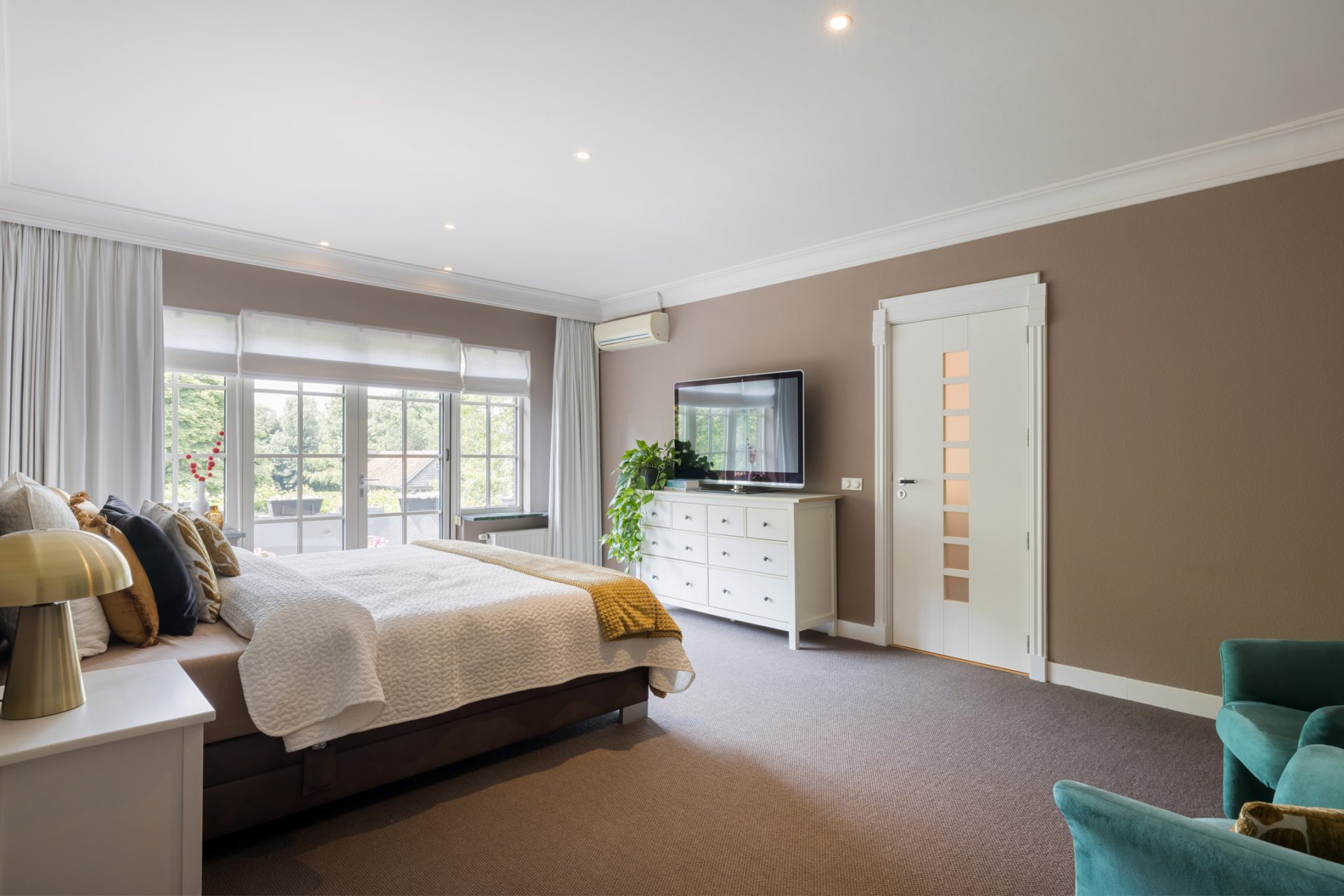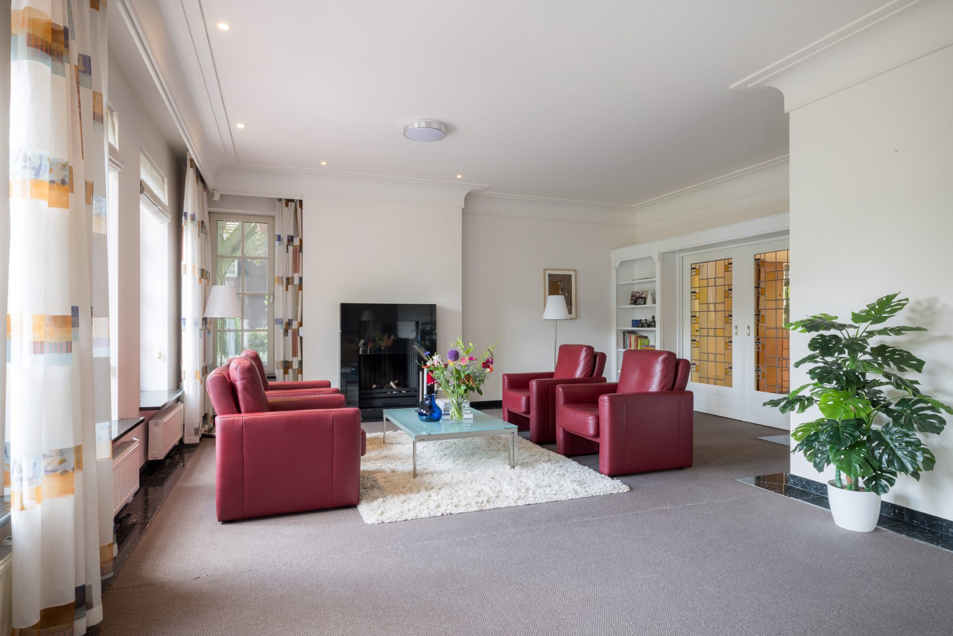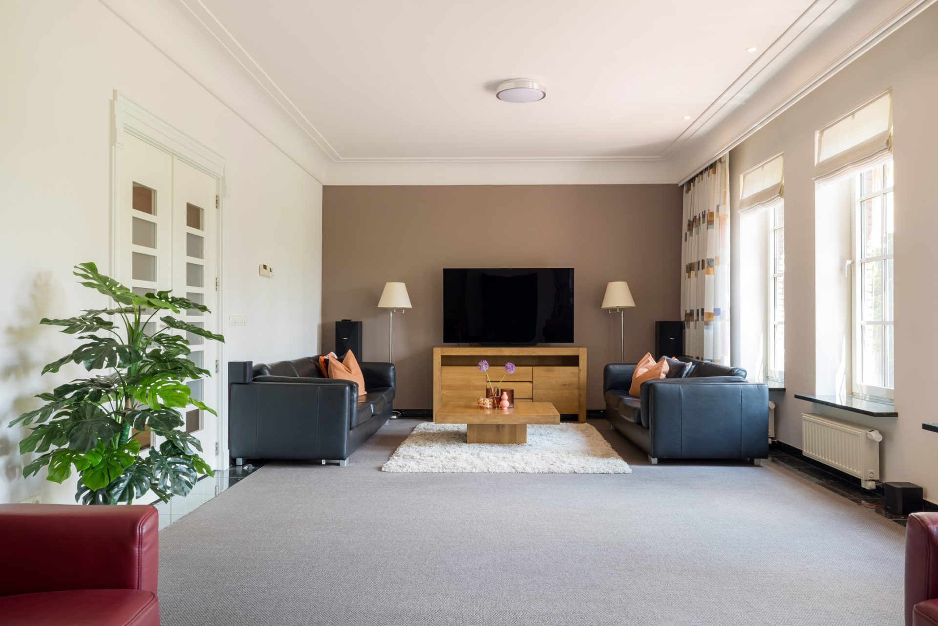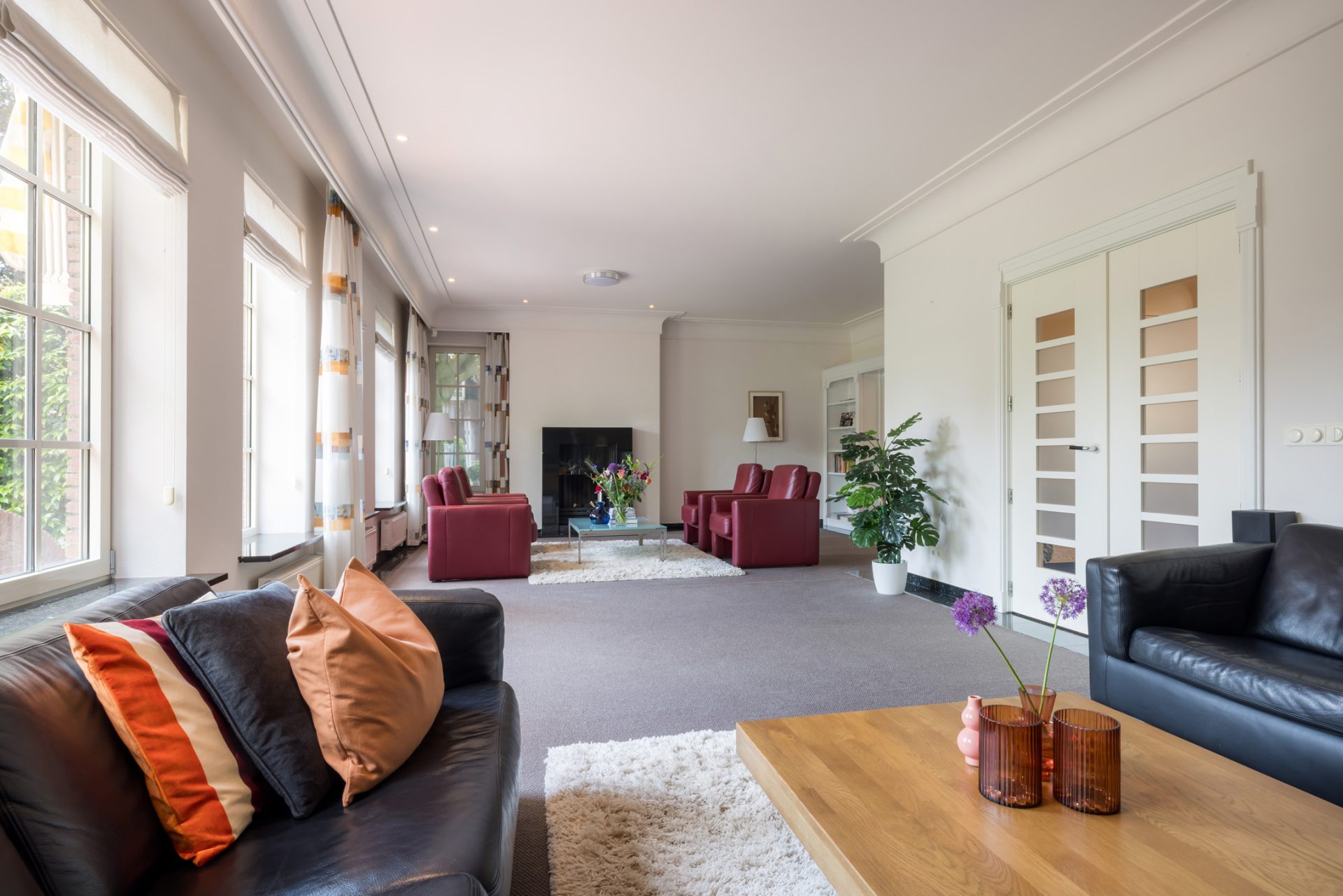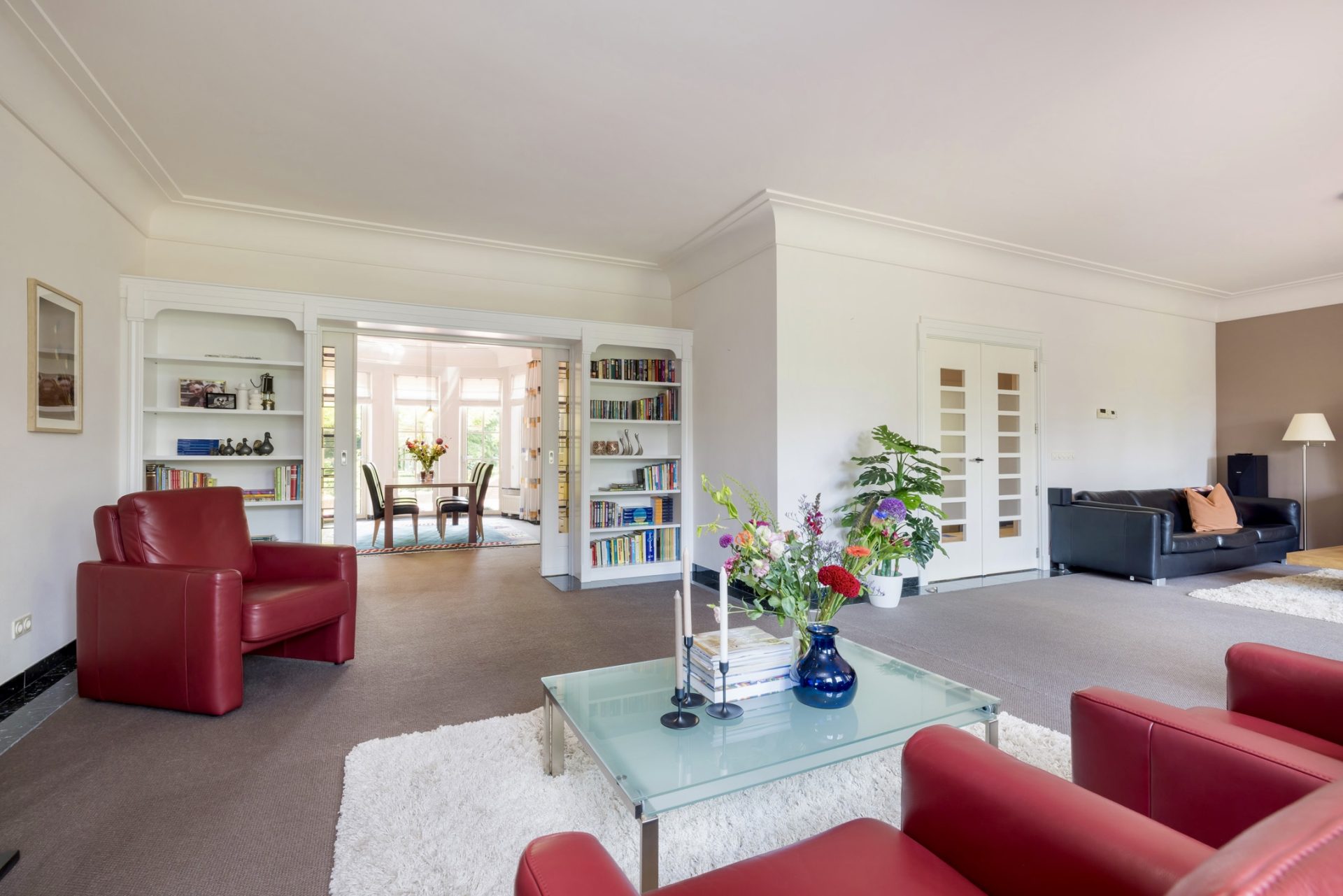 Dubbele deuren verbinden de hal met de woonkamer, gesitueerd aan de voorzijde van de villa. Geniet van het uitzicht naar de voortuin en de lichtinval, met name in de ochtend en vroege middag. De woonkamer is goed in te delen met een royaal tv-gedeelte en een knusse zithoek bij de open gashaard.