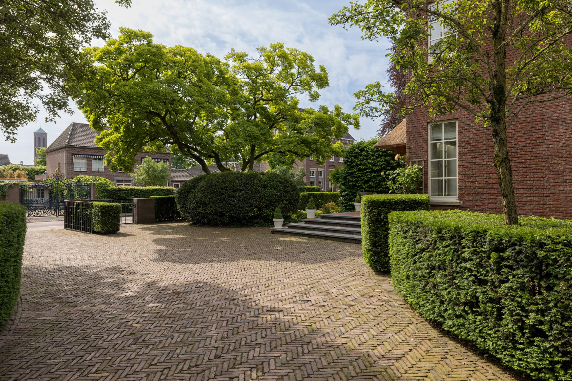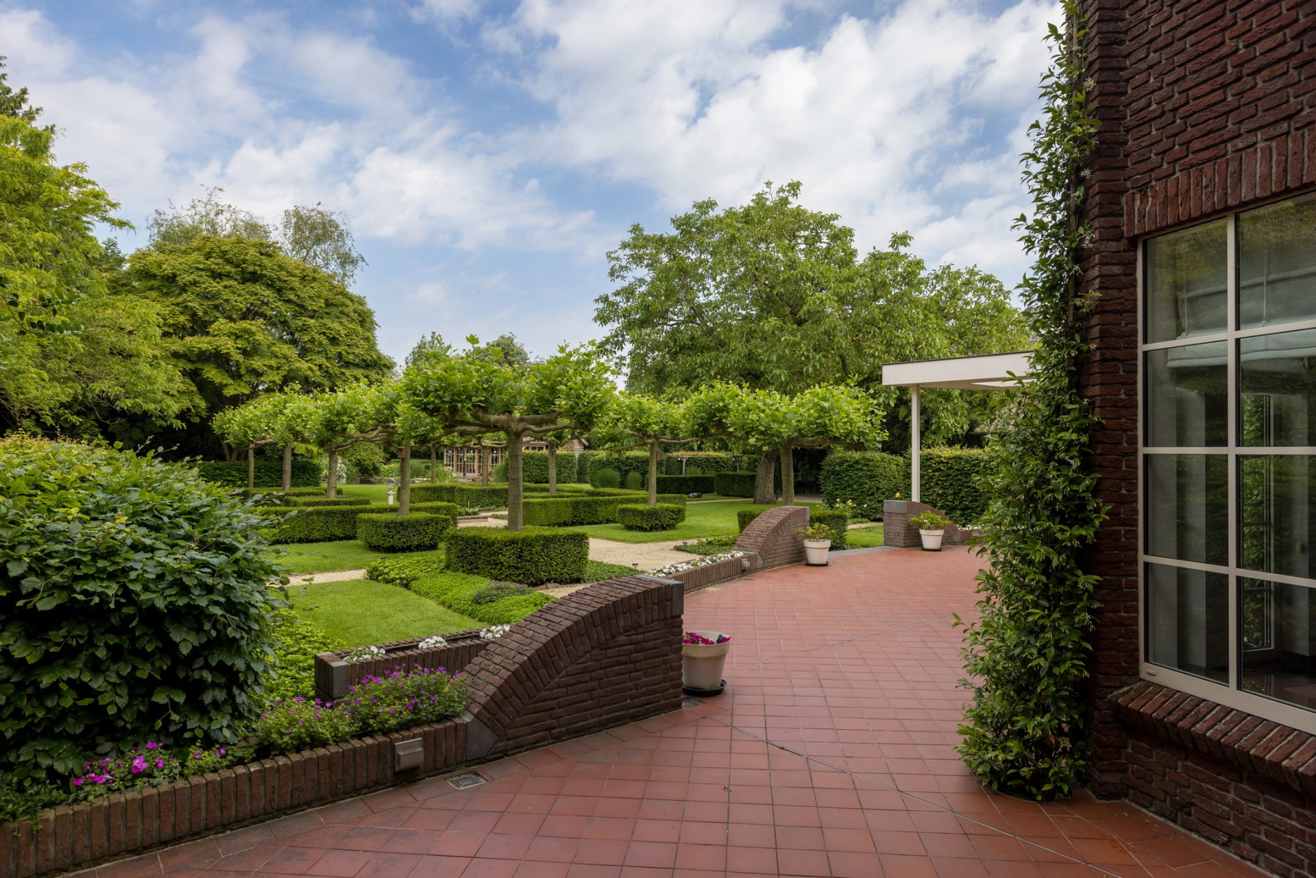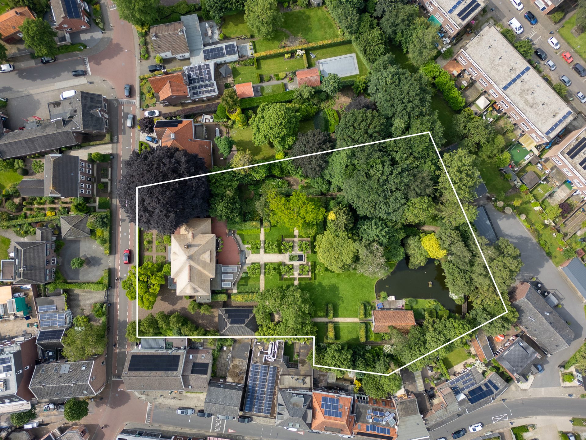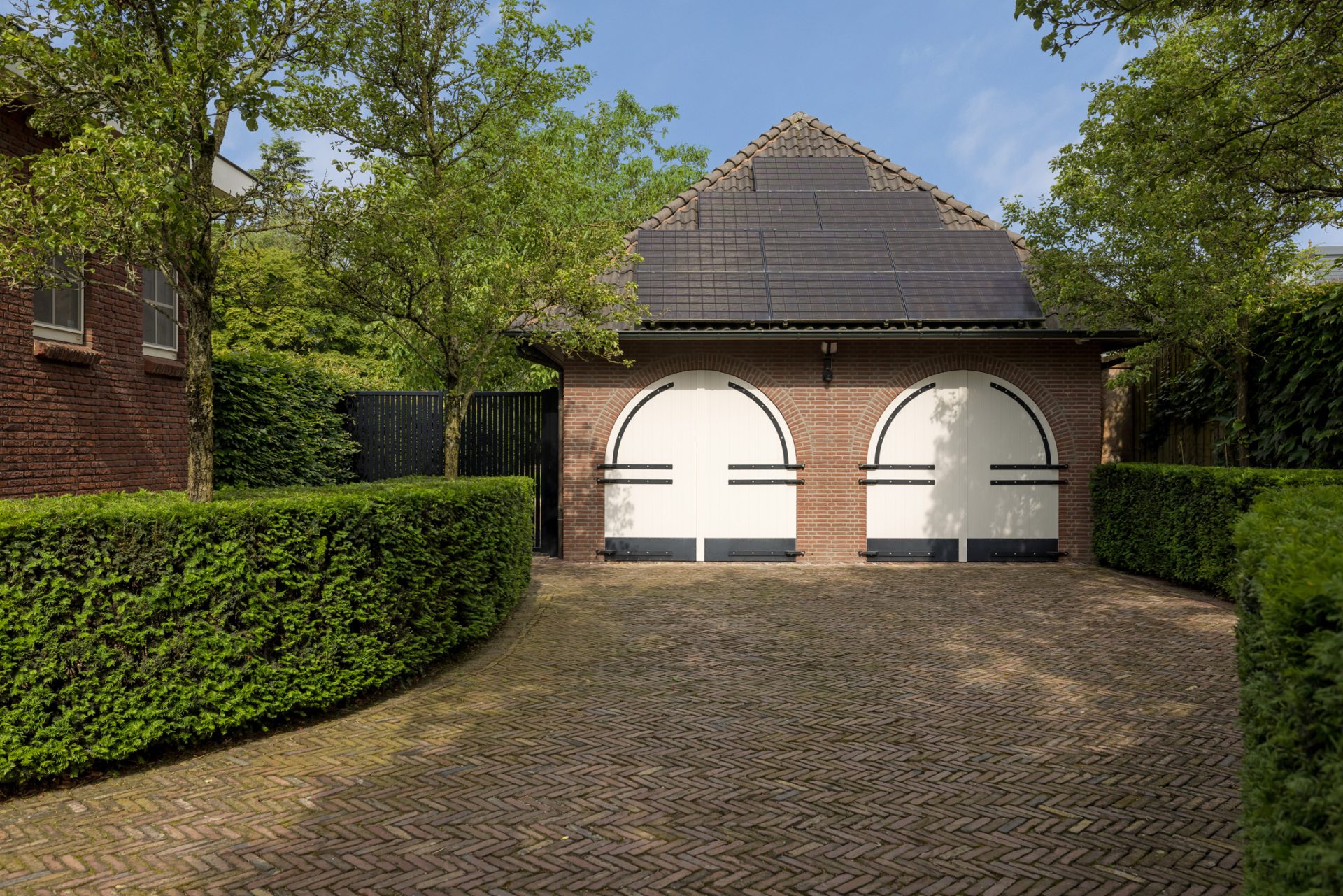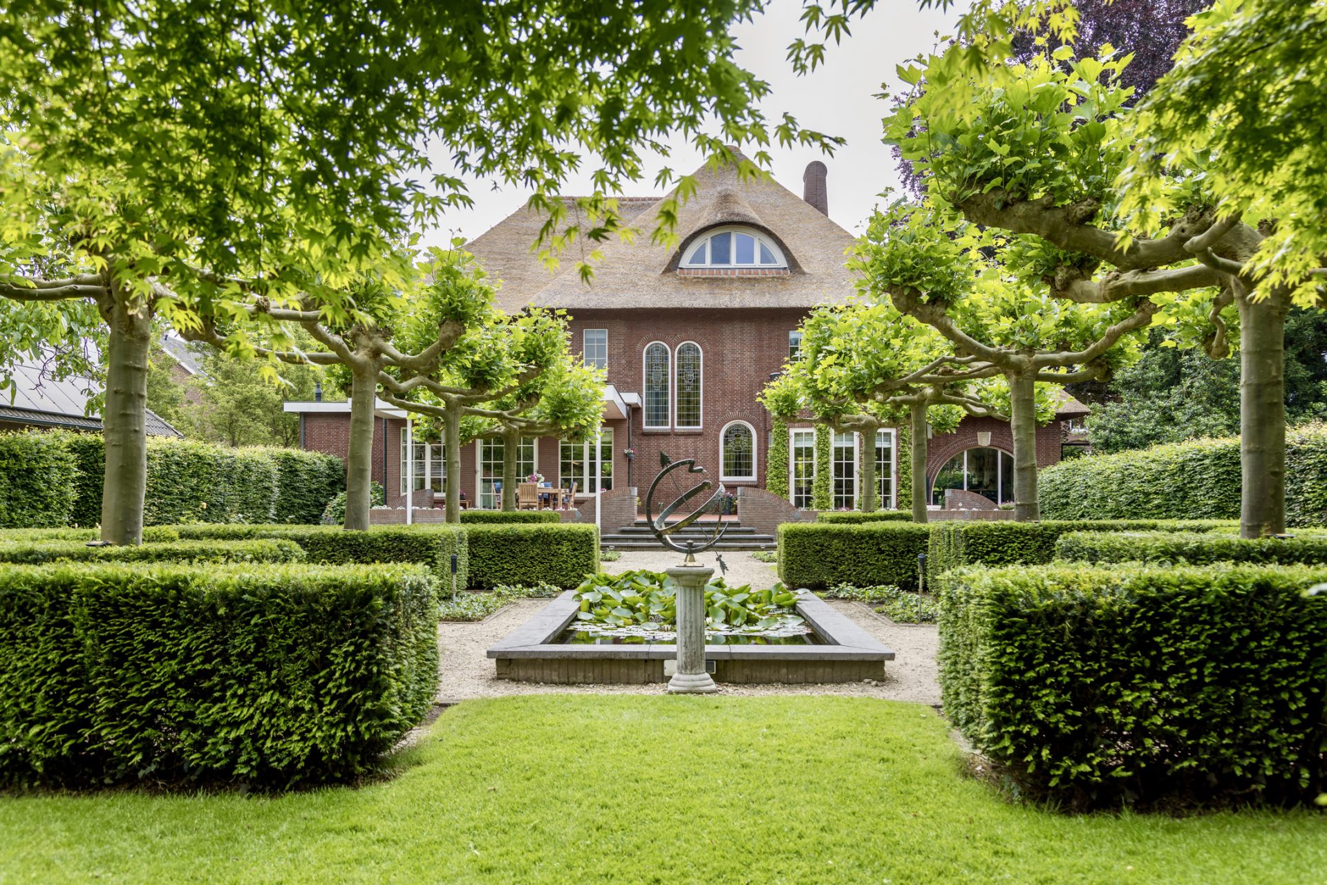 Deze imposante, exclusieve villa wordt omringd door een prachtige tuin die de uitstraling van een privépark heeft en een oase aan rust biedt. De wimpel hangt trots in de vlaggenmast en vele prachtige bomen zorgen voor fijne schaduwplekken en privacy. Achter de dubbele toegangspoort is ruime parkeergelegenheid voor meerdere auto’s. Aan het einde van de oprit staat een royale dubbele garage voor de auto, fietsen en andere voertuigen. De ruime garagezolder, bereikbaar via een vaste trap, biedt veel ruimte voor opslag.