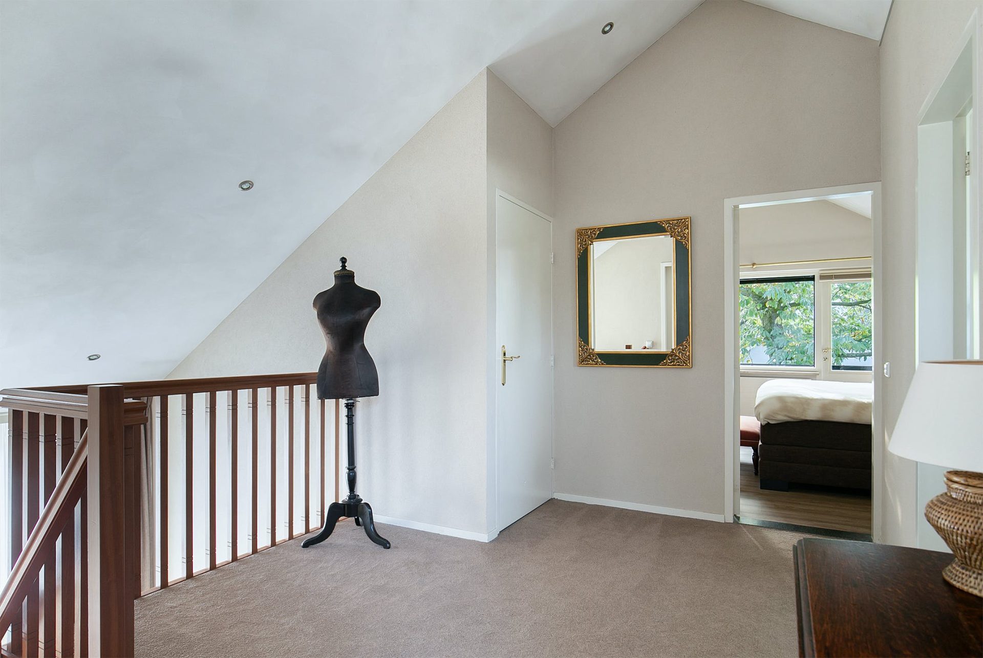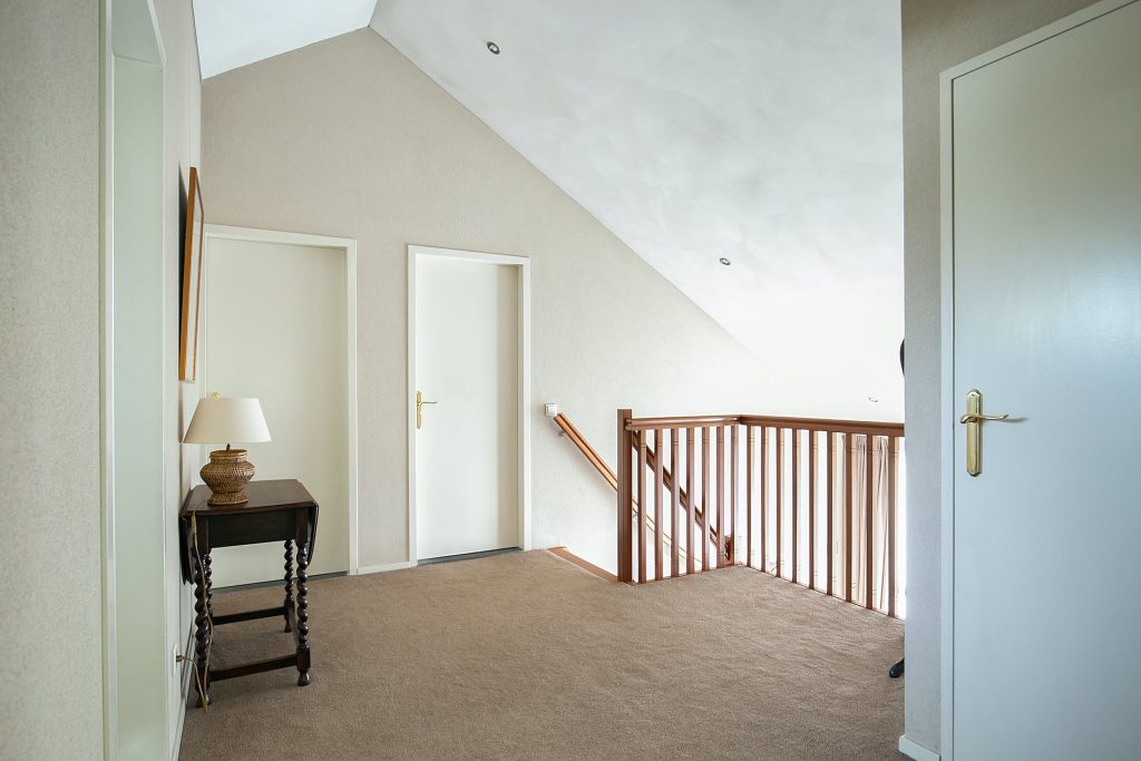 De ruime overloop heeft mooi zicht tot in de nok, voorzien van inbouwverlichting. Achter de deuren zijn de cv-ruimte, drie slaapkamers en de badkamer. Op de overloop ligt tapijt en in de slaapkamers een mooie laminaatvloer.