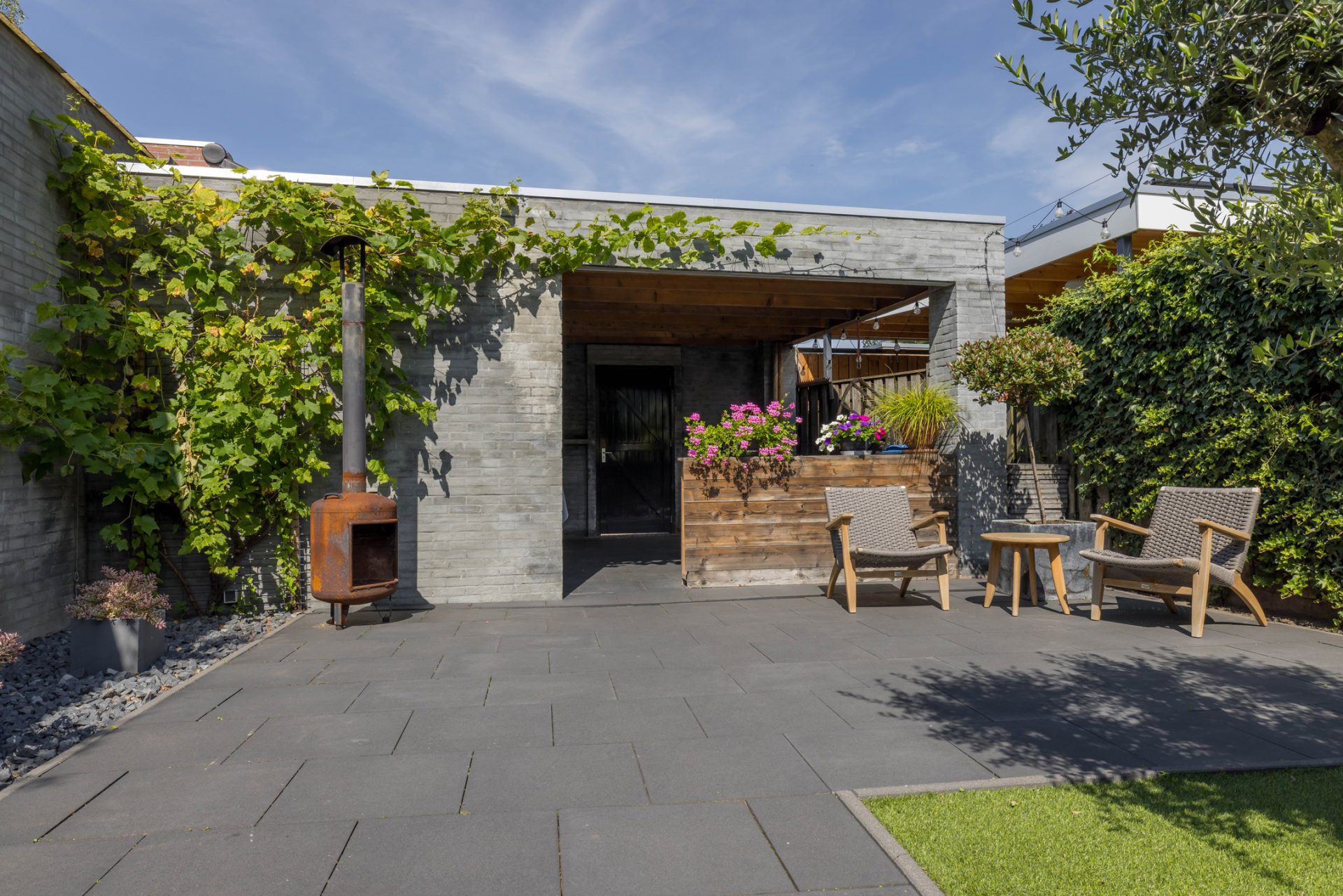 Niet alleen de woning, maar ook de tuin past perfect bij een ‘luxury home’. Het grote terras staat in verbinding met de onderhoudsvriendelijke, groene tuin met een goede zonligging. Achter in de tuin staat een houten berging met overkapping, waar tevens een poort naar de Hagenkampweg Zuid is. Zo kun je de stadsfiets, racefiets en mountainbike in je eigen berging zetten.