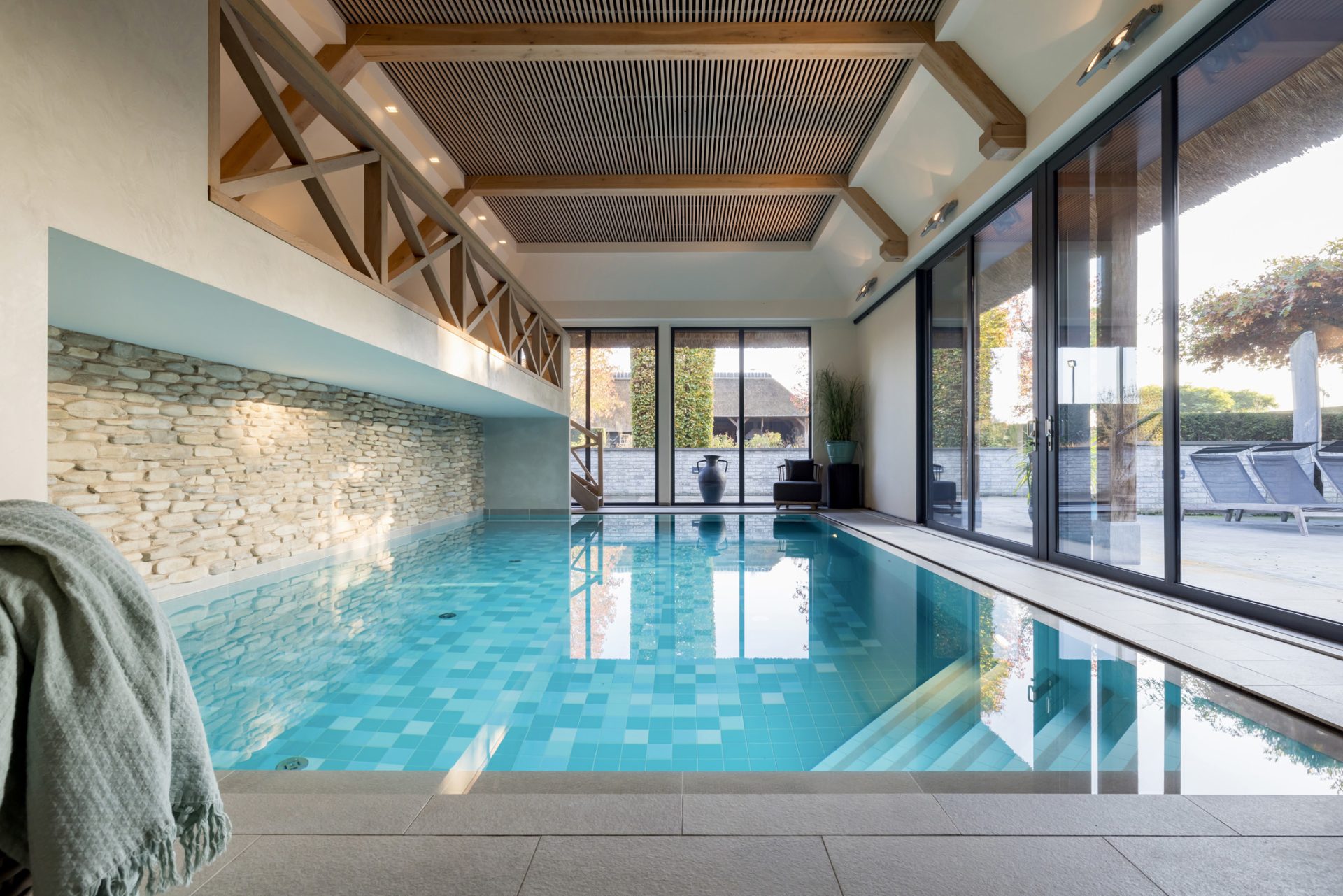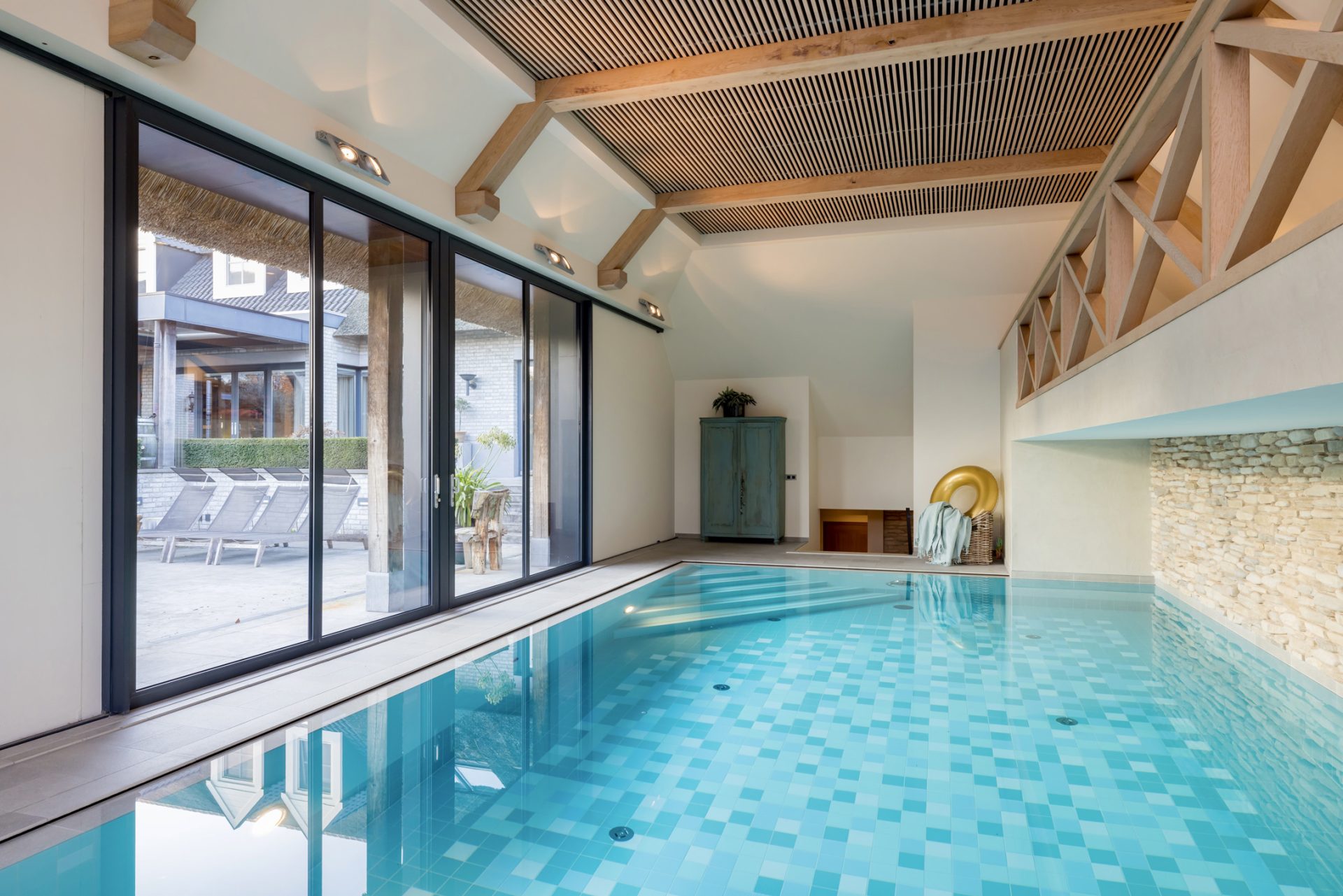 De villa beschikt over vijf ruime slaapkamers en drie luxe badkamers, die voorzien zijn van alle wenselijke faciliteiten. Een inpandig zwembad met complete wellnessruimte biedt de ultieme ontspanning, terwijl de barruimte en een speelkamer/TV-kamer met thuisbioscoop garant staan voor onvergetelijke avonden.