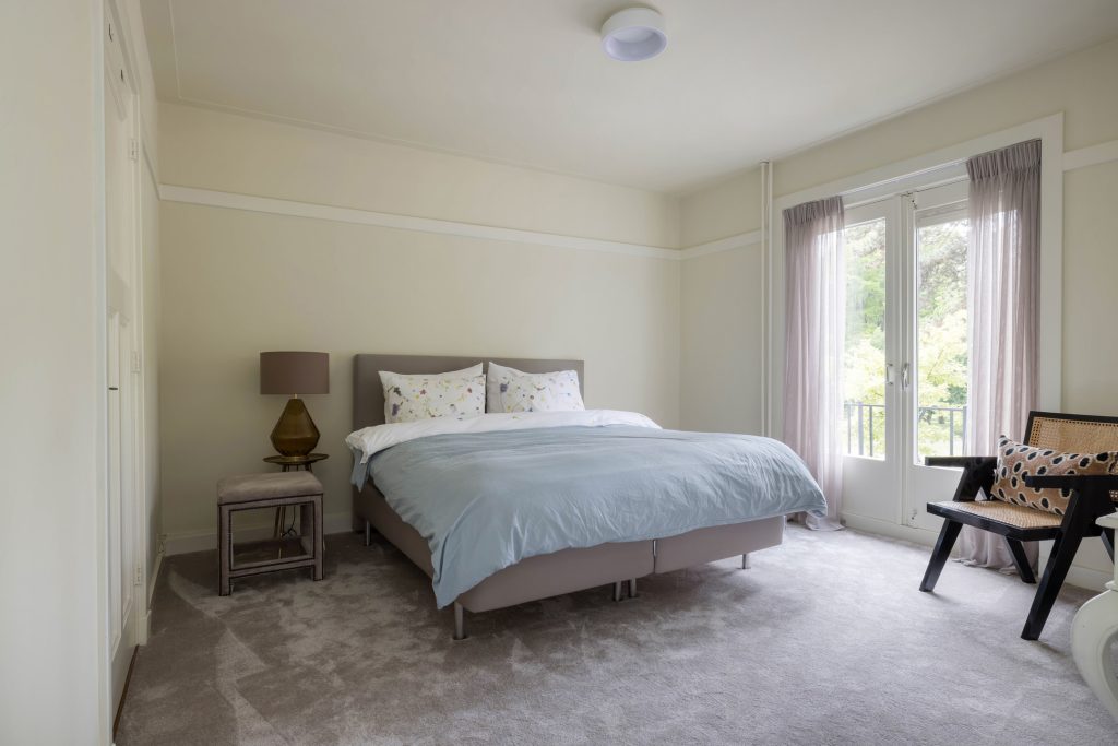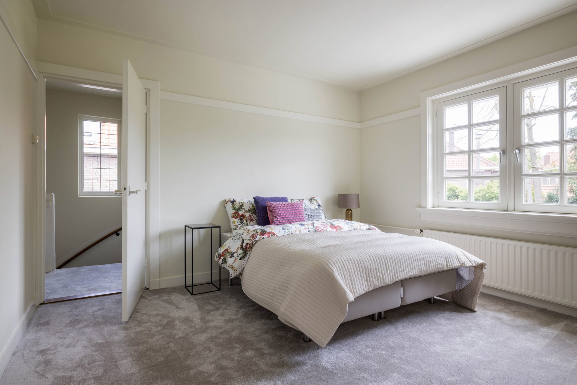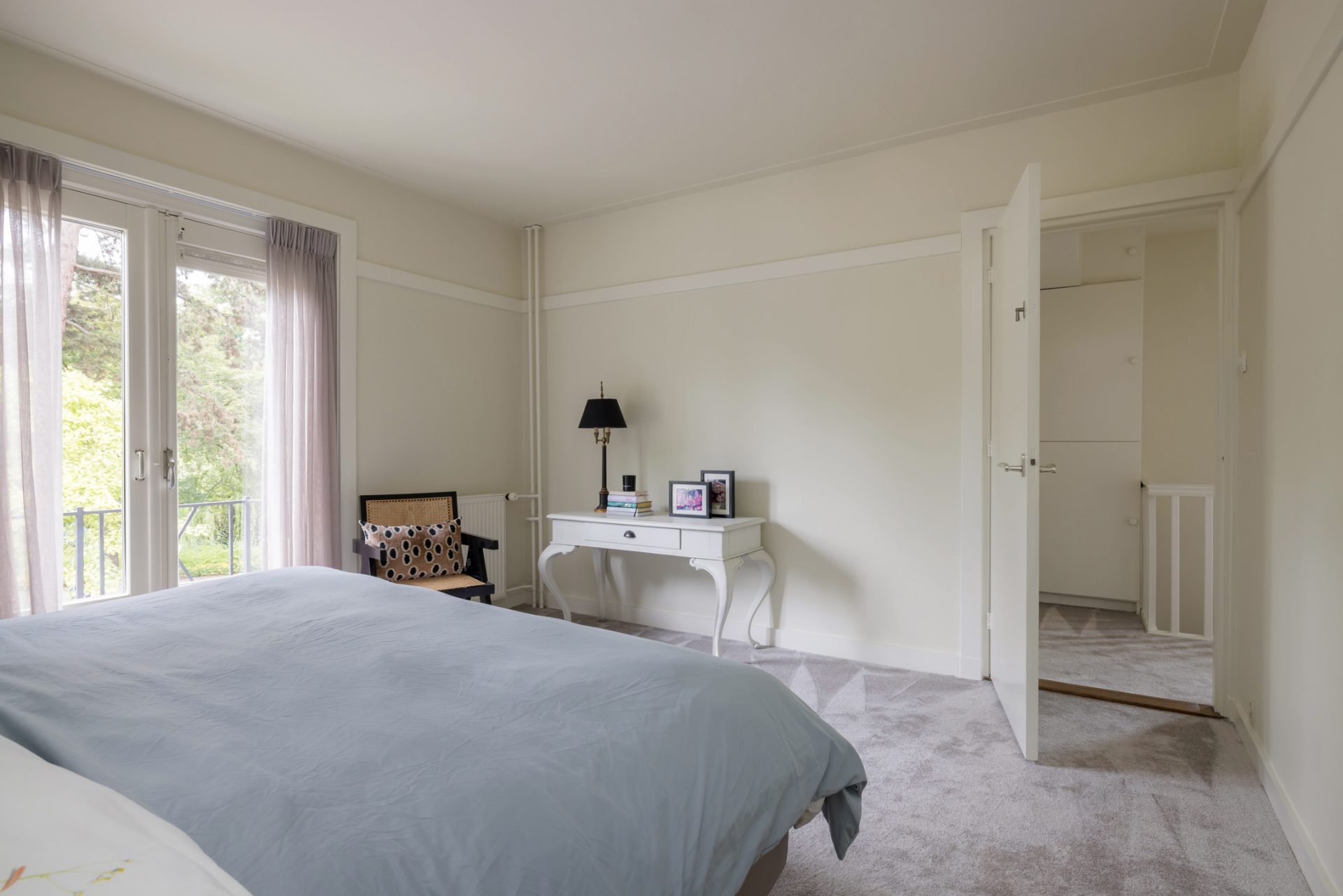 Op de eerste verdieping zijn drie slaapkamers en de badkamer. De badkamer in klassieke stijl is ingedeeld met een dubbel wastafelmeubel, inloopdouche, toilet en een bidet. Vanuit de slaapkamer aan de voorzijde heeft u prachtig uitzicht naar het plantsoen en aan de achterzijde zijn twee slaapkamers, waarvan een met een heerlijk dakterras, waar u ultiem kan genieten van de zon.